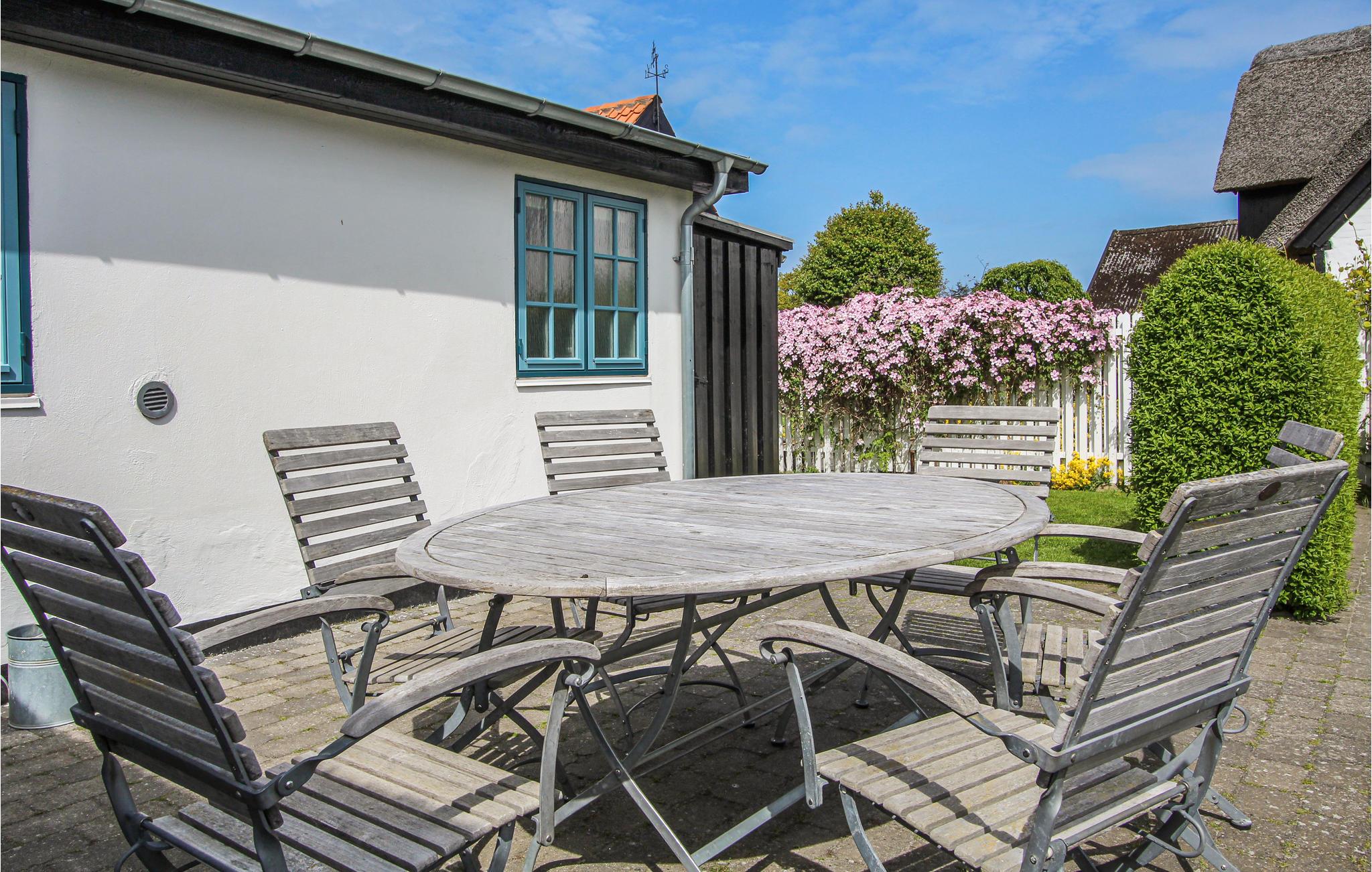 Ein charmantes Reetdachhaus auf Samsø mit moderner Ausstattung und idyllischem Atriumgarten für entspannte Urlaubstage.