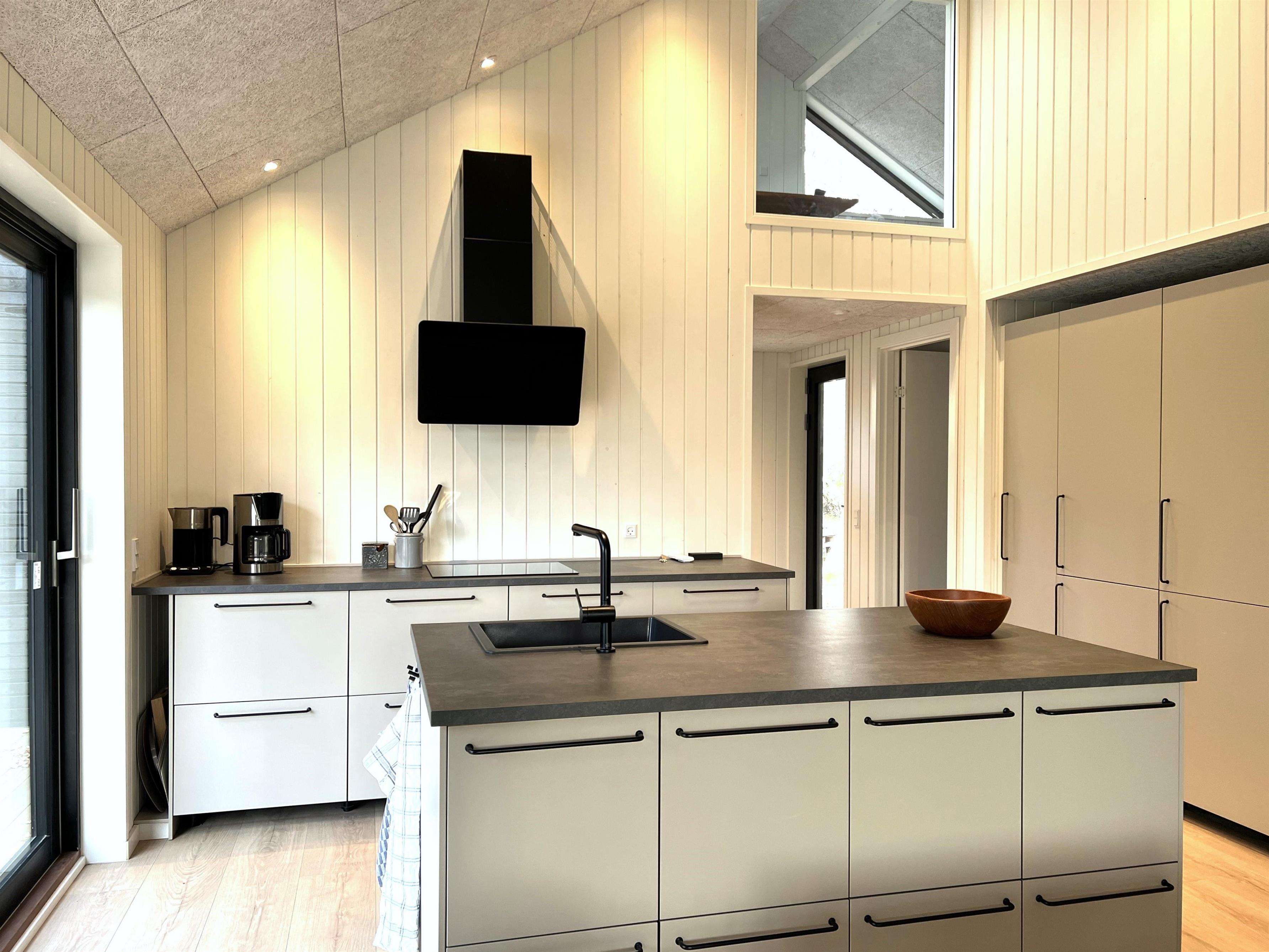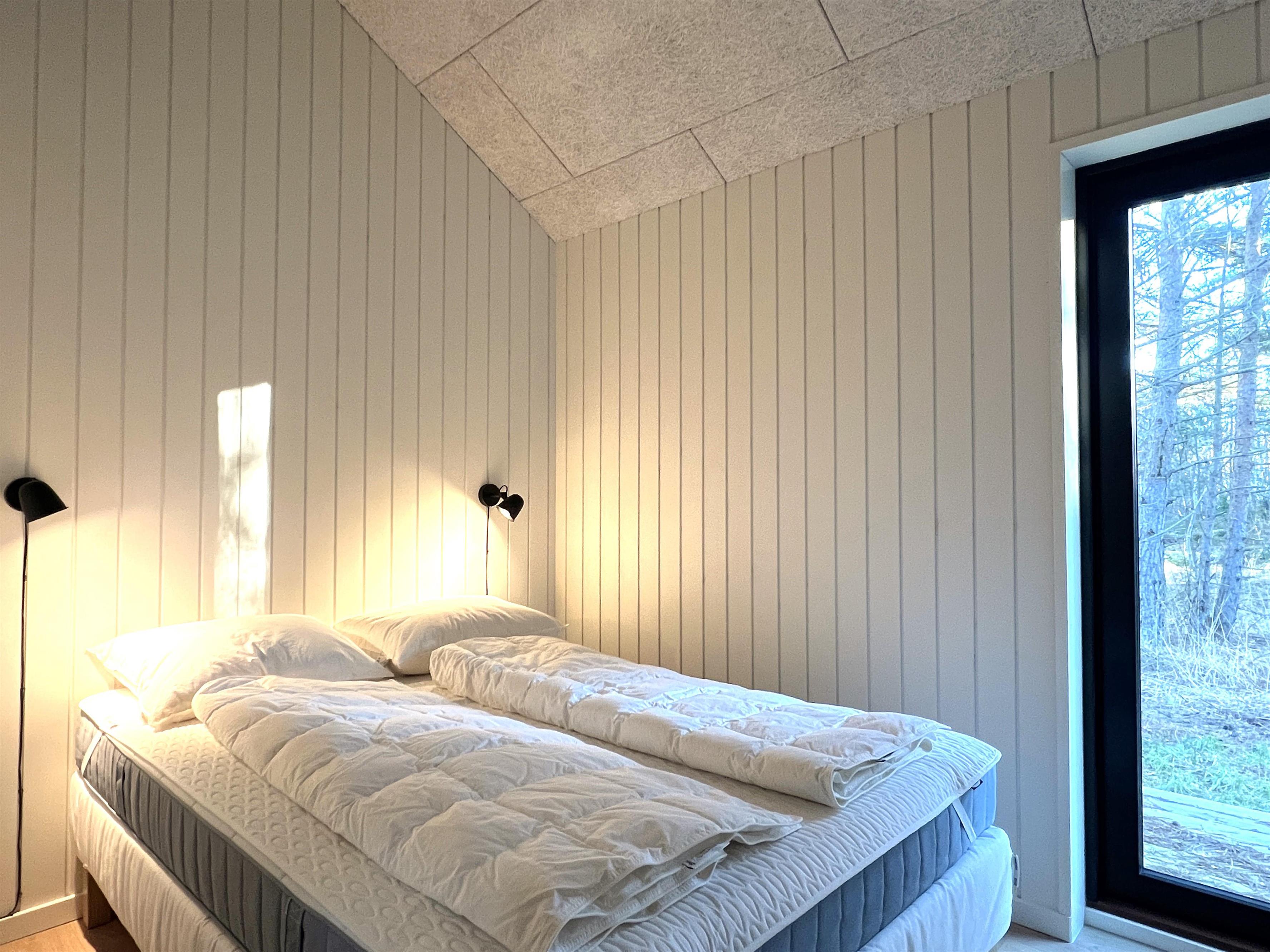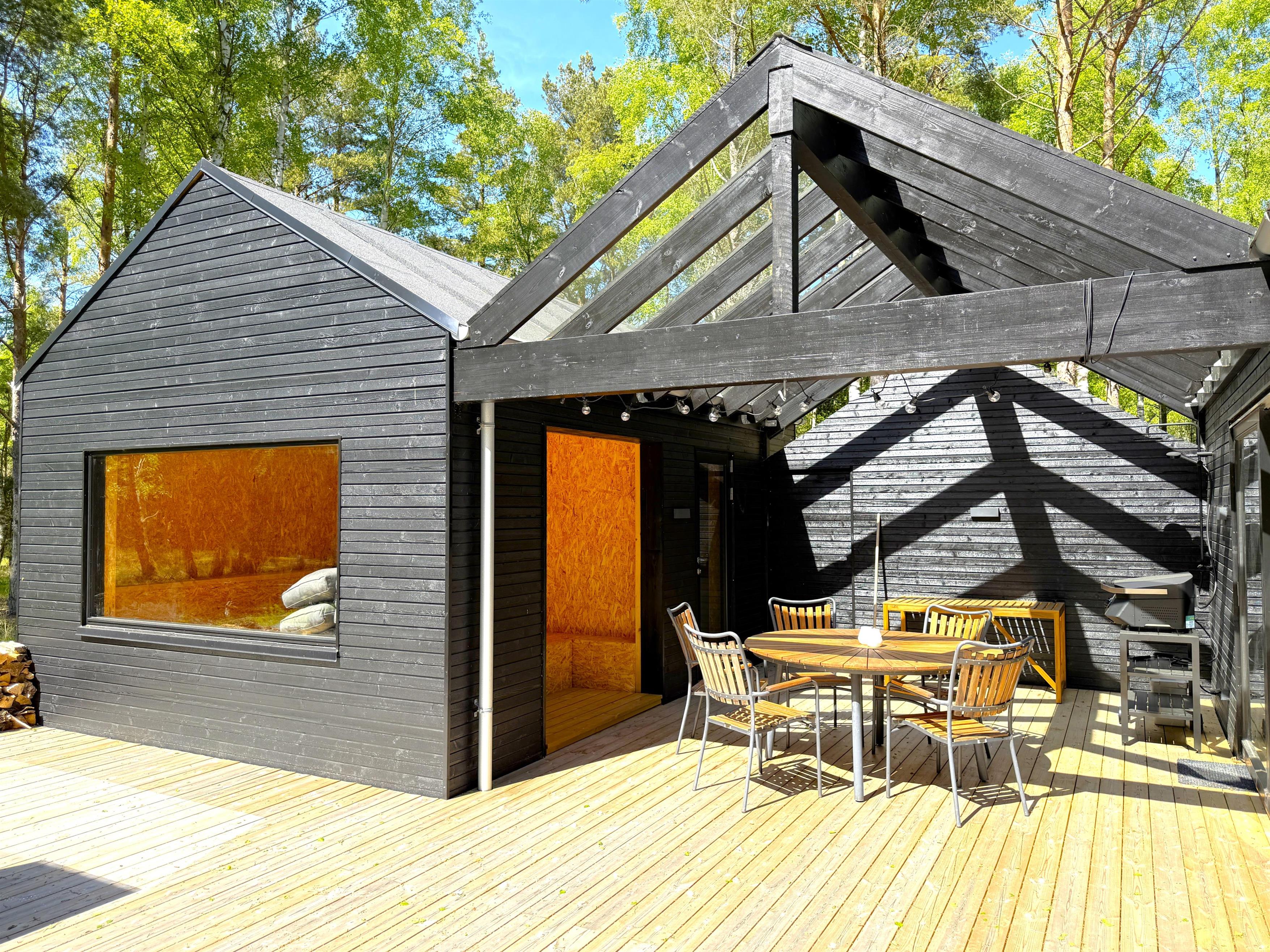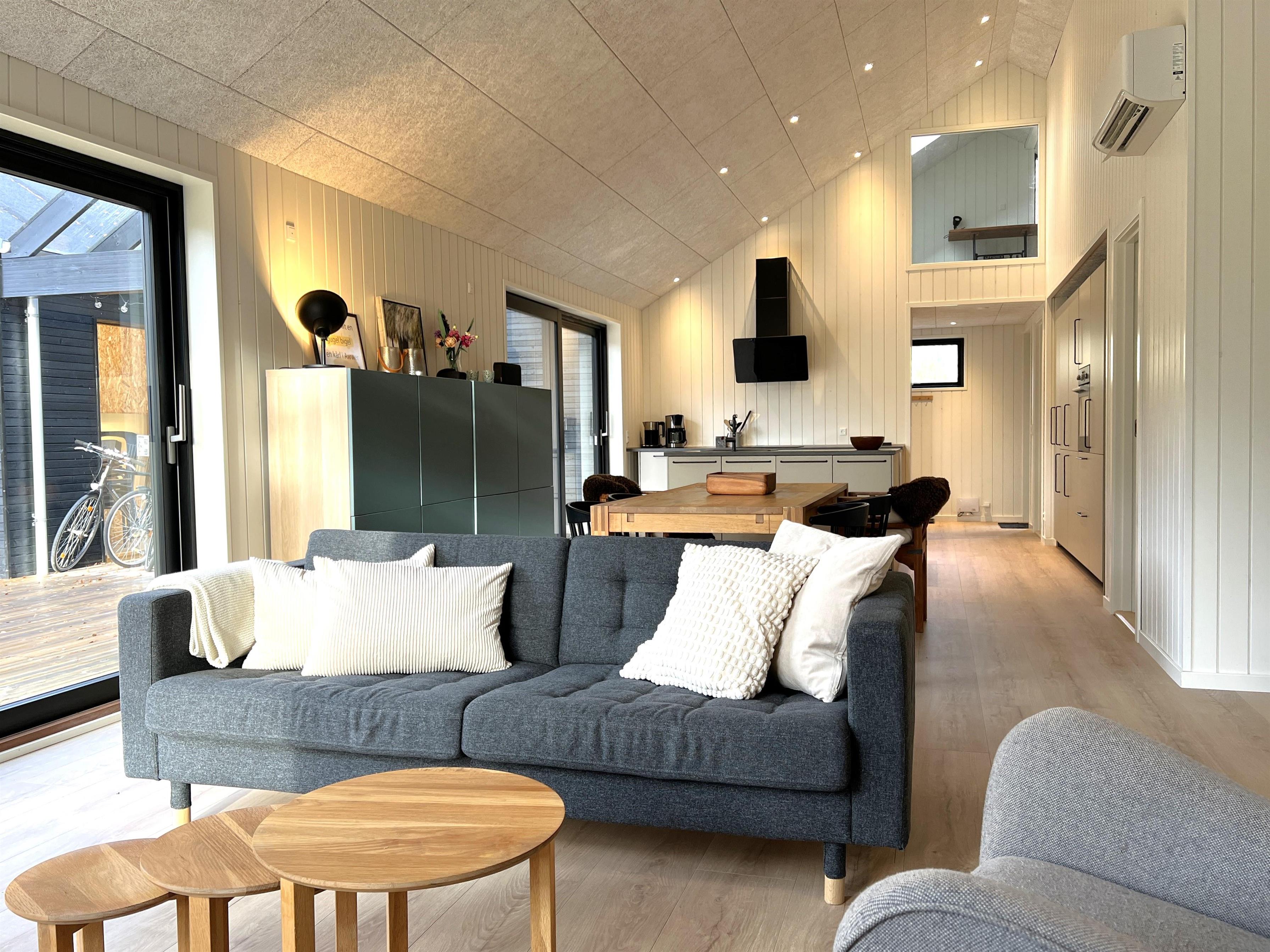 NEU beim Team Læsø. Dieses neue, schöne, vom Architekten entworfene Ferienhaus wurde gerade mitten in der wunderschönen Natur Nordmarkens gebaut und fängt genau die richtige Sommerhausatmosphäre ein. Das Haus wirkt besonders einladend, hell und großzügig mit vielen schönen Details und die großen Fenster sorgen für viel Licht und einen wunderbaren Ausblick auf die Natur und den Wald. Es gibt eine schöne Wohnküche mit Kücheninsel und Essbereich in offener Verbindung zum großen Wohnzimmer, in dem auch ein Holzofen installiert ist. Es gibt mehrere gemütliche Ecken, die zum Sitzen mit einem Buch oder einer guten Tasse Kaffee einladen. Darüber hinaus gibt es drei schöne Schlafzimmer, zwei davon mit Doppelbetten und das letzte mit einem Etagenbett und einem 3/4-Bett unten - eigener Ausgang von allen Schlafzimmern. Es gibt ein schönes großes Badezimmer mit Badewanne und Dusche sowie eine gut platzierte zusätzliche Toilette. Im kleinen ersten Stock des Hauses gibt es ein zusätzliches Zimmer mit einem Schreibtisch. Von der Wohnküche gibt es Terrassentüren zur großen Holzterrasse, wo die guten Gartenmöbel und der Grill des Hauses genutzt werden können. In Verlängerung der Holzterrasse befindet sich ein zusätzlicher Anbau, der unter anderem verfügt über einen schönen Unterstand mit großem Fensterbereich. Hier lassen sich die späten Abendstunden verbringen und es ist für Groß und Klein richtig gemütlich. Außerdem gibt es in der Umgebung viele gute Wanderwege und die Entfernung zum Strand und zum Meer ist nicht weit. Die komfortable Einrichtung und Lage des Hauses sorgen für einen schönen, erholsamen Urlaub, bei dem Sie sofort die unverwechselbare Ruhe und einzigartige Natur von Læsø spüren. Gleichzeitig ist das Haus wunderschön und ruhig gelegen, in Fahrradentfernung zum Golfplatz sowie zur gemütlichen Hafenumgebung von Østerby Havn mit Fischhändlern, Einkaufsmöglichkeiten und Restaurants.