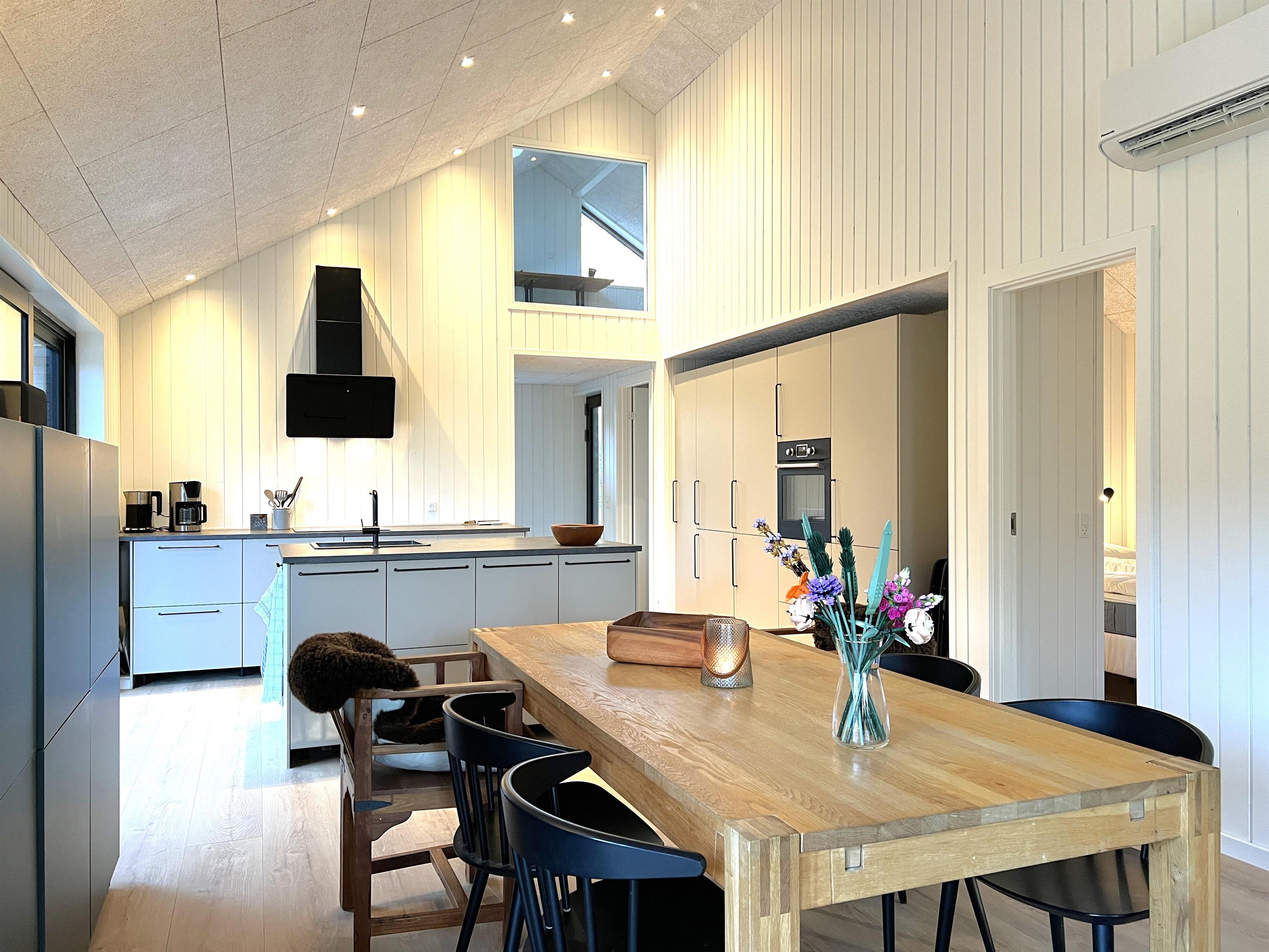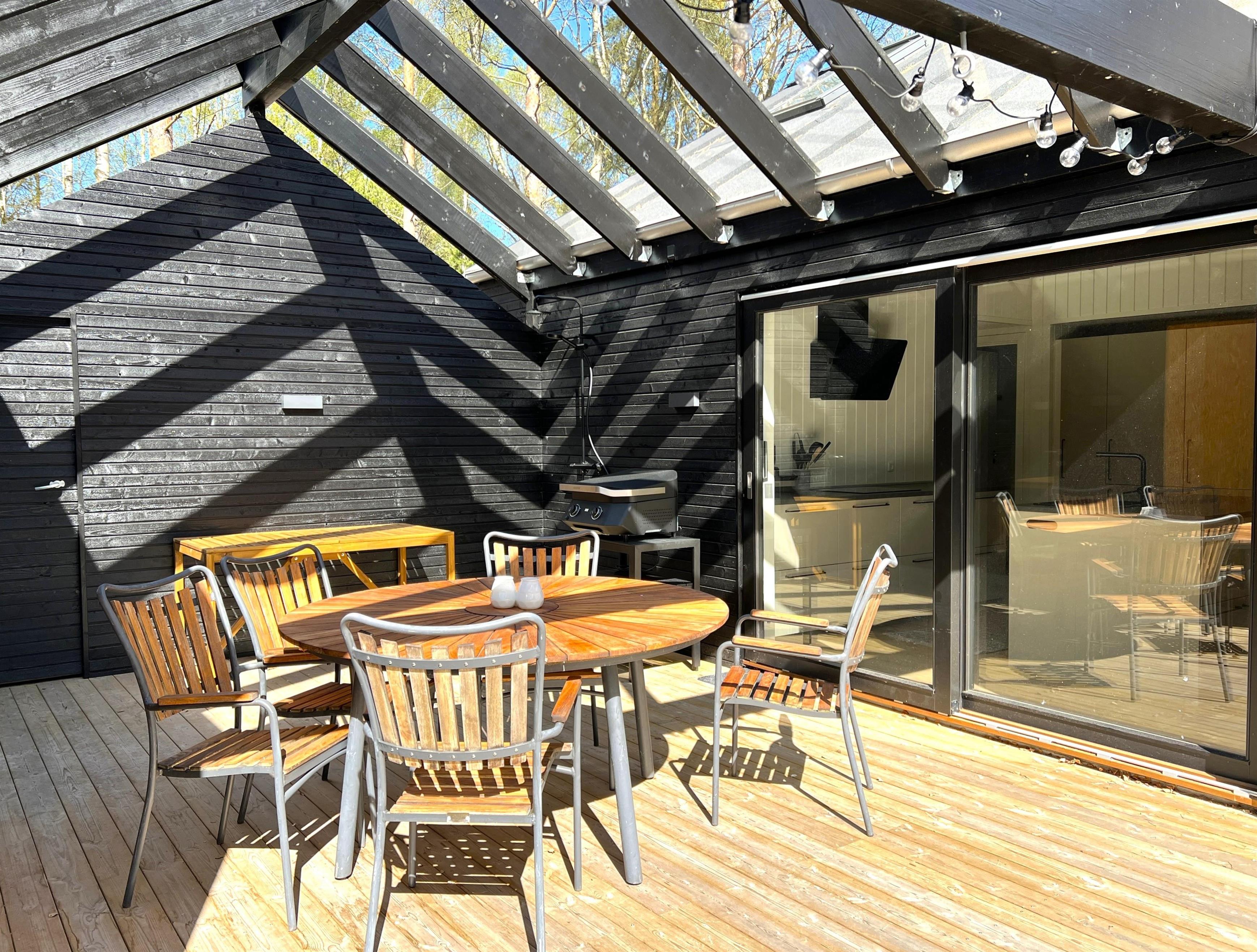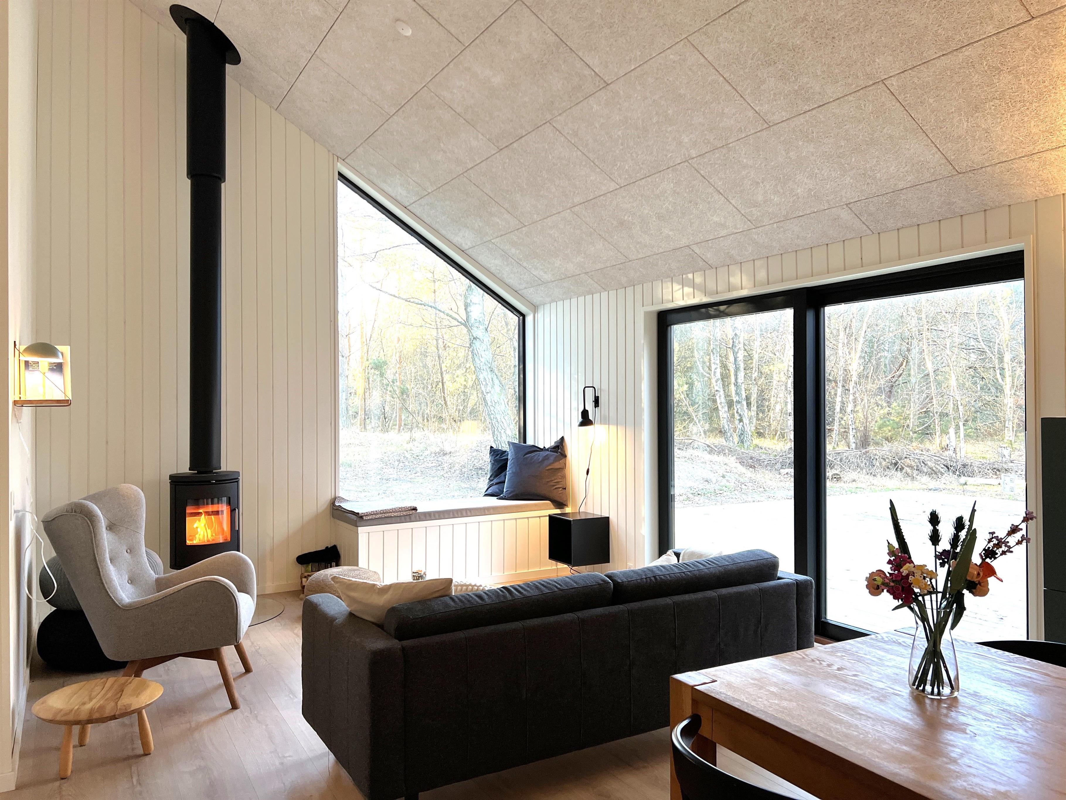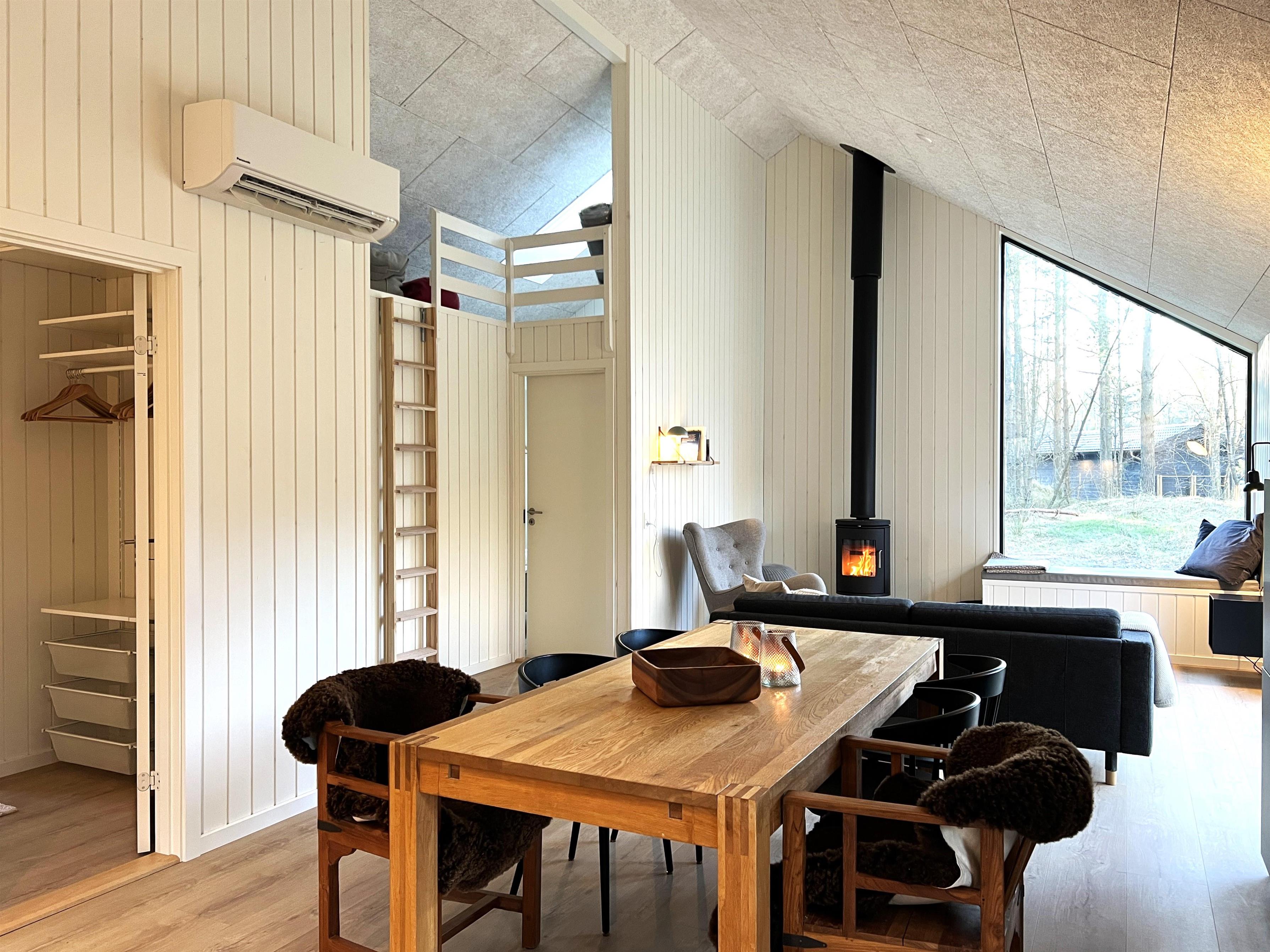 NEU beim Team Læsø. Dieses neue, schöne, vom Architekten entworfene Ferienhaus wurde gerade mitten in der wunderschönen Natur Nordmarkens gebaut und fängt genau die richtige Sommerhausatmosphäre ein. Das Haus wirkt besonders einladend, hell und großzügig mit vielen schönen Details und die großen Fenster sorgen für viel Licht und einen wunderbaren Ausblick auf die Natur und den Wald. Es gibt eine schöne Wohnküche mit Kücheninsel und Essbereich in offener Verbindung zum großen Wohnzimmer, in dem auch ein Holzofen installiert ist. Es gibt mehrere gemütliche Ecken, die zum Sitzen mit einem Buch oder einer guten Tasse Kaffee einladen. Darüber hinaus gibt es drei schöne Schlafzimmer, zwei davon mit Doppelbetten und das letzte mit einem Etagenbett und einem 3/4-Bett unten - eigener Ausgang von allen Schlafzimmern. Es gibt ein schönes großes Badezimmer mit Badewanne und Dusche sowie eine gut platzierte zusätzliche Toilette. Im kleinen ersten Stock des Hauses gibt es ein zusätzliches Zimmer mit einem Schreibtisch. Von der Wohnküche gibt es Terrassentüren zur großen Holzterrasse, wo die guten Gartenmöbel und der Grill des Hauses genutzt werden können. In Verlängerung der Holzterrasse befindet sich ein zusätzlicher Anbau, der unter anderem verfügt über einen schönen Unterstand mit großem Fensterbereich. Hier lassen sich die späten Abendstunden verbringen und es ist für Groß und Klein richtig gemütlich. Außerdem gibt es in der Umgebung viele gute Wanderwege und die Entfernung zum Strand und zum Meer ist nicht weit. Die komfortable Einrichtung und Lage des Hauses sorgen für einen schönen, erholsamen Urlaub, bei dem Sie sofort die unverwechselbare Ruhe und einzigartige Natur von Læsø spüren. Gleichzeitig ist das Haus wunderschön und ruhig gelegen, in Fahrradentfernung zum Golfplatz sowie zur gemütlichen Hafenumgebung von Østerby Havn mit Fischhändlern, Einkaufsmöglichkeiten und Restaurants.