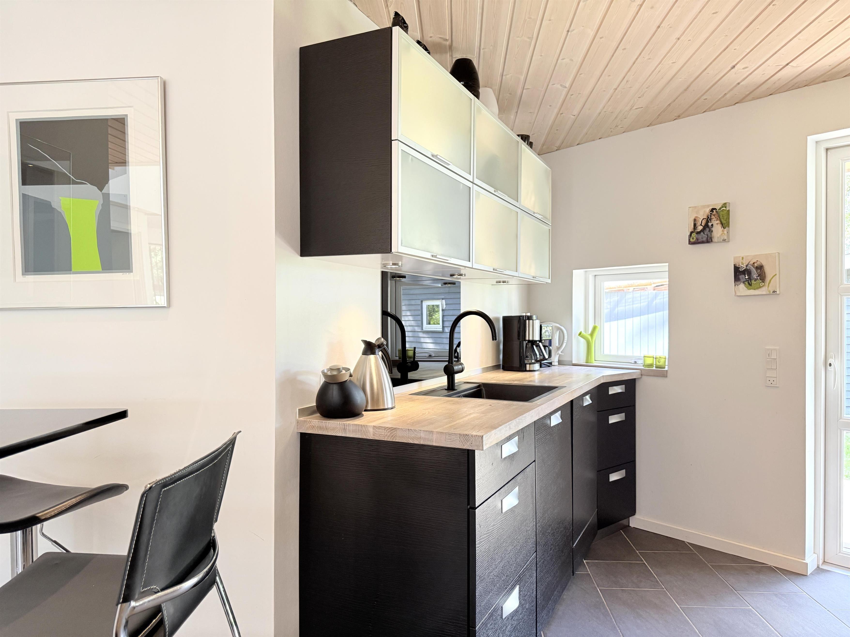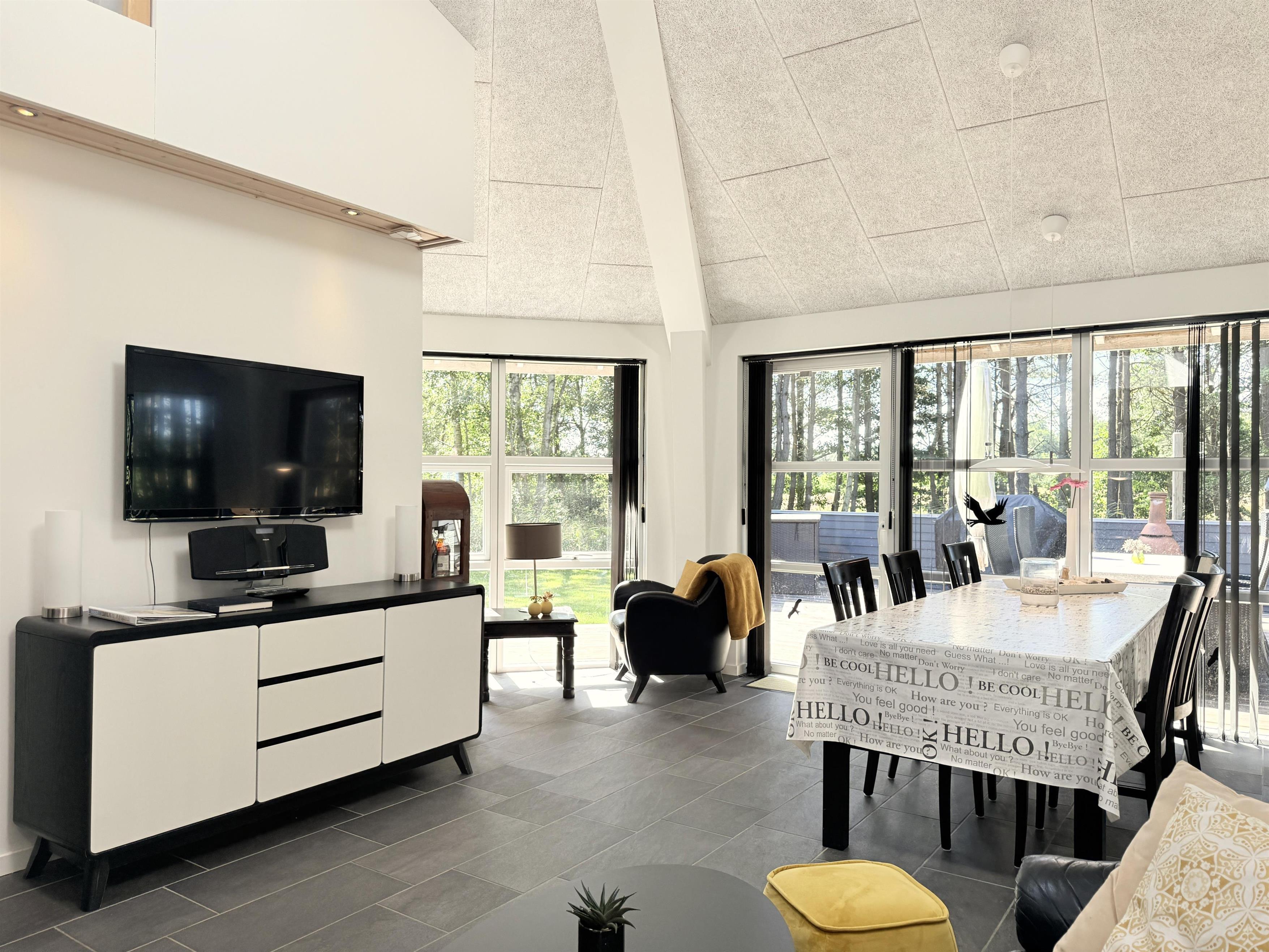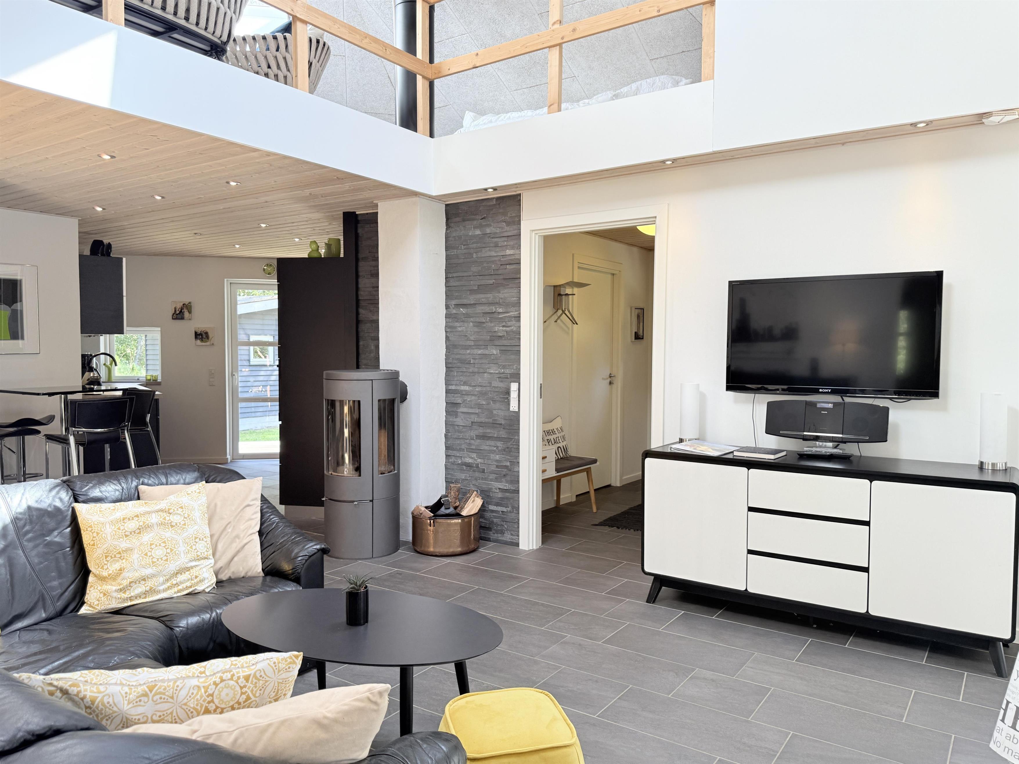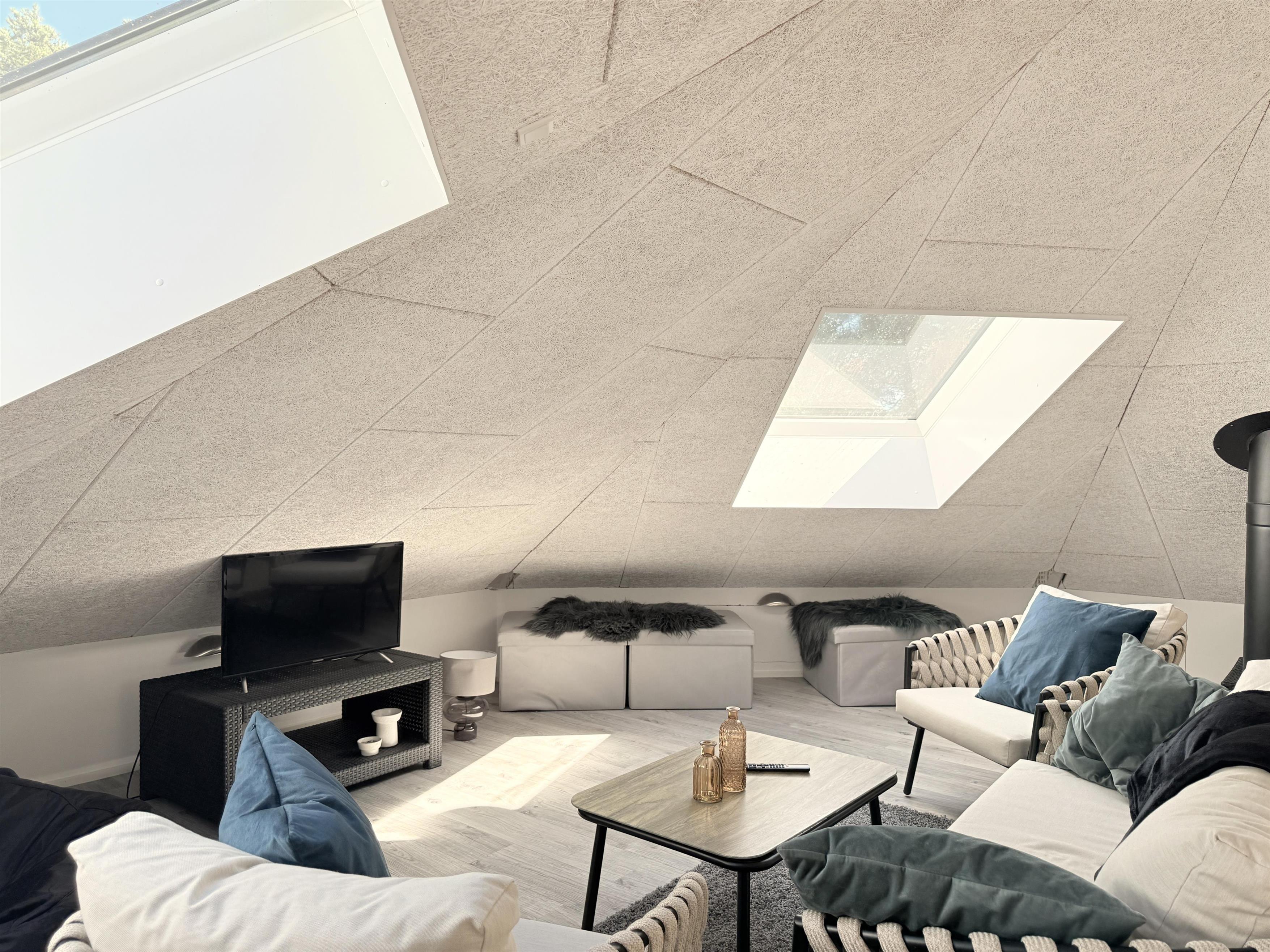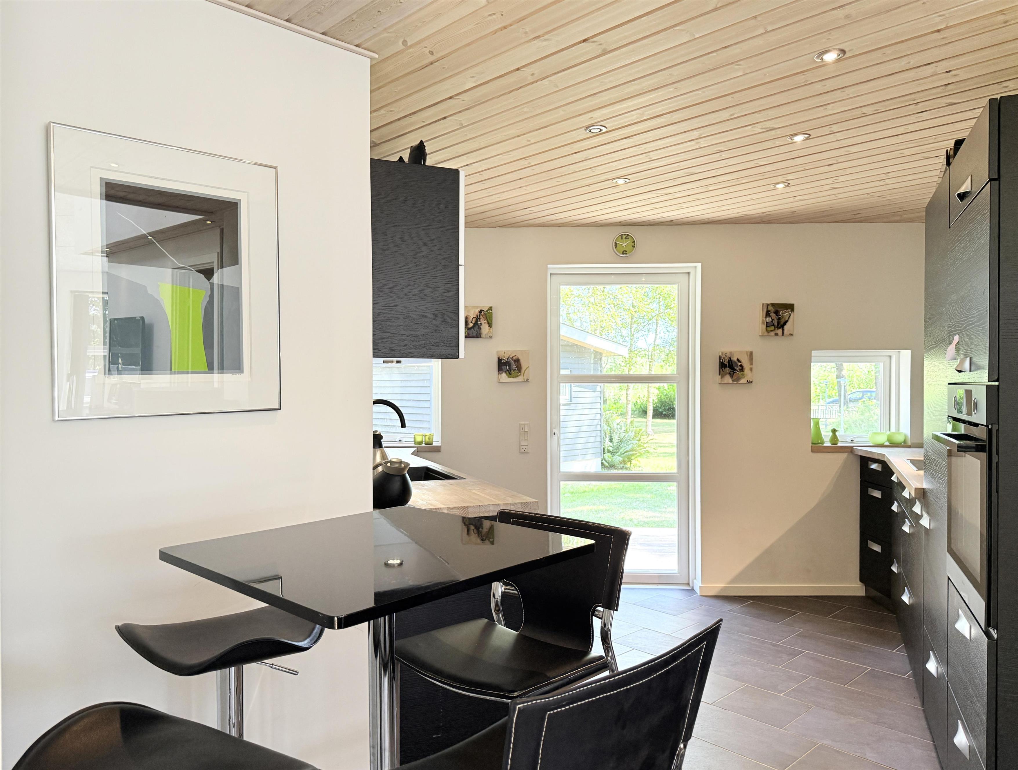 NEU bei Team Læsø. Dieses schöne, von einem Architekten entworfene Ferienhaus liegt ideal inmitten der herrlichen Natur Nordmarkens und vermittelt die perfekte Ferienhausatmosphäre. Das Haus wirkt sehr einladend, hell und geräumig mit vielen liebevollen Details. Die großen Fenster sorgen für viel Licht und einen herrlichen Blick auf die Natur und den Wald. Die schöne Küche ist offen mit dem beeindruckenden Wohnzimmer verbunden. Dieses bietet einen großen Essbereich, eine Sofagruppe, einen Arbeitsbereich und mehrere gemütliche Ecken, die zum Lesen oder einer guten Tasse Kaffee einladen. Ein Holzofen ist ebenfalls vorhanden. Über dem Wohnzimmer befindet sich der erste Stock mit einer weiteren gemütlichen Sofagruppe mit Fernseher und zwei zusätzlichen Schlafplätzen. Außerdem gibt es drei schöne Schlafzimmer, zwei davon mit Doppelbetten und eines mit einem Etagenbett. Es gibt zwei schöne Badezimmer, eines mit einem großen, schönen Doppel-Whirlpool, Dusche, WC und Waschbecken, das andere mit Dusche, WC und Waschbecken. Vom Wohnzimmer aus führen Terrassentüren auf die große, schöne Holzterrasse, wo die Gartenmöbel, der Grill und der Pizzaofen des Hauses genutzt werden können. Schöner Anbau mit Doppelbett und Küchenzeile, der beispielsweise genutzt werden kann, wenn Sie sich für eine Weile von der Gesellschaft zurückziehen müssen. Es gibt auch viele gute Wanderwege in der Umgebung und es ist nicht weit zum Strand und zum Meer. Die komfortable Einrichtung und die Lage des Hauses sorgen für einen schönen, erholsamen Urlaub, bei dem Sie sofort die typische Ruhe und die einzigartige Natur von Læsø spüren. Gleichzeitig liegt das Haus wunderschön und ruhig in Radnähe zum Golfplatz von Læsø sowie zum gemütlichen Hafen von Østerby mit Fischhändlern, Einkaufsmöglichkeiten und Restaurants.