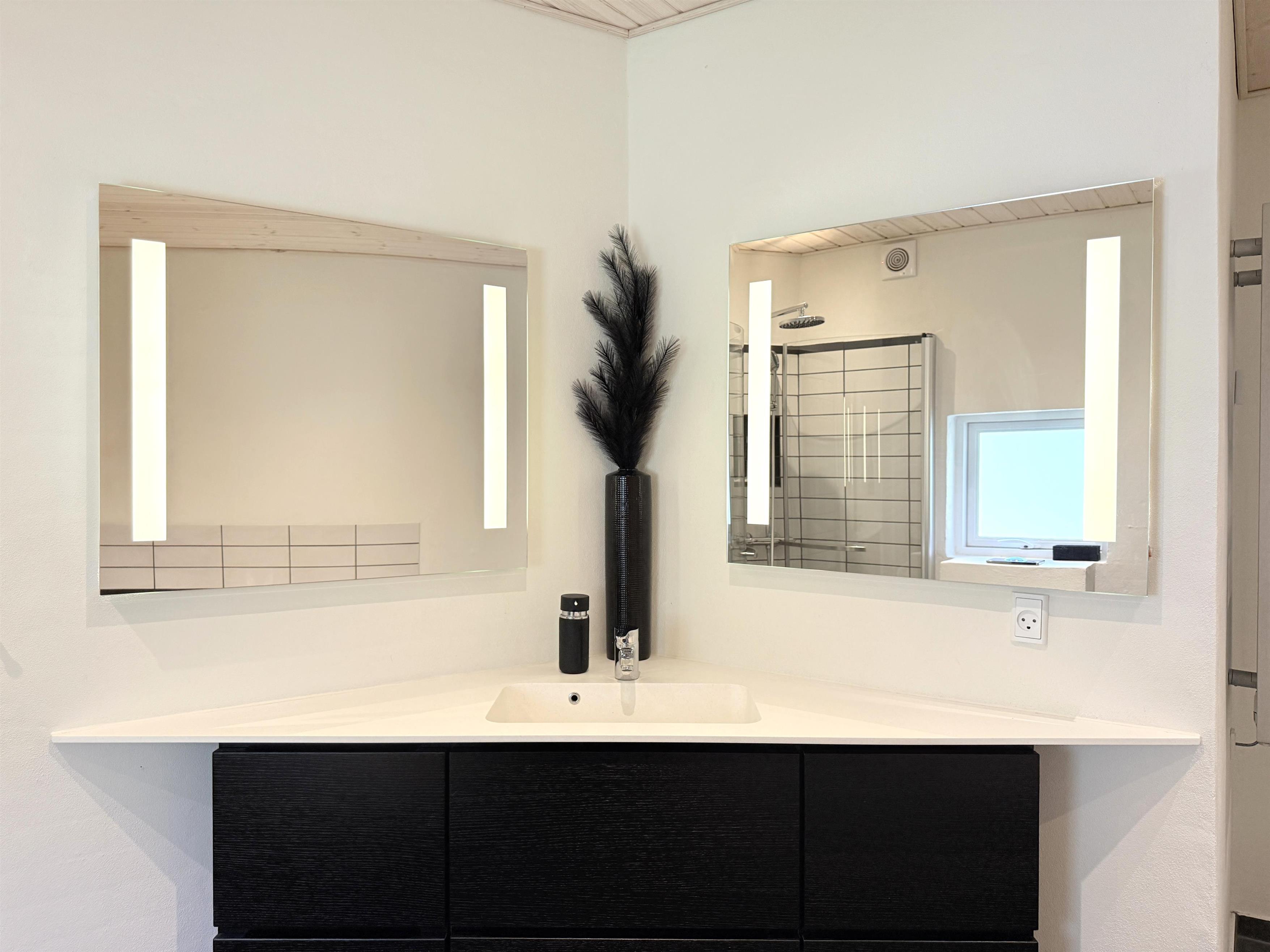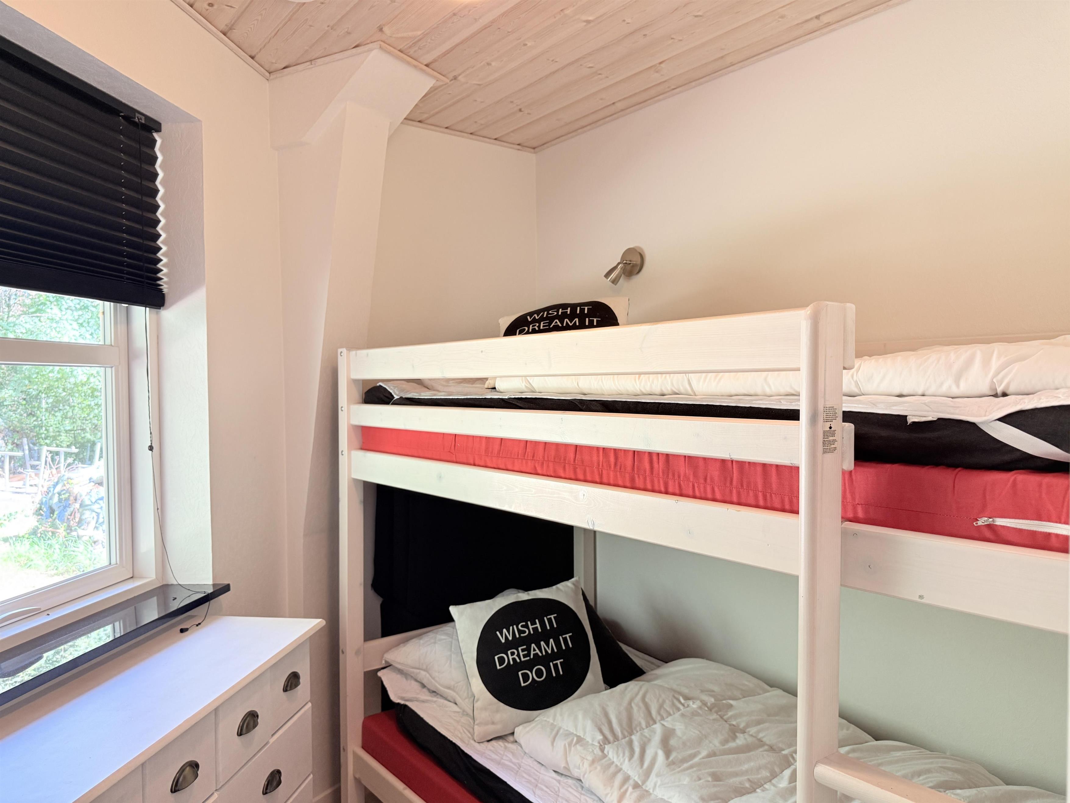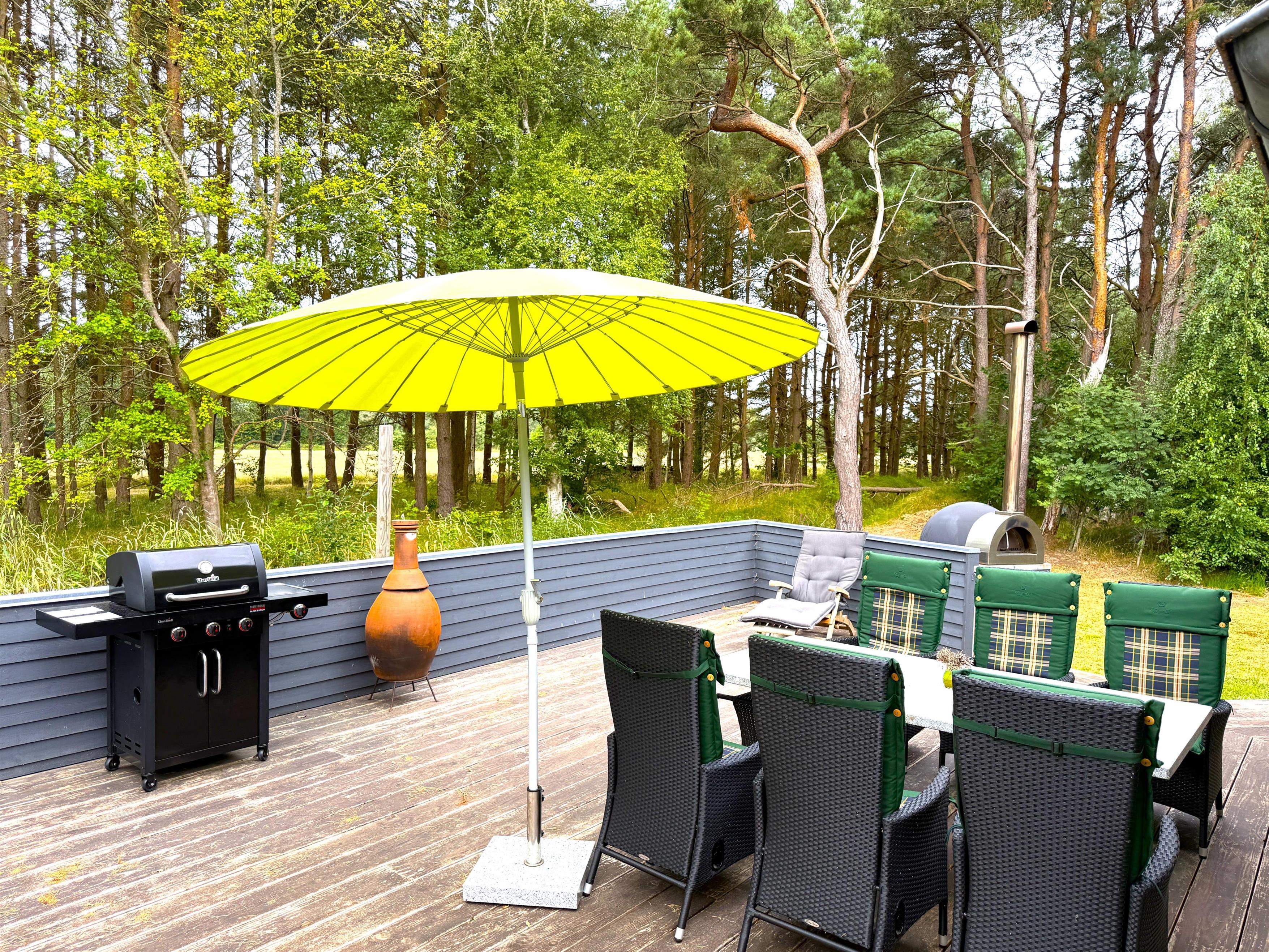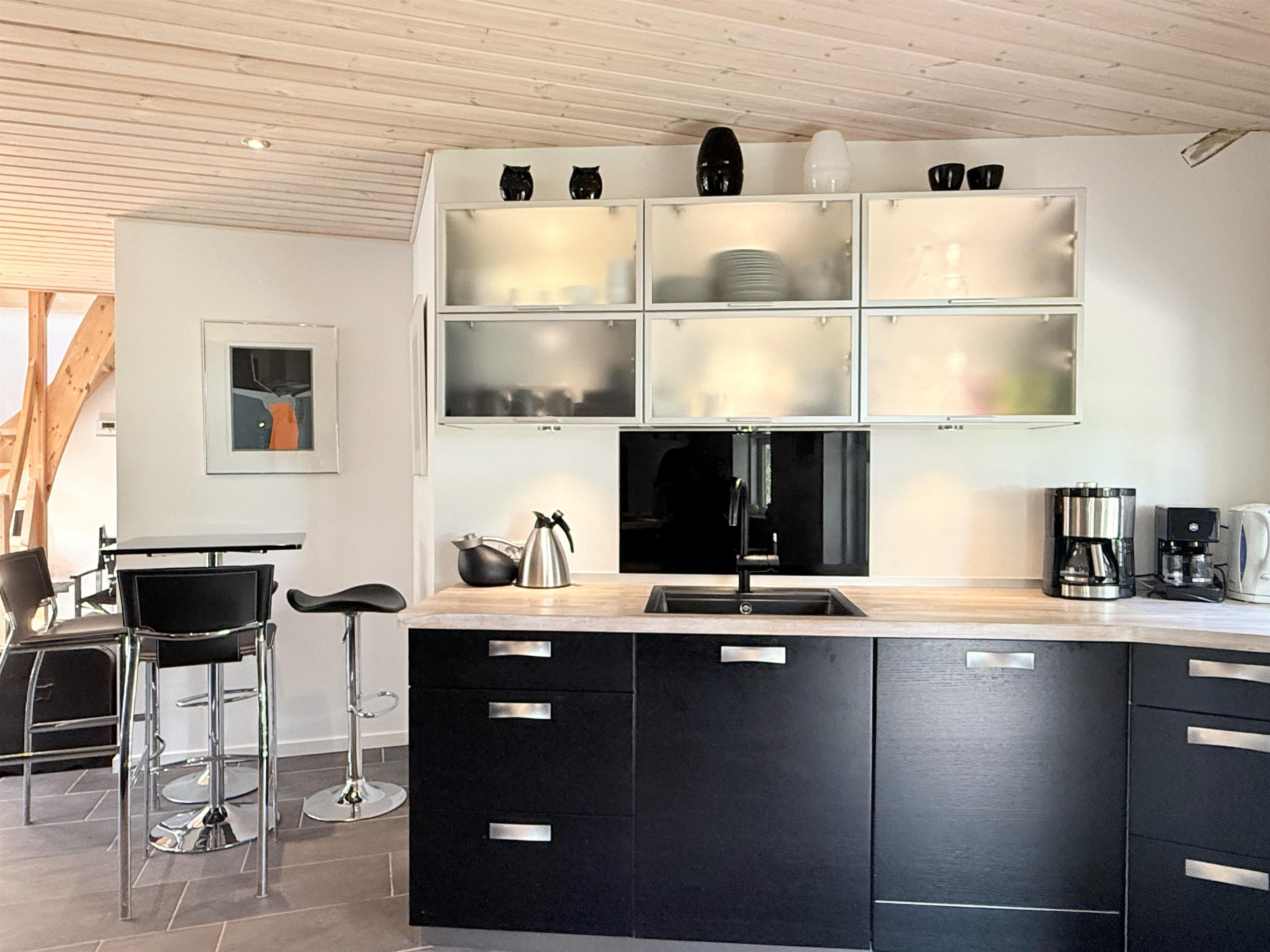 NEU bei Team Læsø. Dieses schöne, von einem Architekten entworfene Ferienhaus liegt ideal inmitten der herrlichen Natur Nordmarkens und vermittelt die perfekte Ferienhausatmosphäre. Das Haus wirkt sehr einladend, hell und geräumig mit vielen liebevollen Details. Die großen Fenster sorgen für viel Licht und einen herrlichen Blick auf die Natur und den Wald. Die schöne Küche ist offen mit dem beeindruckenden Wohnzimmer verbunden. Dieses bietet einen großen Essbereich, eine Sofagruppe, einen Arbeitsbereich und mehrere gemütliche Ecken, die zum Lesen oder einer guten Tasse Kaffee einladen. Ein Holzofen ist ebenfalls vorhanden. Über dem Wohnzimmer befindet sich der erste Stock mit einer weiteren gemütlichen Sofagruppe mit Fernseher und zwei zusätzlichen Schlafplätzen. Außerdem gibt es drei schöne Schlafzimmer, zwei davon mit Doppelbetten und eines mit einem Etagenbett. Es gibt zwei schöne Badezimmer, eines mit einem großen, schönen Doppel-Whirlpool, Dusche, WC und Waschbecken, das andere mit Dusche, WC und Waschbecken. Vom Wohnzimmer aus führen Terrassentüren auf die große, schöne Holzterrasse, wo die Gartenmöbel, der Grill und der Pizzaofen des Hauses genutzt werden können. Schöner Anbau mit Doppelbett und Küchenzeile, der beispielsweise genutzt werden kann, wenn Sie sich für eine Weile von der Gesellschaft zurückziehen müssen. Es gibt auch viele gute Wanderwege in der Umgebung und es ist nicht weit zum Strand und zum Meer. Die komfortable Einrichtung und die Lage des Hauses sorgen für einen schönen, erholsamen Urlaub, bei dem Sie sofort die typische Ruhe und die einzigartige Natur von Læsø spüren. Gleichzeitig liegt das Haus wunderschön und ruhig in Radnähe zum Golfplatz von Læsø sowie zum gemütlichen Hafen von Østerby mit Fischhändlern, Einkaufsmöglichkeiten und Restaurants.