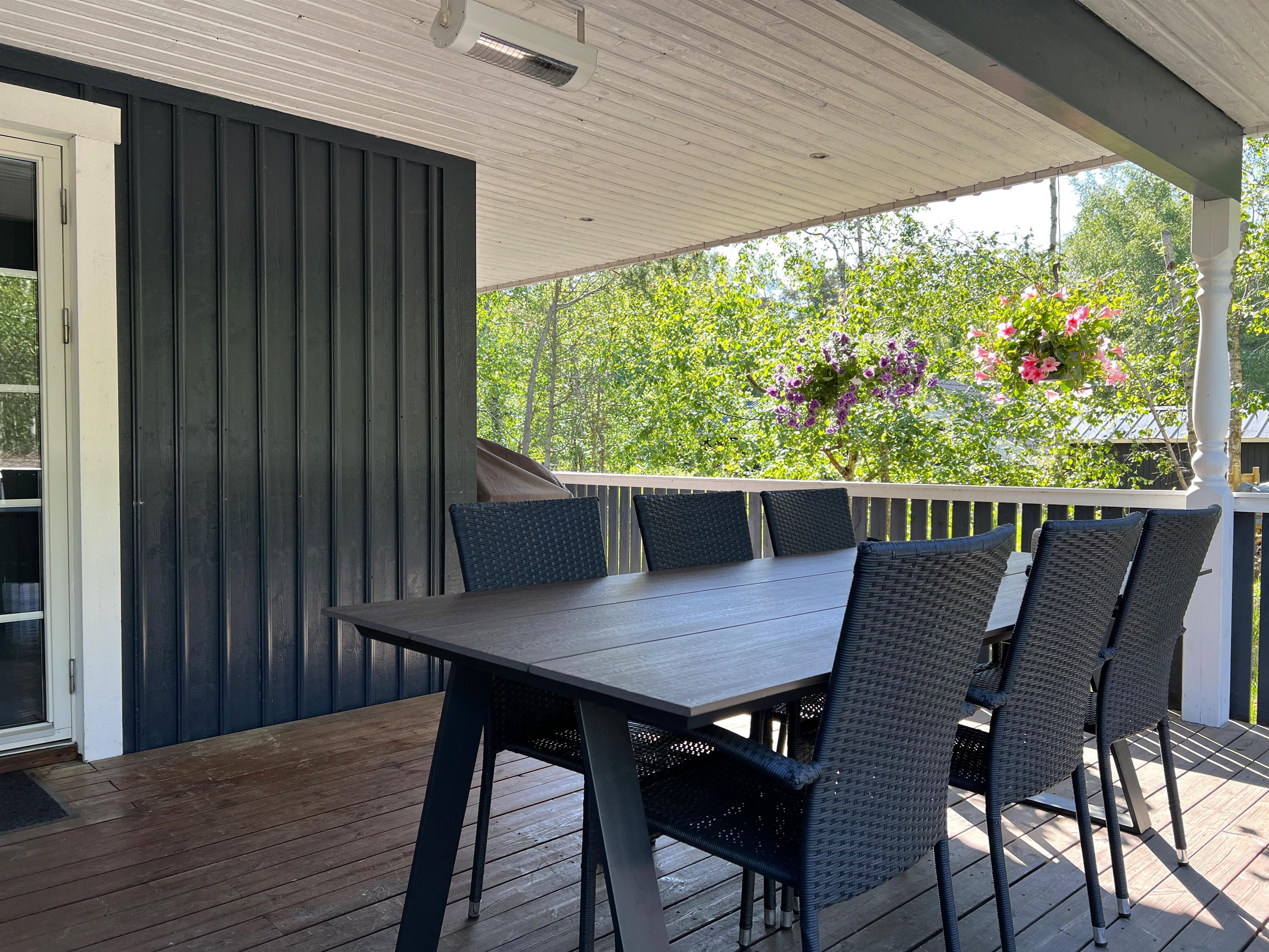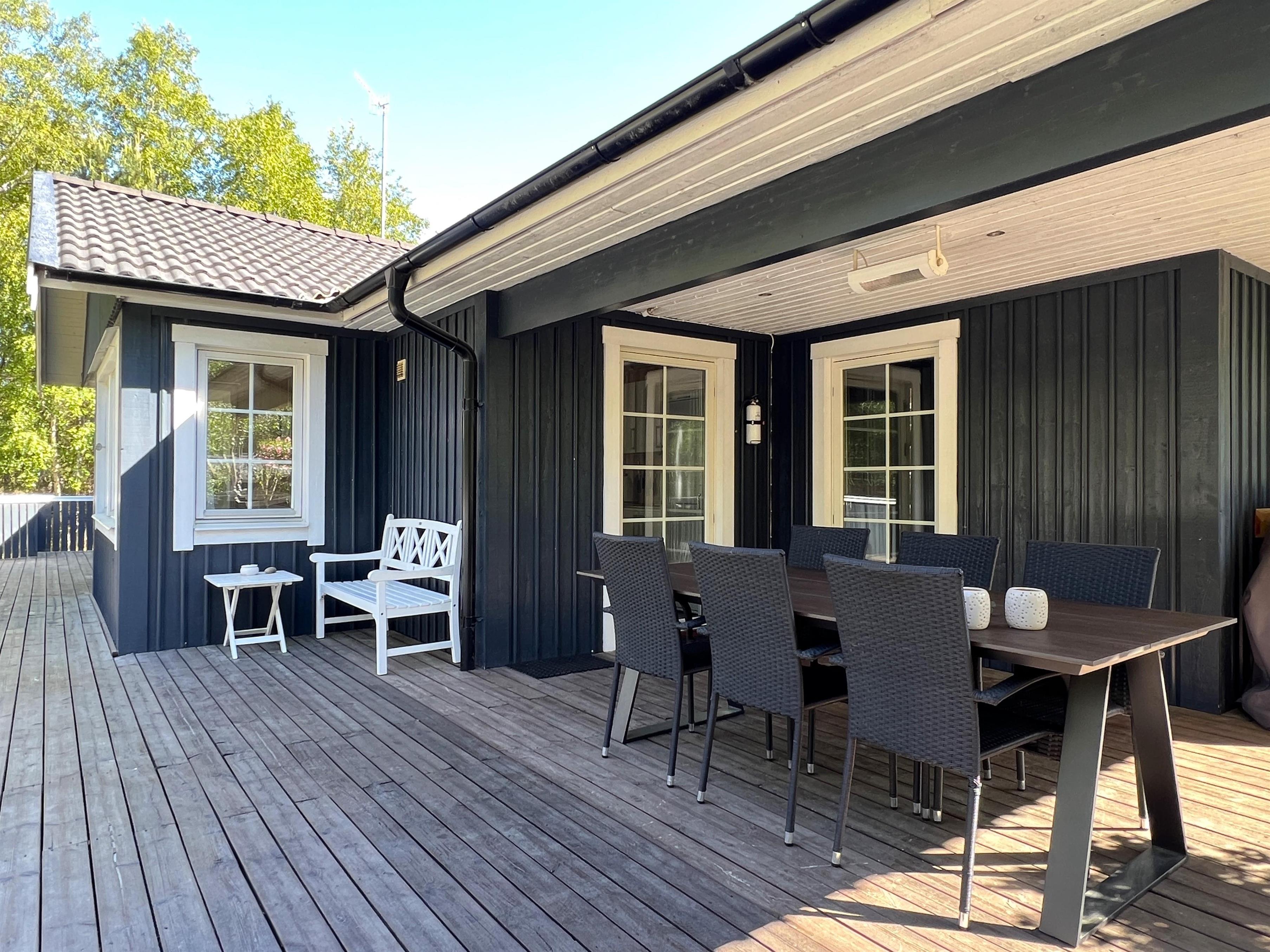 Ein richtig herrliches helles Swedish Woodhouse das im Herzen von Normarkens einmaliger Natur mit viel Heidegebiet und Birken liegt. Das Haus hat ein grosses gemütliches Wohnzimmer mit gut ausgestatteter Küche, mit direktem Ausgang zur grossen Holzterrasse. Im Zusammenhang mit Küche/Wohnzimmer ist die gemütliche Stube mit Holzofen, behaglichen Möbeln, mit geschmacksvoller Einrichtung. Es hat 3 Schlafzimmer, 2 mit Doppelbetten, und eines mit Einzelbett/Etagenbett. Das eine Schlafzimmer hat ein direkter Ausgang zur grosser Holzterrasse. Grosses herlliches Badezimmer. Die Terrasse ist teilweise Überdeckt mit Grill und guten Gartenmöbeln. Man kan die grosse Terrasse am Tag und am Abend geniessen weil die Terrassenwärme die Sommerabende verlängert. Oder geniesse Herbst oder Winterferien mit erholsamen Tage vor dem Holzofen. In diesem Haus findest du echte Sommerhausstimmung mit Ruhe in der herrlichen Natur. ûbrigens hat es grosse Möglichkeiten für Wander und Fahradturen, auch mit dem Hund . In gehabstand zum schönen Strand an der Nordküste , 900 meter. Rollstuhlgängig: Rampe zur Einganstüre. Es gibt eine Ladesteckdose für Elektroautos.