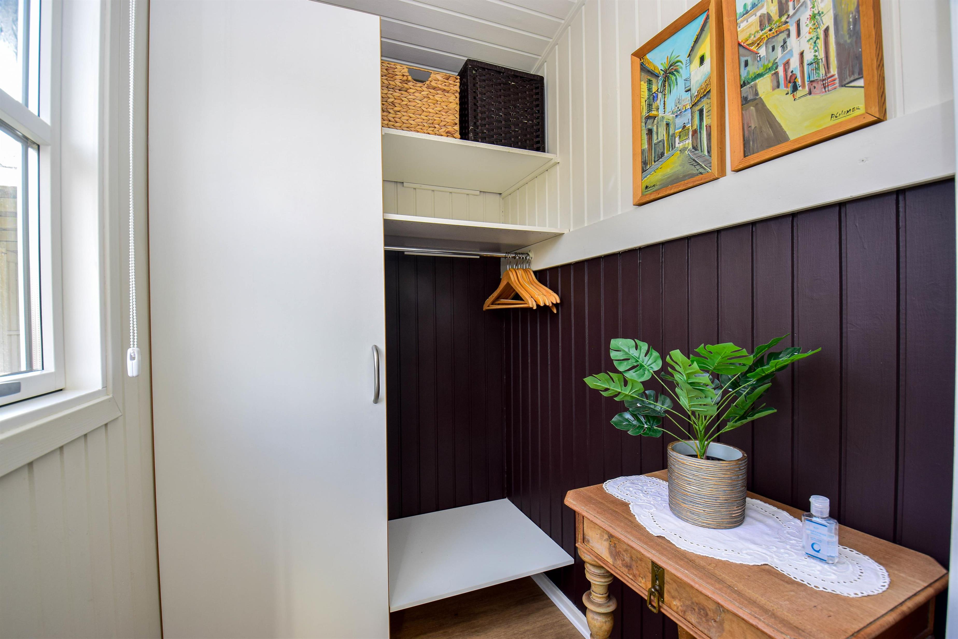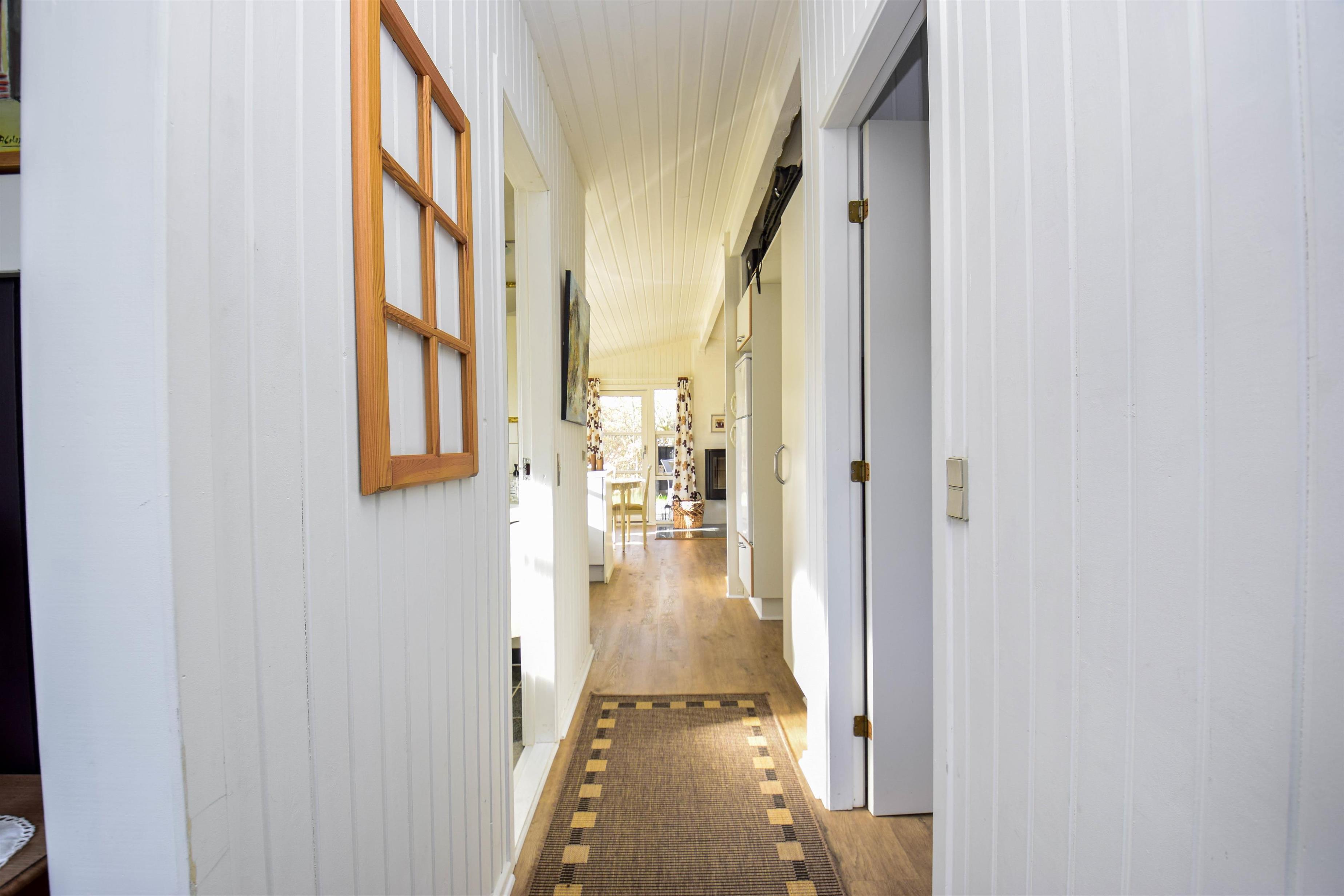 Der Eingangsbereich bietet reichlich Platz für Jacken und Schuhe. Von hier gelangt ihr in das Schlafzimmer mit einem bequemen Doppelbett in guter Qualität.