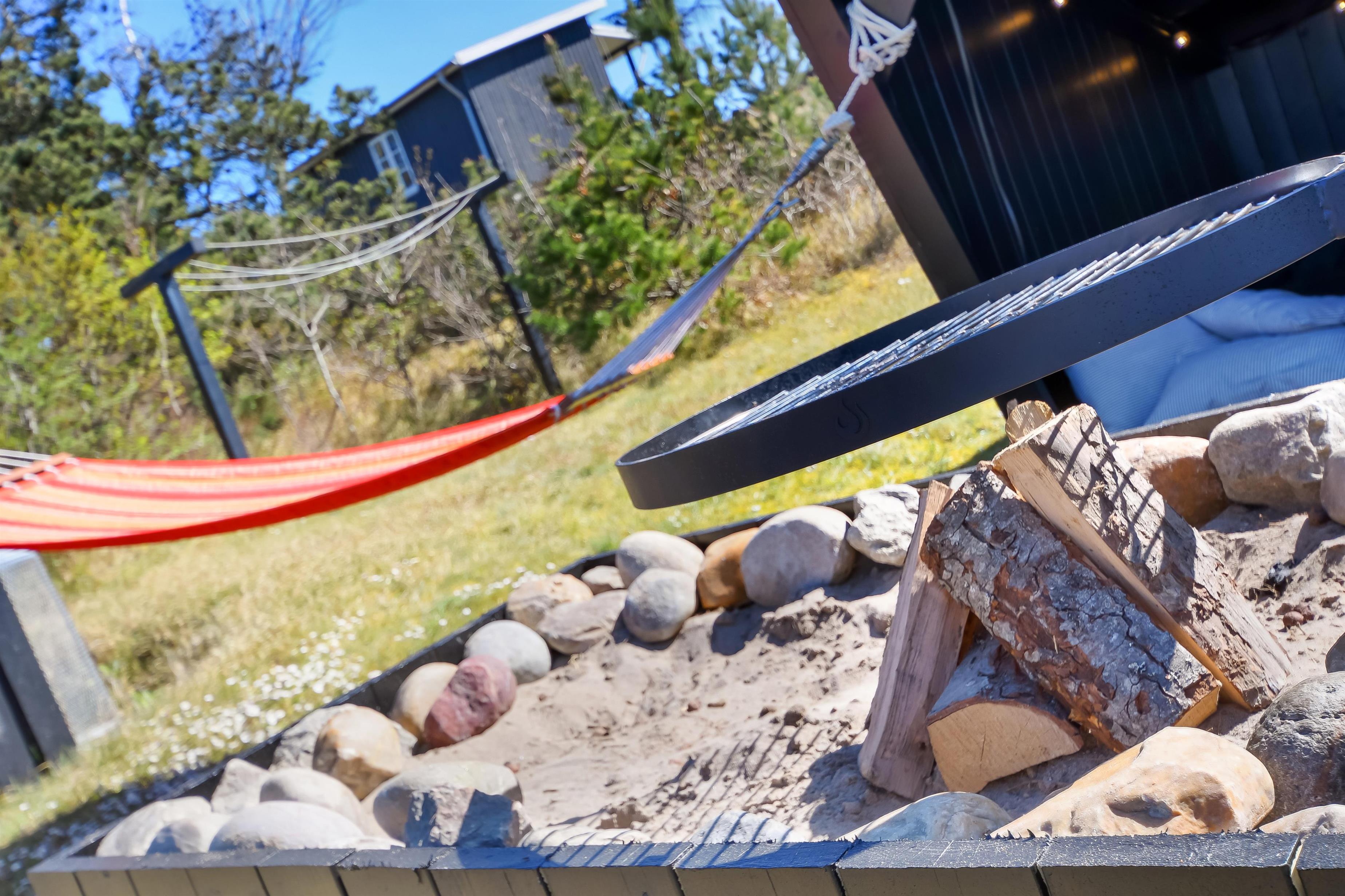 Hinter dem Haus befindet sich im Garten ein schöner Shelter mit eigener Feuerstelle – perfekt, um Stockbrot zu backen, Marshmallows zu rösten oder einfache Gerichte über dem Feuer zuzubereiten.