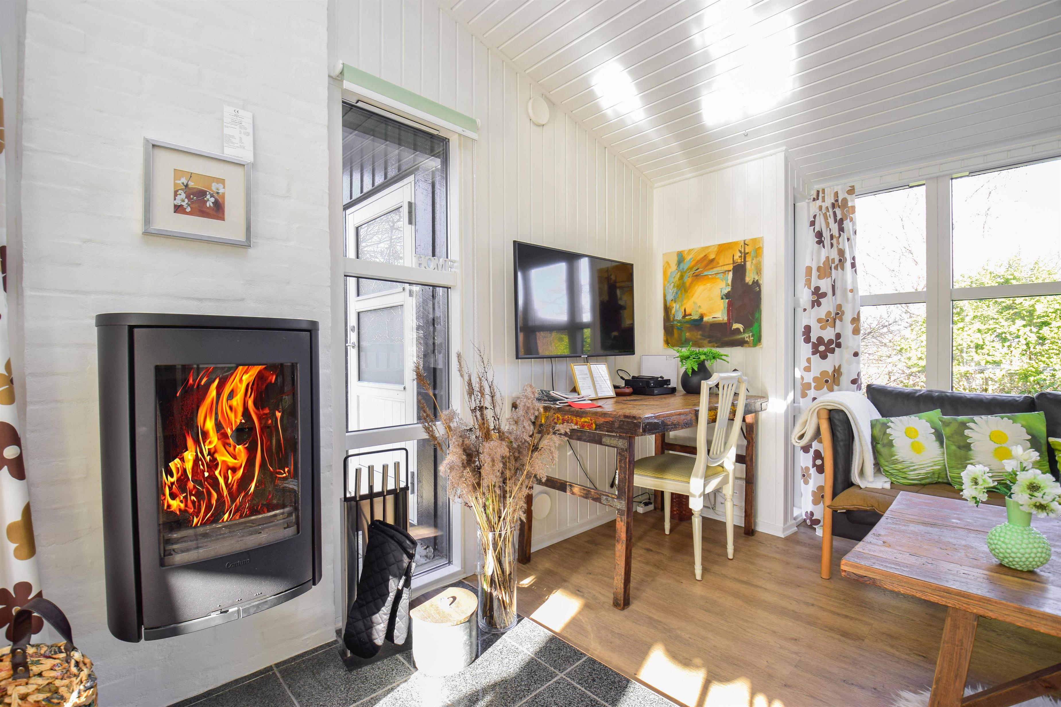 Der Kaminofen sorgt an kühleren Tagen für wohlige Wärme und eine besonders behagliche Stimmung.