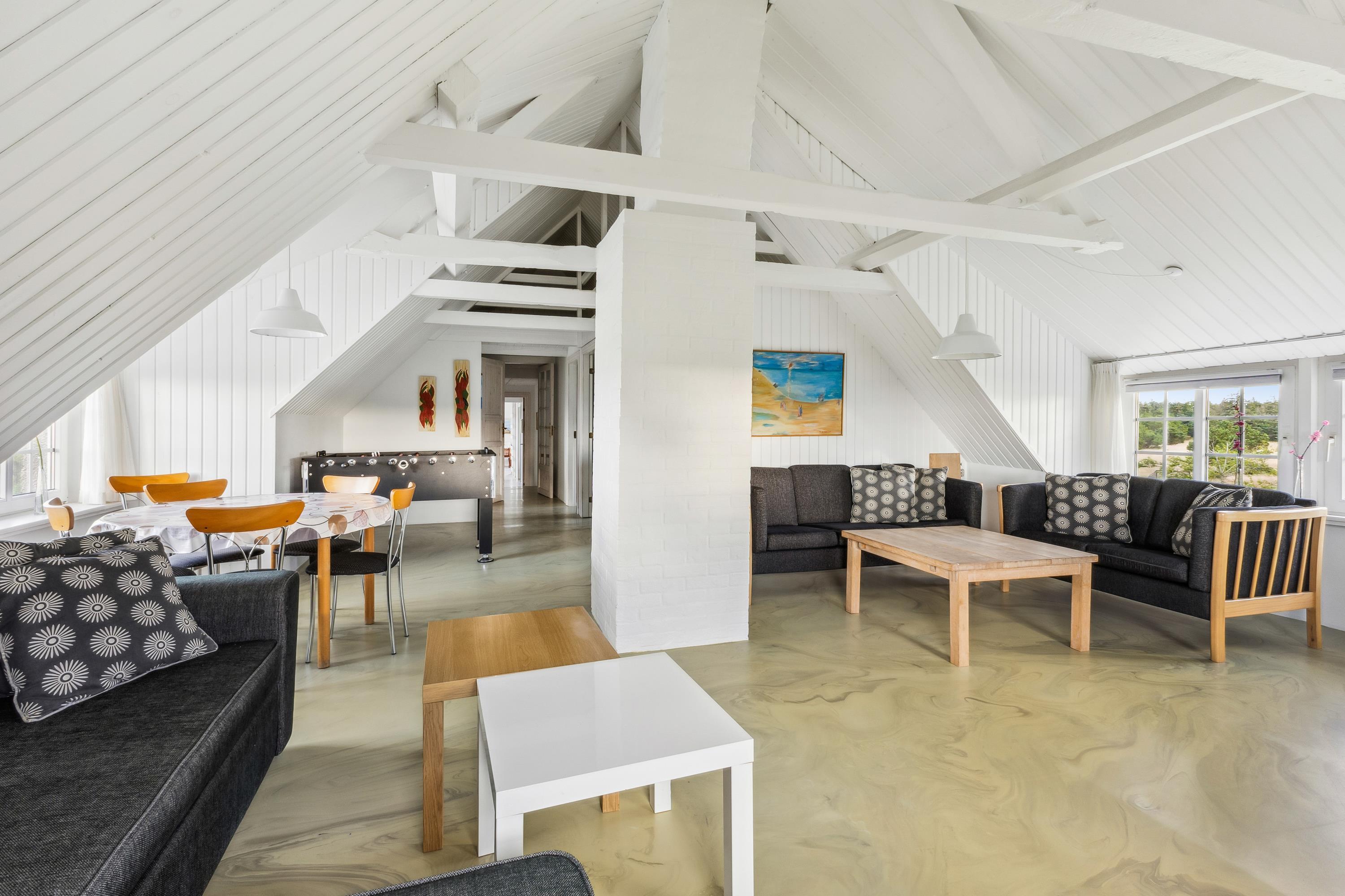 Dieses große, einladende Ferienhaus bietet richtig viel Platz für alle - und ja, auch der Hund ist willkommen! Von der Küche, dem Wohnzimmer und aus den meisten Zimmern habt ihr einen fantastischen Blick auf den atemberaubenden Nissum Fjord. Von der Terrasse aus sind es nur etwa 90 Meter zu einem privaten Badestrand am Fjord, wo ihr eure Zehen ins Wasser tauchen und die ruhige Atmosphäre genießen könnt. Auf dem schönen Grundstück an der Südseite des Hauses können die Erwachsenen entspannen, während die Kleinen und alle Junggebliebenen das Trampolin nutzen oder Fußball und Beachvolleyball spielen. Nach all der Familienaktivität oder einem langen Spaziergang könnt ihr euch dann im Hot Tub aufwärmen und dabei die herrliche Aussicht auf den Fjord genießen.