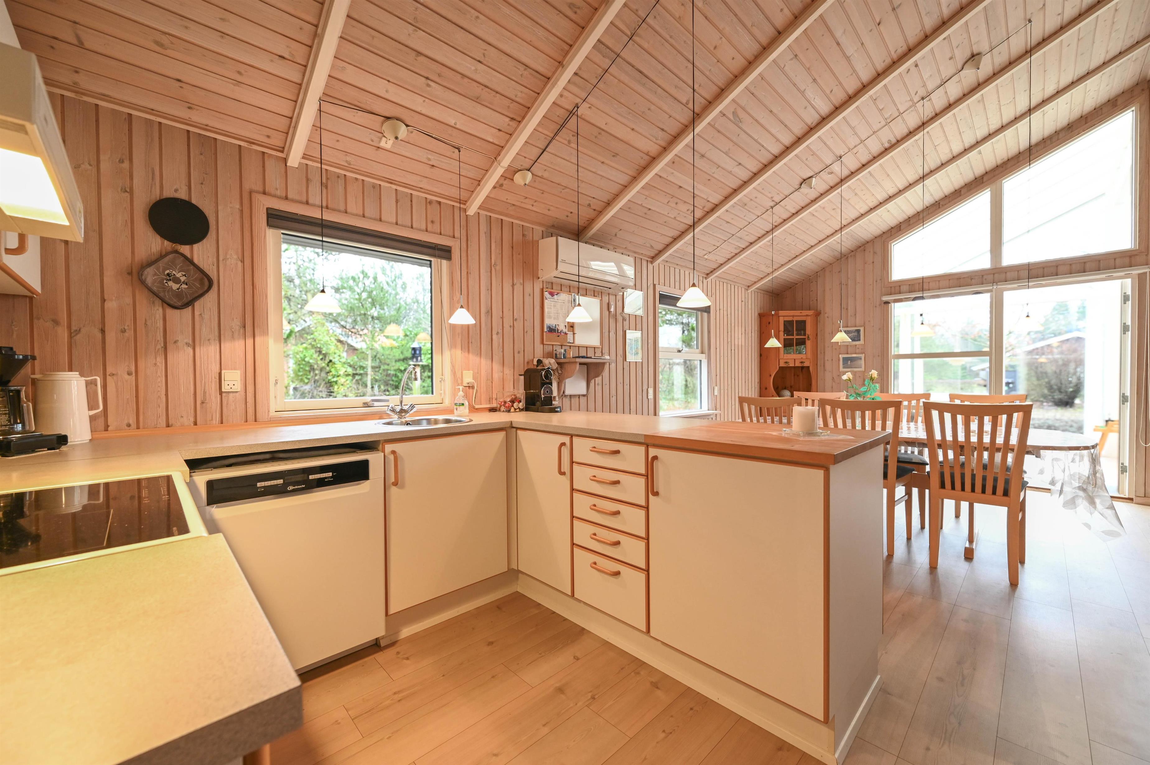 Das Ferienhaus ist hell und freundlich eingerichtet – mit einer guten Raumaufteilung und viel Platz für gemeinsame Stunden. Die offene Küche ist direkt mit dem Wohnzimmer verbunden, wo Kaminofen und Wärmepumpe das ganze Jahr über für angenehme Temperaturen sorgen. Vom Wohnzimmer gelangt ihr in den großen, lichtdurchfluteten Wintergarten, in dem ihr den Blick in den Garten und die Ruhe genießen könnt – zu jeder Jahreszeit.