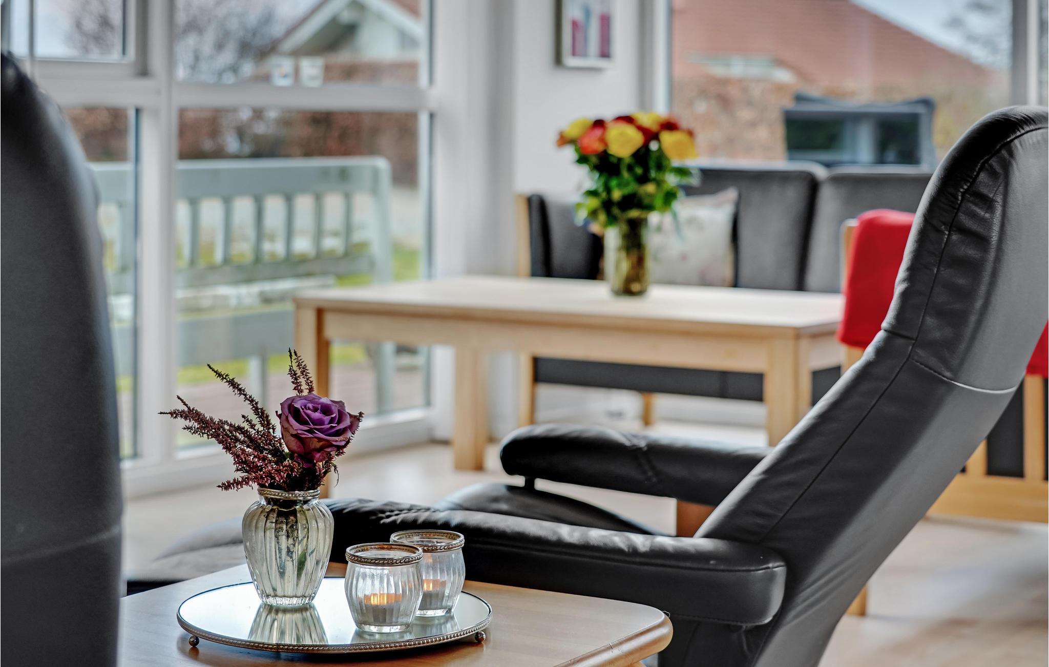 Dieses sehr geschmackvoll eingerichtetes friedliches Ferienhaus bietet Ihnen und Ihrer Begleitung einen gemütlichen Wohnraum mit viel Potenzial für schöne Morgende und Abende mit der Familie, so gibt es einen großen Esstisch für Brettspiele und einen Kaminofen um den Tag ausklingen zu lassen. Auf Ihrer offenen Terrasse können Sie den frischen Fisch auf dem Grill brutzeln lassen während Sie sich den Sonnenstrahlen hingeben und die Frischluft einatmen.
