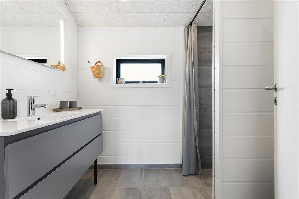 Modernes Ferienhaus in Nr. Lyngby mit Sauna, Kamin und Spielplatz, nur 360 m vom Strand entfernt.