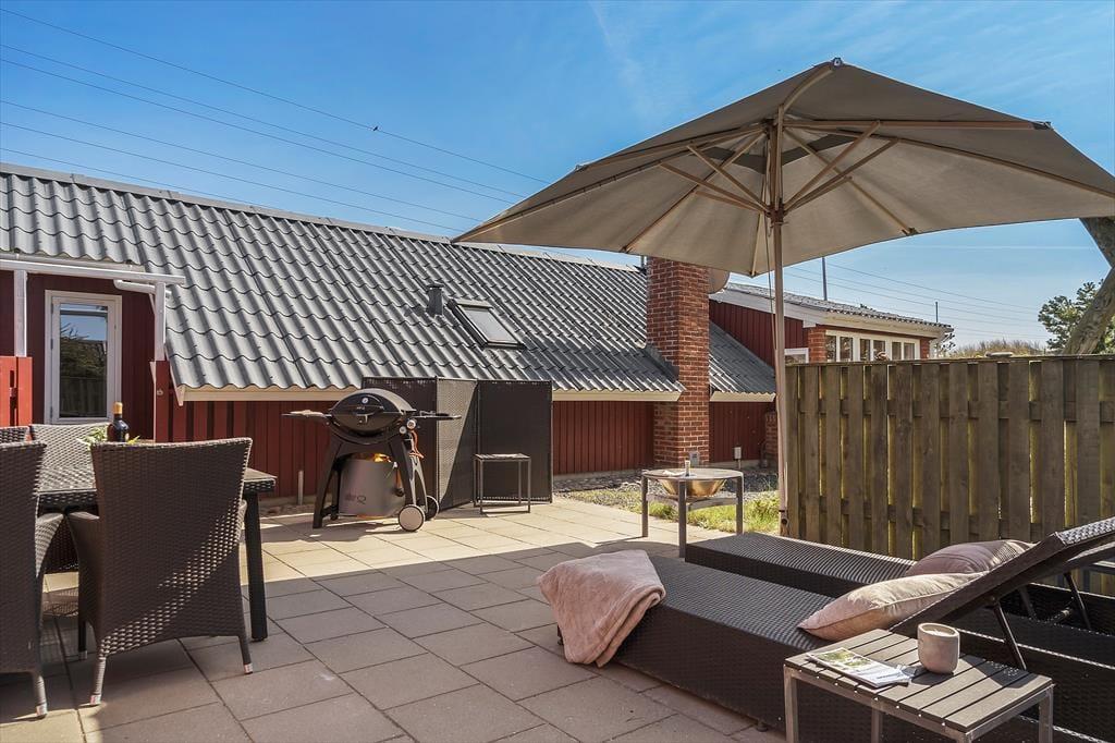 Auf dem schönen Naturgrundstück gibt es reichlich Gelegenheit, den Urlaub im Freien zu genießen. Die beiden Terrassen, nach Südwesten und Südosten ausgerichtet, sorgen dafür, dass du immer ein sonniges Plätzchen zum Relaxen finden kannst. Hier kannst du den Tag mit einer Tasse Kaffee in der Morgensonne beginnen oder lange Sommerabende mit Grillen und Geselligkeit unter freiem Himmel verbringen. Der Garten bietet Platz zum Spielen und Entspannen in der Ruhe der Natur, wo Vogelgezwitscher und das Rauschen des Windes in den Bäumen die Stimmung bestimmen. Der Strand ist nur etwa 1 km vom Ferienhaus entfernt, sodass es leicht ist, ein erfrischendes Bad zu nehmen oder einen Spaziergang am Wasser zu genießen.