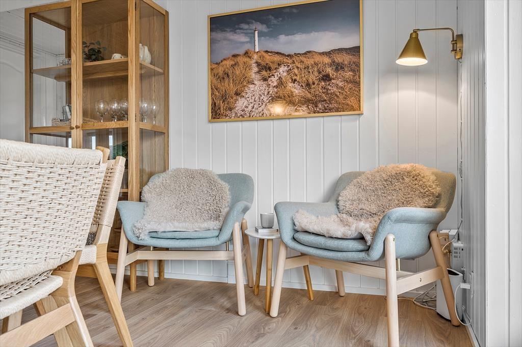 Nr. Lyngvig liegt zwischen Hvide Sande und Søndervig auf der schmalen Landzunge Holmsland Klit. Vom Ferienhaus haben Sie somit sowohl einen geringen Abstand zum Ringkøbing Fjord und der Nordsee, dies bietet Ihnen einen fantastischen Ausgangspunkt, falls Sie surfen, baden, angeln, den Vögeln zusehen oder einfach am Wasser entlang schlendern möchten. Zu Fuß erreichen Sie schnell Lyngvig Havn, welcher absolut Naturbelassen zum Fjord liegt. Und sollten Sie den Kurs Richtung Strand einschlagen, könnte es eine Überlegung wert sein an Lyngvig Fyr vorbei zu gehen. Dort gibt es Spielplätze, Cafés und eine schöne Panorama-Aussicht vom Leuchtturm.