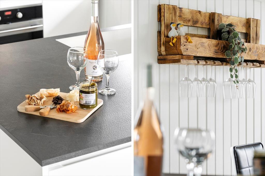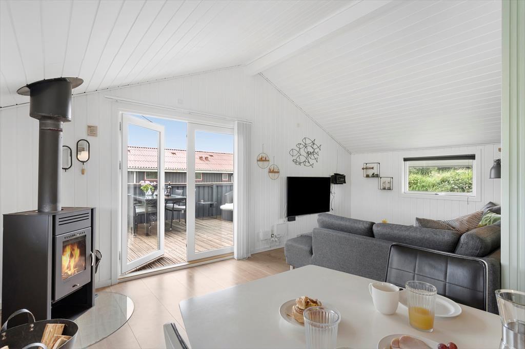 Das ansprechende, gepflegte Ferienhaus mit schwarzer Holzfassade und weißen Fensterrahmen ruht auf einem 1.250 m² großen Grundstück. Im Inneren erwartet Sie ein attraktives Ambiente, das regelmäßigen Renovierungen zu verdanken ist. Zuletzt wurden die modernen Räumlichkeiten im Jahr 2017 renoviert. Die Küche verfügt über einen Geschirrspüler und andere Küchengroßgeräte. Sie ist offen mit dem Wohnraum verbunden, sodass Sie selbst während der Zubereitung der Mahlzeiten am Familiengeschehen teilhaben. An kühlen Abenden sorgt der Kaminofen für behagliche Wärme und ein Maximum an Gemütlichkeit. Entspannte Stunden genießen Sie auf dem schönen Sofa vor dem Flachbild-TV. Drei Schlafräume sind vorhanden. Gleiches gilt für ein Badezimmer mit Dusche und Waschmaschine.