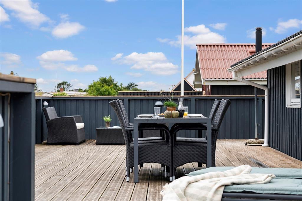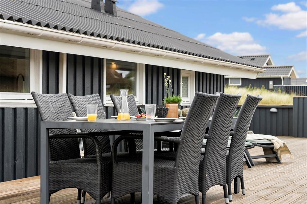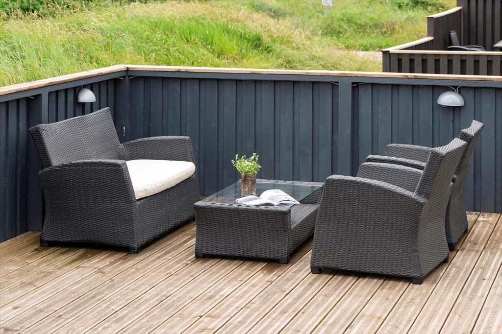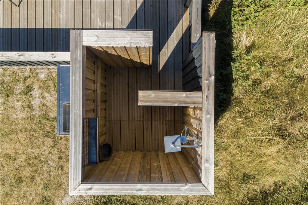 Bei schönem Wetter werden Sie einen Großteil Ihres Urlaubs auf dem großen Terrassenareal verleben. Dies umfasst eine Fläche von 150 m² und erstreckt sich gen Osten, Süden und Westen. Sie werden daher zu jeder Tageszeit ein sonniges Plätzchen unter freiem Himmel finden. Die Terrasse ist gänzlich von einer Terrassenumrandung umgeben - ein Umstand, den insbesondere Hundebesitzer und Eltern abenteuerlustiger Kleinkinder sehr zu schätzen wissen. Die guten Gartenmöbel gestalten ihren Aufenthalt auf der Terrasse angenehm komfortabel. Zum Haus gehört ein Schuppen, in dem Sie Ihre Fahrräder und ähnliche Dinge unterstellen können. Ein Fischreinigungsplatz und eine Außendusche sind vorhanden.