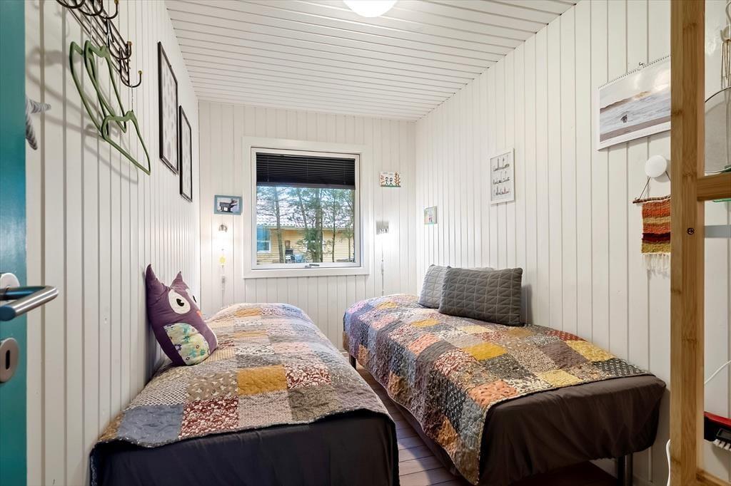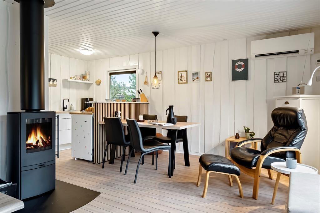 In Nr. Lyngvig, ganz in der Nähe des Leuchtturms Lyngvig, befindet sich dieses kleine, gemütliche und persönlich eingerichtete Ferienhaus, das sich besonders gut für zwei Erwachsene eignet. Das Haus ist überall hell und mit schönen Holzböden ausgestattet. Es gibt zwei Schlafzimmer mit guten Betten, eines davon mit verstellbaren Betten (Elevationsbetten). Die Küche ist funktional – statt eines herkömmlichen Backofens gibt es eine 6,5-Liter-Heißluftfritteuse und einen elektrischen Pizzaofen. Das Badezimmer ist gut eingerichtet mit Dusche, WC und Waschbecken. Eine gemütliche Sofaecke, ein paar Sessel und ein großer Fernseher mit Satellitenkanälen sorgen für Komfort. Vom Esstisch und vom Sofa aus haben Sie einen schönen Blick in den Garten. Hier werden Sie sich wie zu Hause fühlen – das gepflegte Ferienhaus strahlt viel Gemütlichkeit und Charme aus und liegt auf einem schönen Grundstück mit guter Windschutzlage dank der Bäume, die das Nachbargrundstück im Westen abgrenzen.