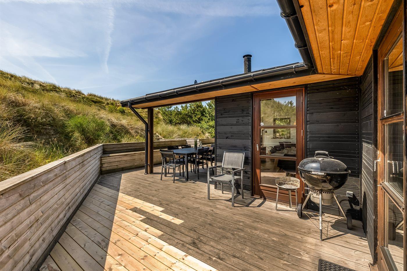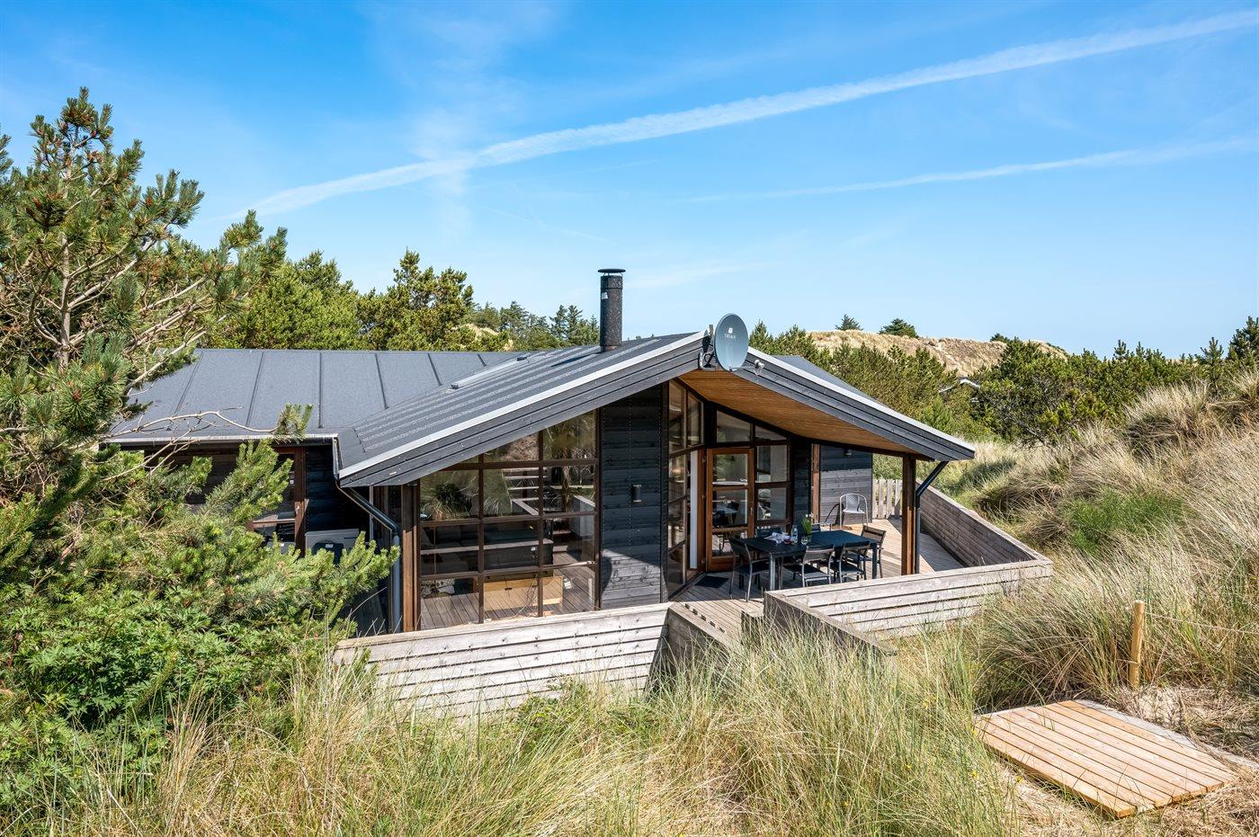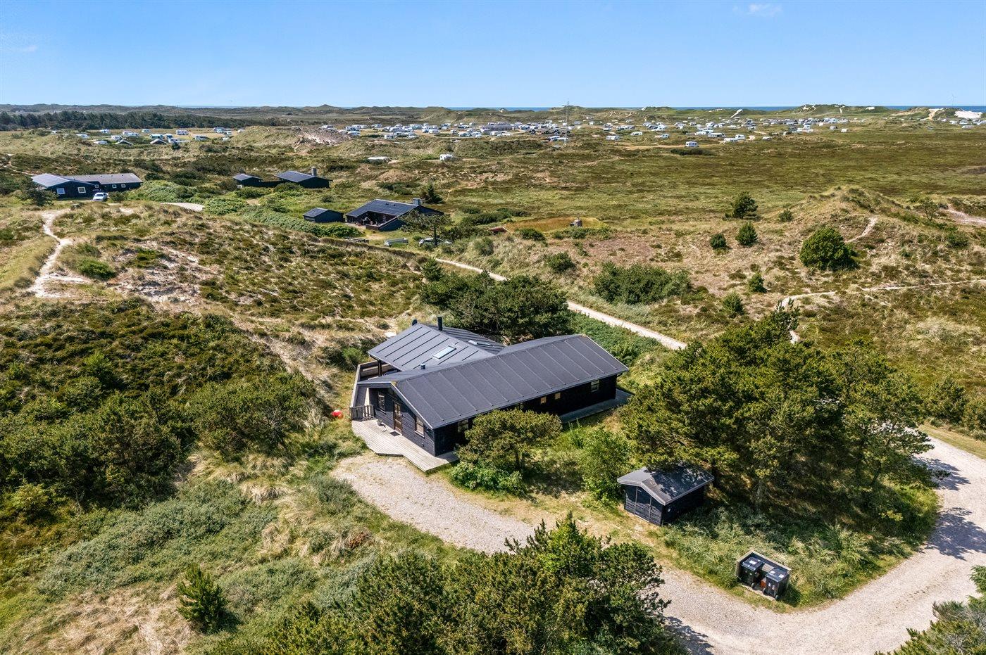 Im naturschönen Nr. Lyngvig zwischen dem Badeort Søndervig und dem Fischereiort Hvide Sande liegt dieses herrliche Luxusferienhaus, 2004 gebaut und 2014 völlig renoviert, auf einem herrlichen, leicht hügeligen Dünengrundstück - nur 800 m von der Nordsee entfernt. Zum Haus gehören schöne, ungestört gelegene Terrassen mit Gartenmöbeln. Von den Terrassen können Sie den Kindern beim Spielen zusehen. Vom Haus führt ein Pfad auf den Gipfel einer Düne hinauf - von der Sie die schöne Aussicht über die Landschaft genießen können. Innen gibt es gestrichene Wände. Holzböden, jedoch Klinkerboden im Flur, Waschküche und Badezimmern. Großes und schickes Badezimmer mit Fußbodenheizung, Duschnische, 2-Pers.-Whirlpool sowie Zutritt zur Sauna. Zusätzliches Badezimmer ebenfalls mit Fußbodenheizung und Duschnische. Die moderne und gut ausgestattete Küche enthält u.a. Geschirrspüler, Mikrowelle, Tiefkühlgerät, Umluftofen und Herd mit Ceran-Feld. Im hellen und geschmackvoll eingerichteten Wohnzimmer mit großer Fensterfront und Zutritt zur Terrasse finden Sie Kaminofen, Stereoanlage mit CD-Spieler, DVD-Spieler und 42” Flatscreen-TV mit digitalem Satellitenanschluss. Die Schlafplätze verteilen sich auf 4 gute Schlafzimmer, alle mit Doppelbett und gutem Schrankplatz. 2 der Zimmer haben ferner Zutritt zur Terrasse. An weiterer Ausstattung können Waschmaschine, Wäschetrockner, Kinderbett und Kinderhochstuhl erwähnt werden. Ausserdem steht kostenlose, kabellose Internetverbindung zur Verfügung. Es ist eine energiegerechte Wärmepumpe installiert, die auch als Aircondition funktioniert. Ein wirklich schönes Ferienhaus - in einem Gebiet mit guten Wander- und Aktivitätsmöglichkeiten.