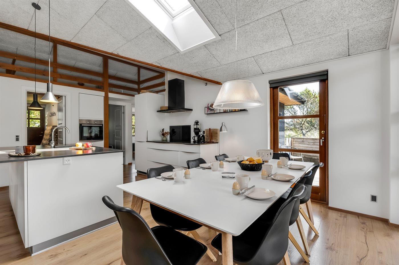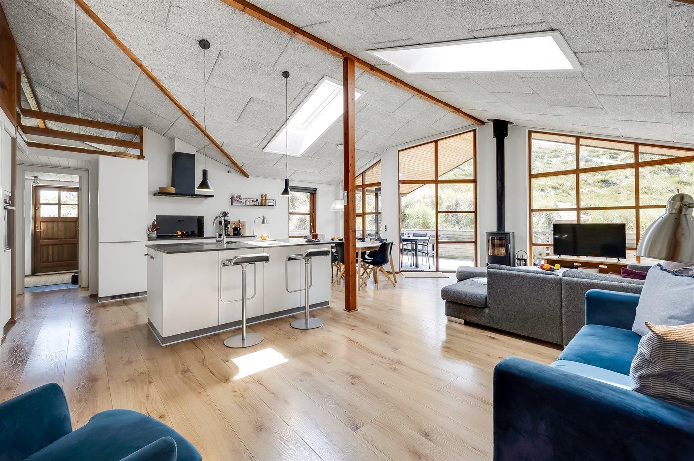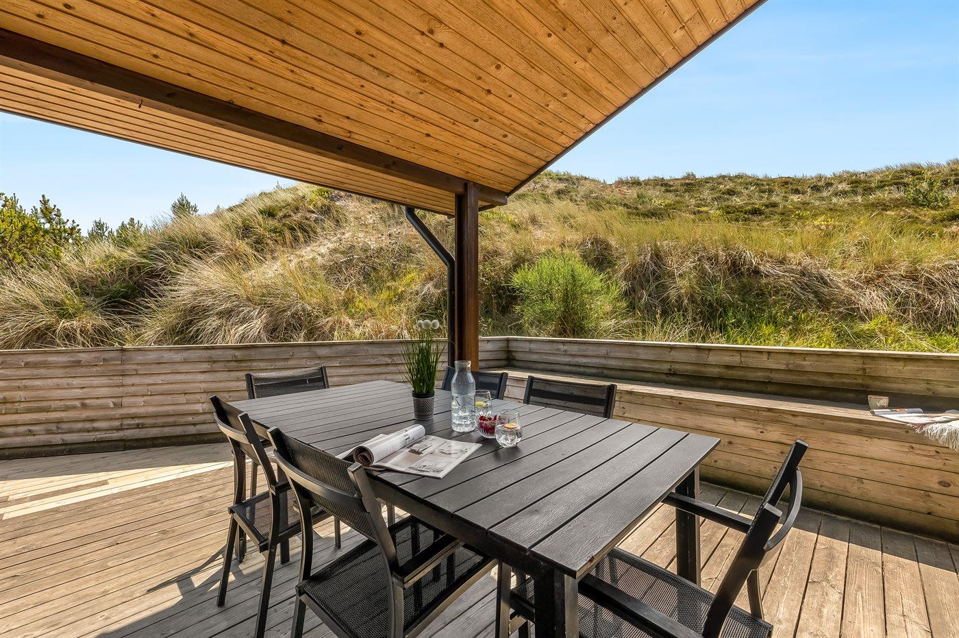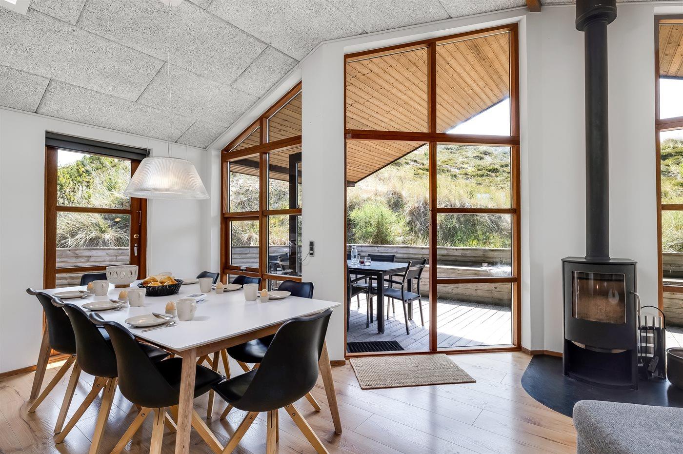 Im naturschönen Nr. Lyngvig zwischen dem Badeort Søndervig und dem Fischereiort Hvide Sande liegt dieses herrliche Luxusferienhaus, 2004 gebaut und 2014 völlig renoviert, auf einem herrlichen, leicht hügeligen Dünengrundstück - nur 800 m von der Nordsee entfernt. Zum Haus gehören schöne, ungestört gelegene Terrassen mit Gartenmöbeln. Von den Terrassen können Sie den Kindern beim Spielen zusehen. Vom Haus führt ein Pfad auf den Gipfel einer Düne hinauf - von der Sie die schöne Aussicht über die Landschaft genießen können. Innen gibt es gestrichene Wände. Holzböden, jedoch Klinkerboden im Flur, Waschküche und Badezimmern. Großes und schickes Badezimmer mit Fußbodenheizung, Duschnische, 2-Pers.-Whirlpool sowie Zutritt zur Sauna. Zusätzliches Badezimmer ebenfalls mit Fußbodenheizung und Duschnische. Die moderne und gut ausgestattete Küche enthält u.a. Geschirrspüler, Mikrowelle, Tiefkühlgerät, Umluftofen und Herd mit Ceran-Feld. Im hellen und geschmackvoll eingerichteten Wohnzimmer mit großer Fensterfront und Zutritt zur Terrasse finden Sie Kaminofen, Stereoanlage mit CD-Spieler, DVD-Spieler und 42” Flatscreen-TV mit digitalem Satellitenanschluss. Die Schlafplätze verteilen sich auf 4 gute Schlafzimmer, alle mit Doppelbett und gutem Schrankplatz. 2 der Zimmer haben ferner Zutritt zur Terrasse. An weiterer Ausstattung können Waschmaschine, Wäschetrockner, Kinderbett und Kinderhochstuhl erwähnt werden. Ausserdem steht kostenlose, kabellose Internetverbindung zur Verfügung. Es ist eine energiegerechte Wärmepumpe installiert, die auch als Aircondition funktioniert. Ein wirklich schönes Ferienhaus - in einem Gebiet mit guten Wander- und Aktivitätsmöglichkeiten.