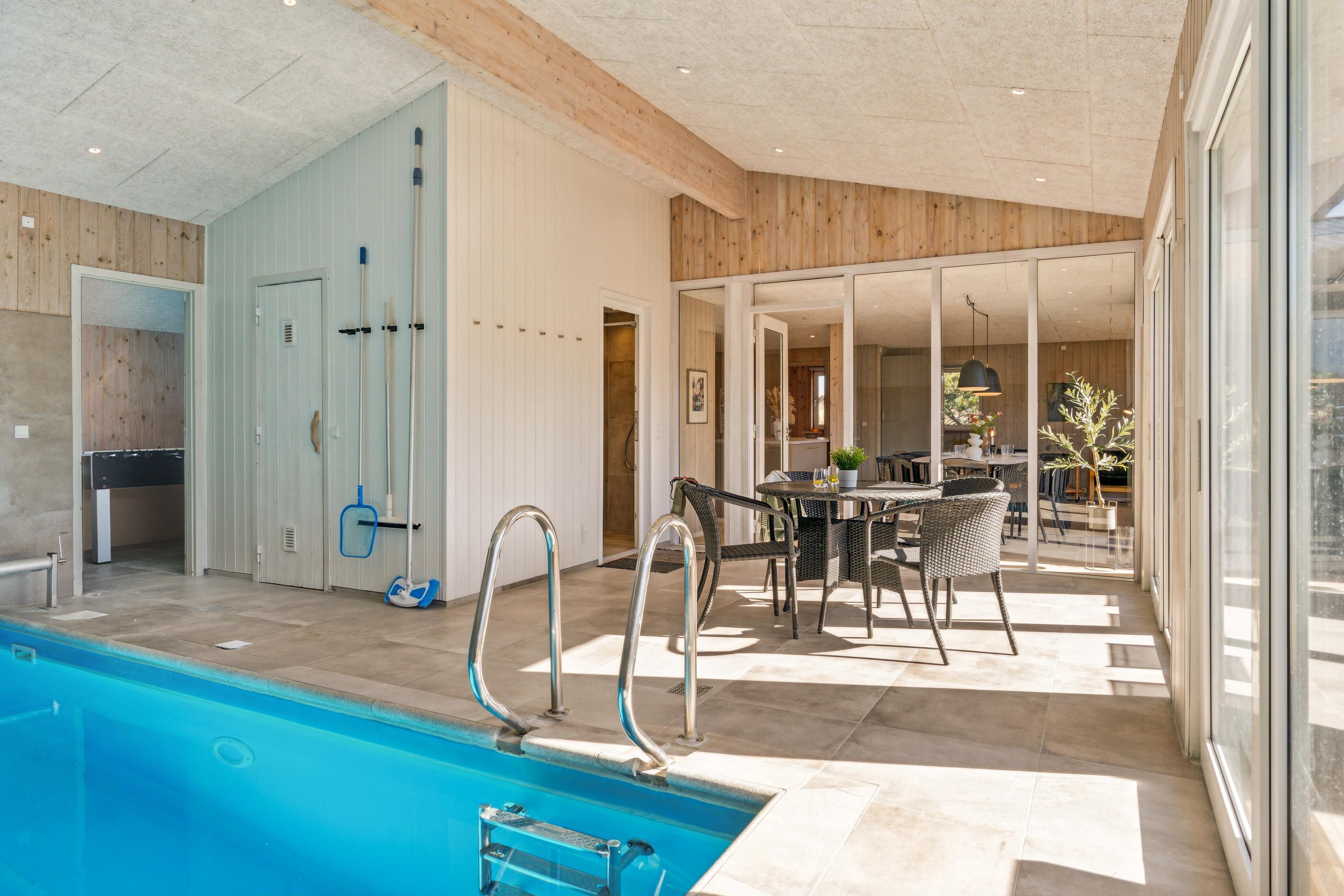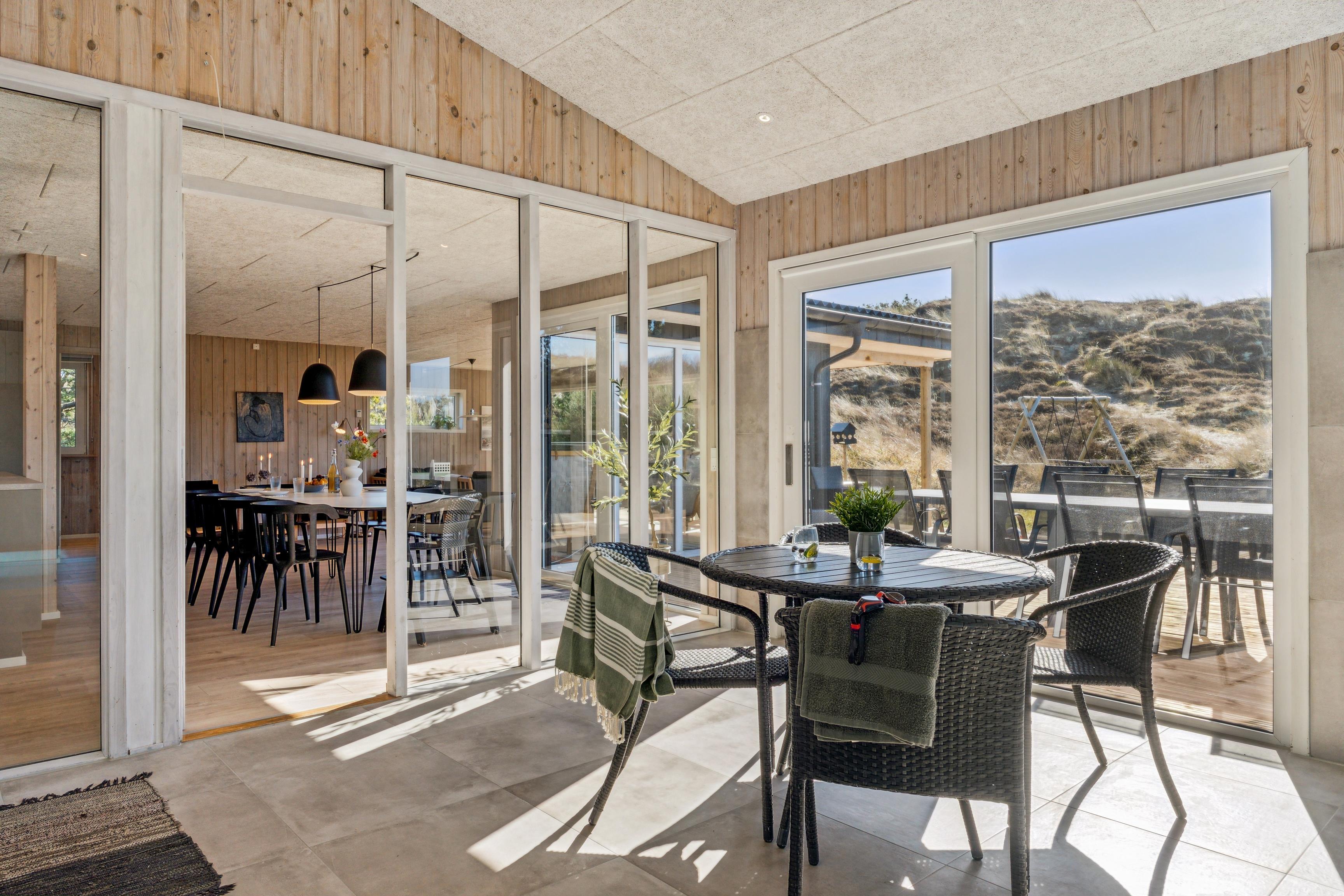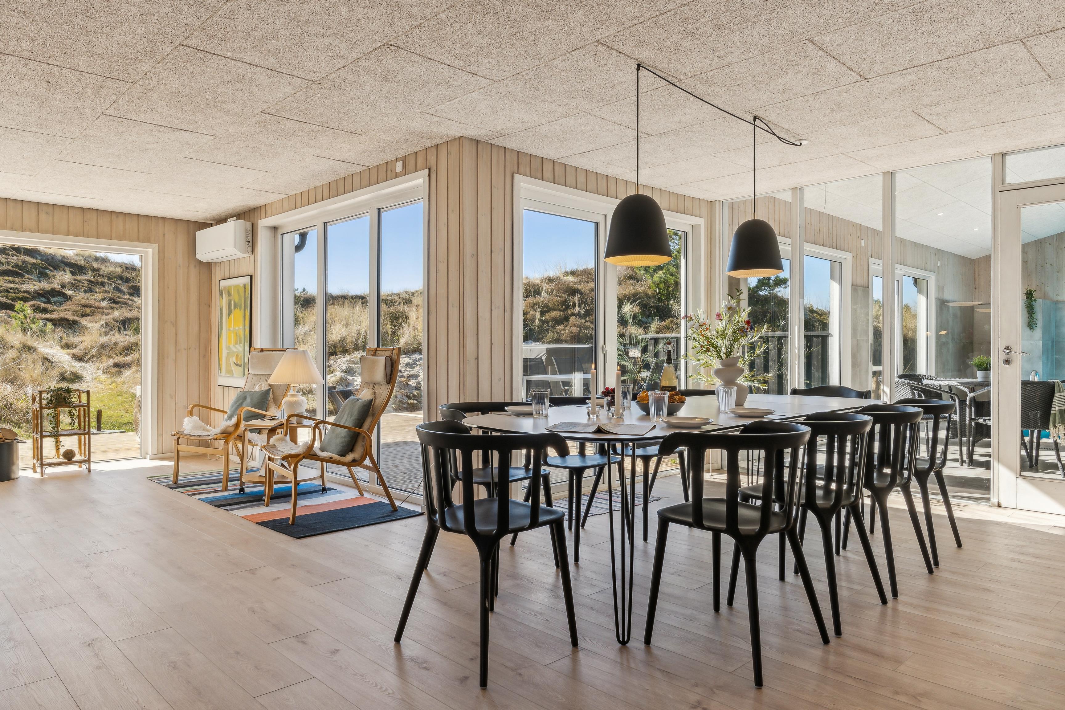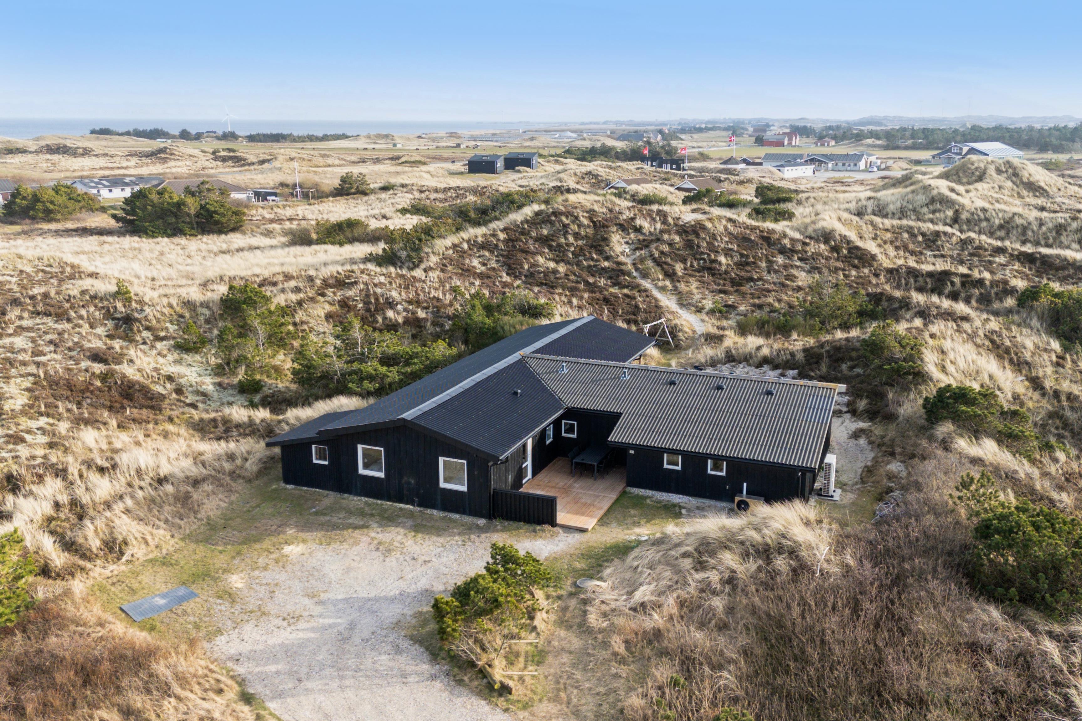 Fantastisch neu renoviertes Ferienhaus. Nach einer umfassenden Modernisierung im Jahr 2025 präsentiert sich das Haus nun als modernes und luxuriöses Urlaubsparadies mit einem neuen großen Außen-Whirlpool, modernisiertem Poolbereich und wunderschönen Terrassen. Das Haus befindet sich auf einem 3.000 m² großen, hügeligen Dünengrundstück, wo Sie eine völlig ungestörte Lage in der Nähe der beeindruckenden Natur genießen können. Von den Terrassen aus haben Sie einen herrlichen Blick auf den Leuchtturm Nr. Lyngvig, und es gibt reichlich Gelegenheit für Spaß und Entspannung mit Tischfußball, Outdoor-Tischtennis und kostenlosem WLAN.