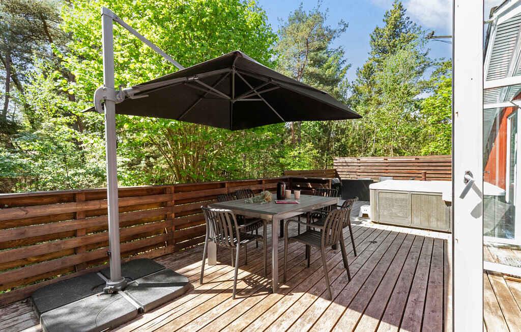 Schönes Ferienhaus mit Swimmingpool, Sauna und Außenwhirlpool, gelegen auf einem großen, geschlossenen und uneinsehbaren Naturgrundstück nahe Houstrup Strand. Das Ferienhaus ist geschmackvoll eingerichtet und verfügt über eine geräumige Wohnküche mit Kaminofen. Es gibt drei Schlafzimmer, von denen eines direkt vom Poolraum aus zugänglich ist. Genießen Sie auf der Terrasse ein leckeres Grillessen, während die Kinder auf dem großen Grundstück spielen. Nicht weit vom Haus entfernt befindet sich die beste und hügelige Mountainbike-Strecke der Westküste. Der herrliche Badestrand ist mit dem Fahrrad erreichbar. Die Gegend ist bekannt für ihre guten Natur- und Wanderwege, und das beeindruckende Dünengebiet grenzt nahezu direkt an das Ferienhaus. Ein schöner Spielplatz liegt ebenfalls in Gehweite. Seawest mit großem Aktivitätszentrum und Erlebnisbad sowie das große Naturschutzgebiet bei Filsø Gods sind einen Besuch wert. Achtung: Wird nicht für gewerbliche Nutzung vermietet.