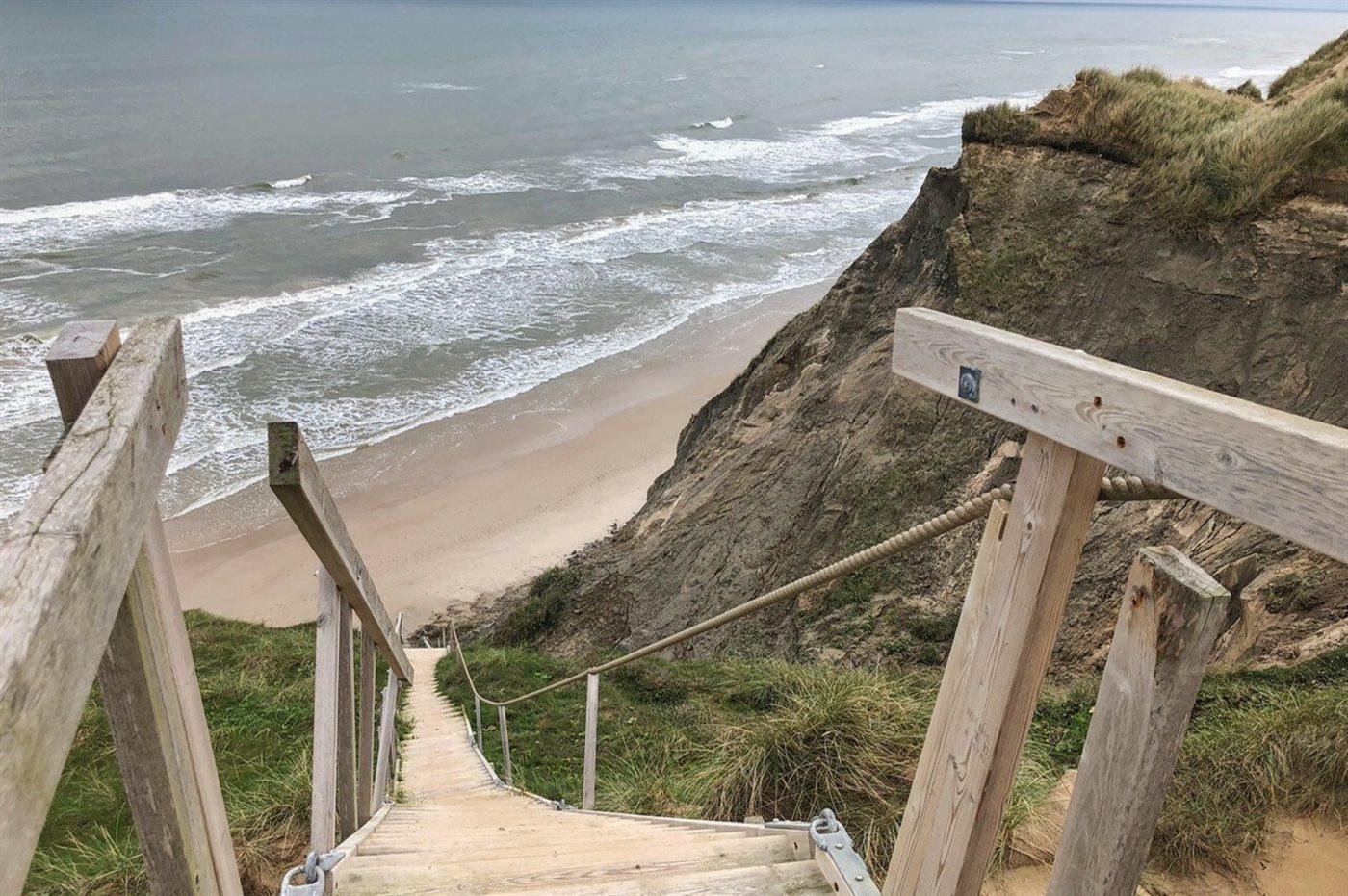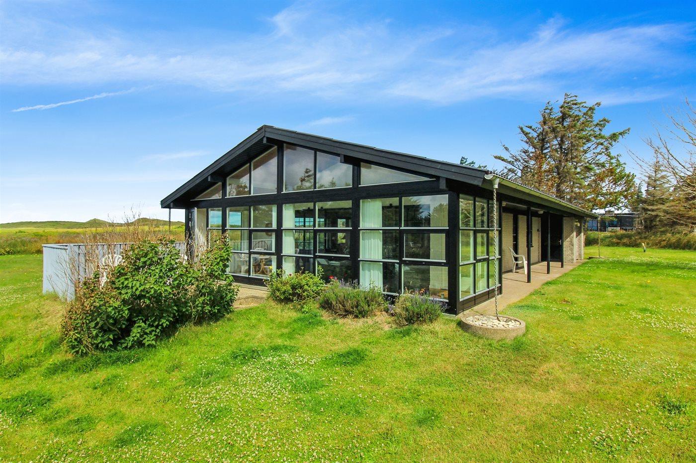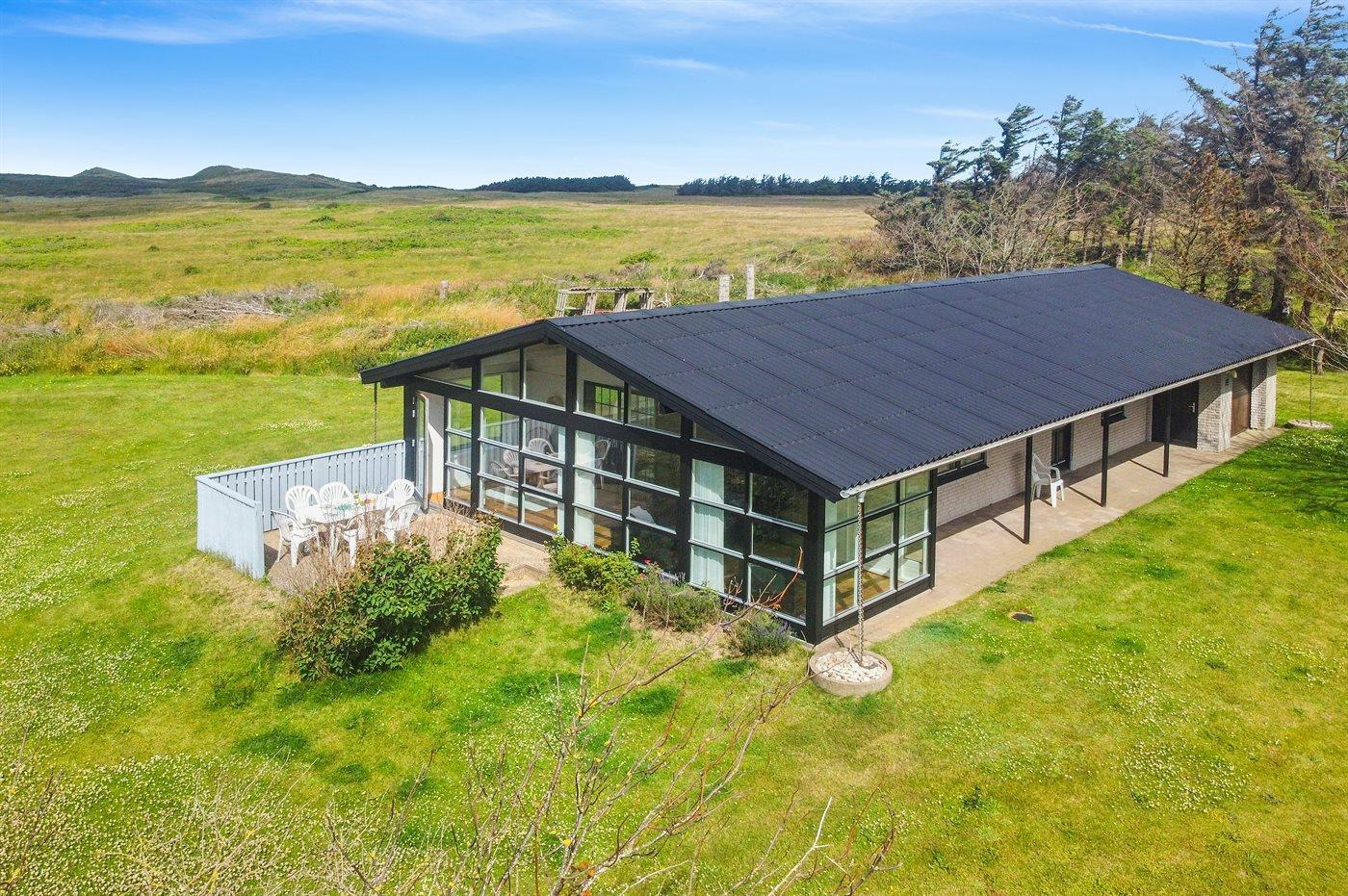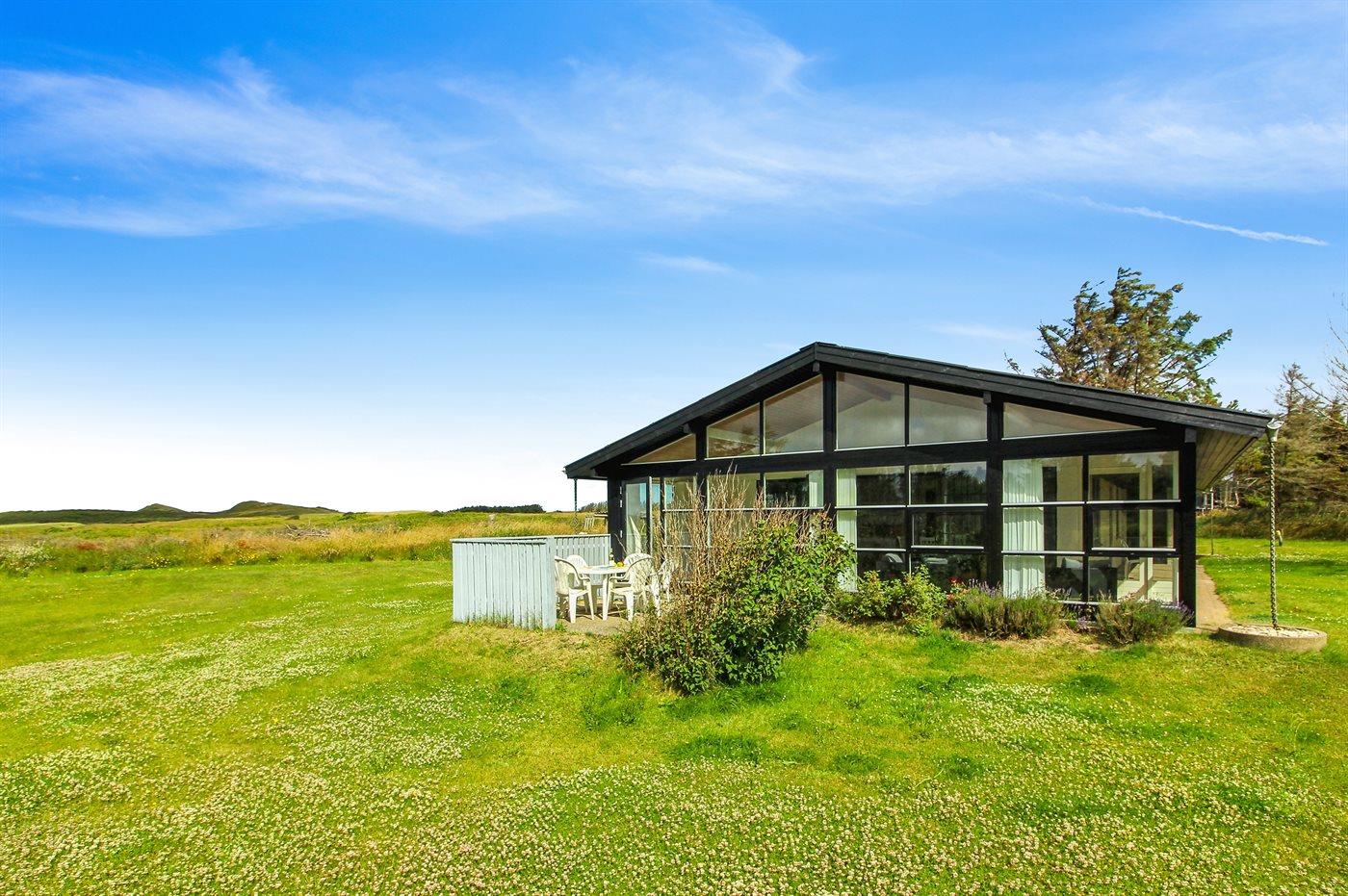 Dieses gemütliche Ferienhaus, mit Meerblick sowohl vom Haus als auch vom Grundstück, liegt zwischen Løkken und Lønstrup. Man findet das Haus am Ende der Straße – hier liegt es ungestört und das Grundstück grenzt an eine großes offenes Gelände an.