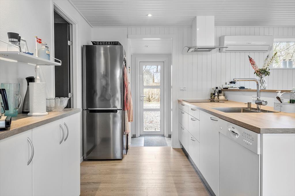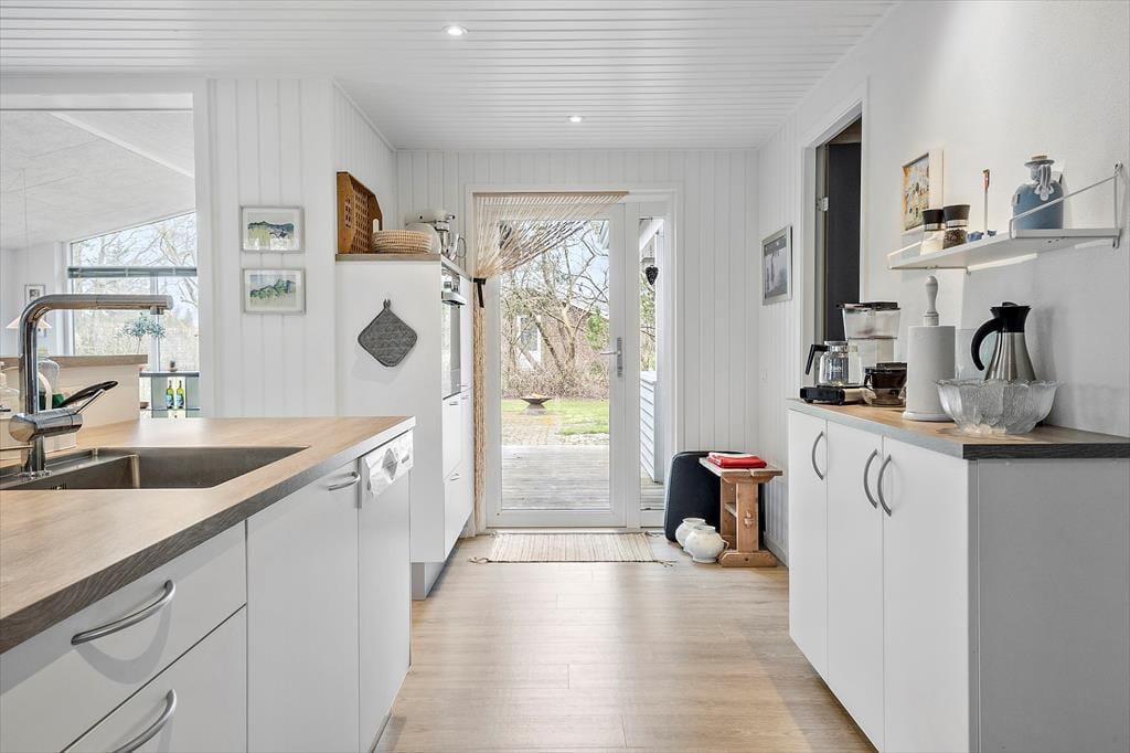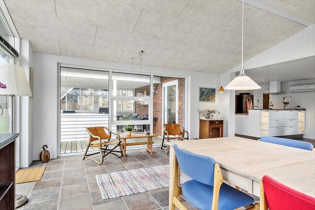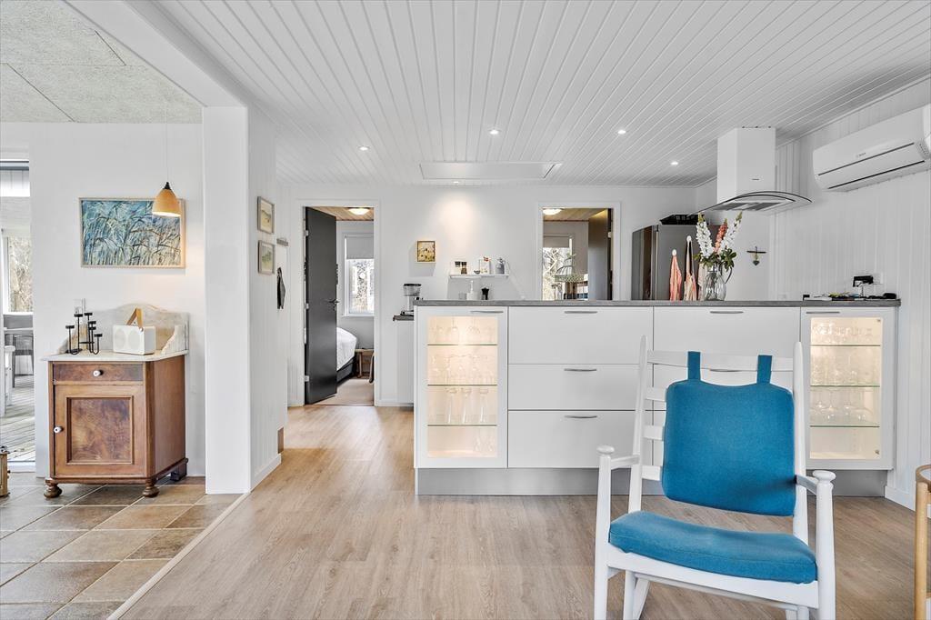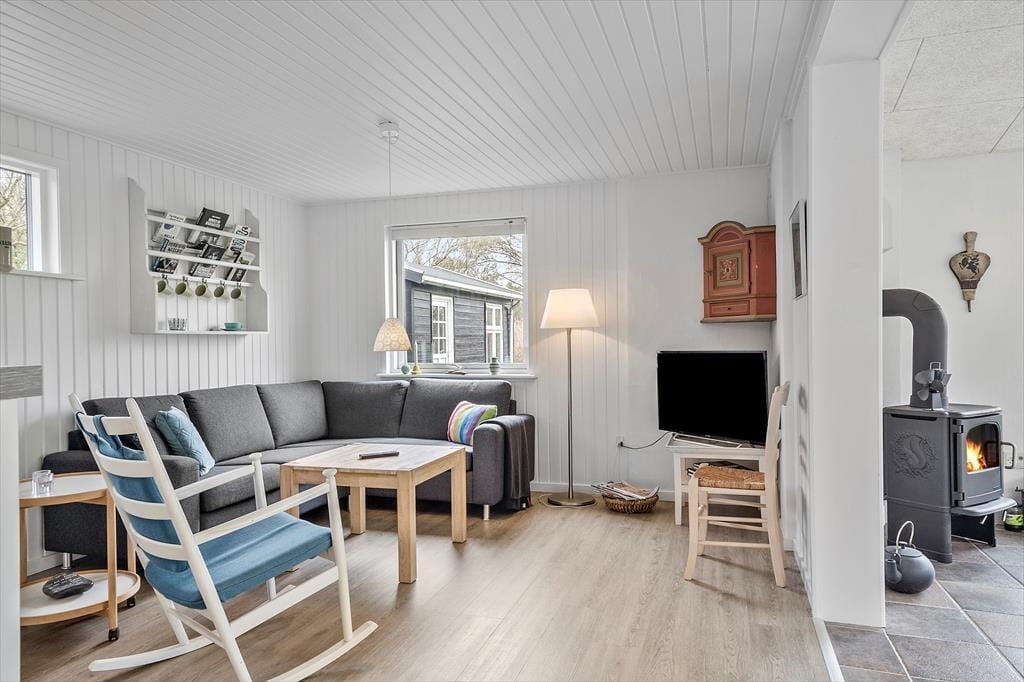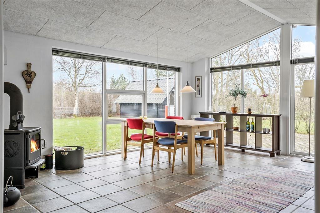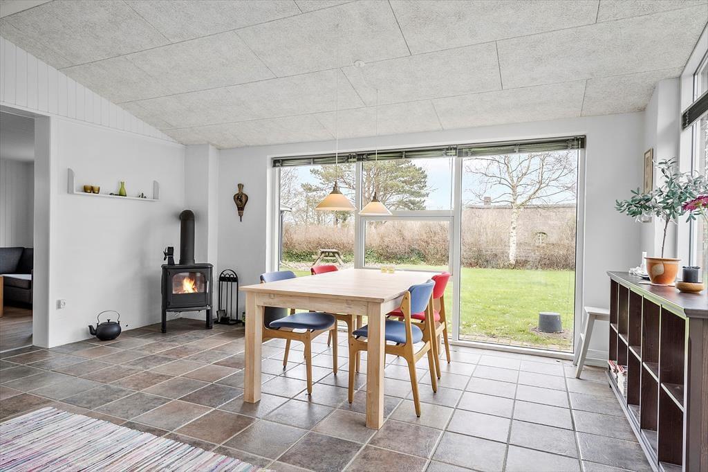 Gemütliches und helles Sommerhaus in Nr. Fjand, ganz nah am Nissum Fjord. Hier erwartet euch ein geräumiges Ferienhaus mit hohen Decken und einer entspannten Ferienhausatmosphäre, in der man schnell zur Ruhe kommt. Die Küche ist offen mit dem Essbereich und dem Wohnzimmer verbunden, sodass ihr unabhängig von euren Aktivitäten beisammen sein könnt – ganz gleich, ob jemand kocht, während andere es sich vor dem Kaminofen gemütlich machen oder am Esstisch ein Brettspiel spielen. Zum Haus gehört außerdem ein Nebengebäude mit zusätzlichen Schlafplätzen – perfekt für Teenager, Großeltern oder alle, die im Urlaub ein wenig mehr Privatsphäre wünschen.