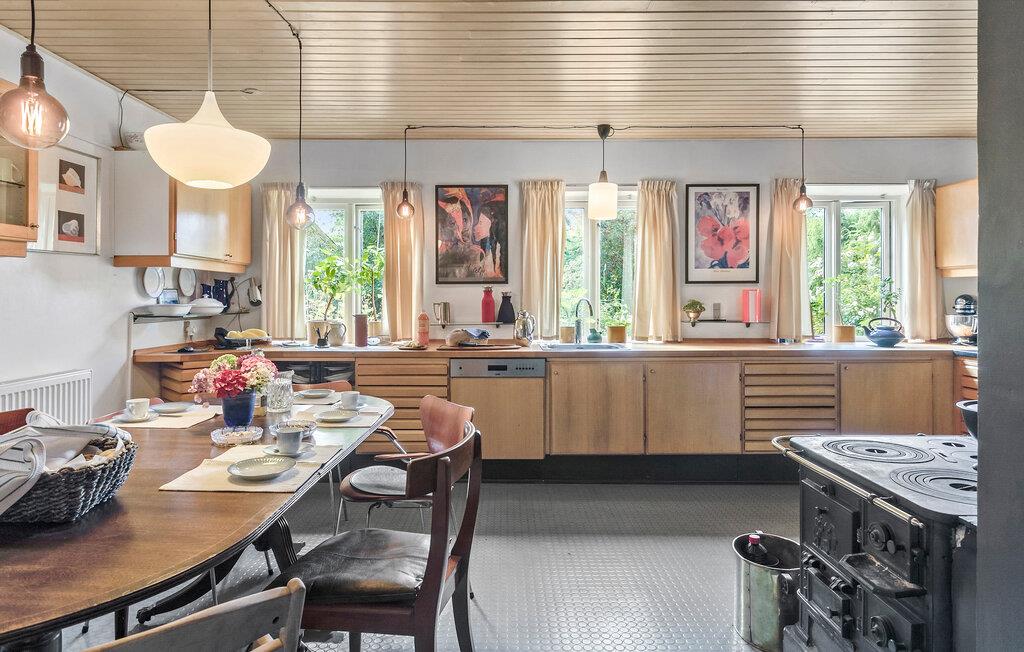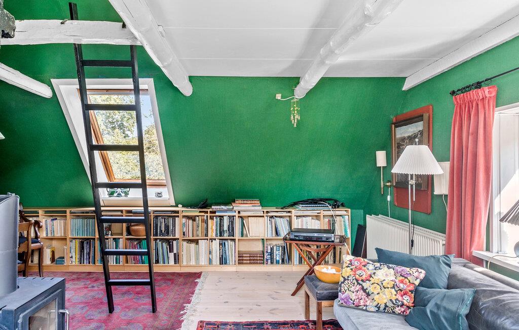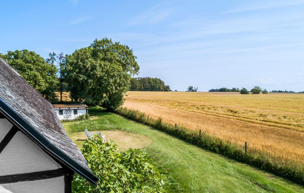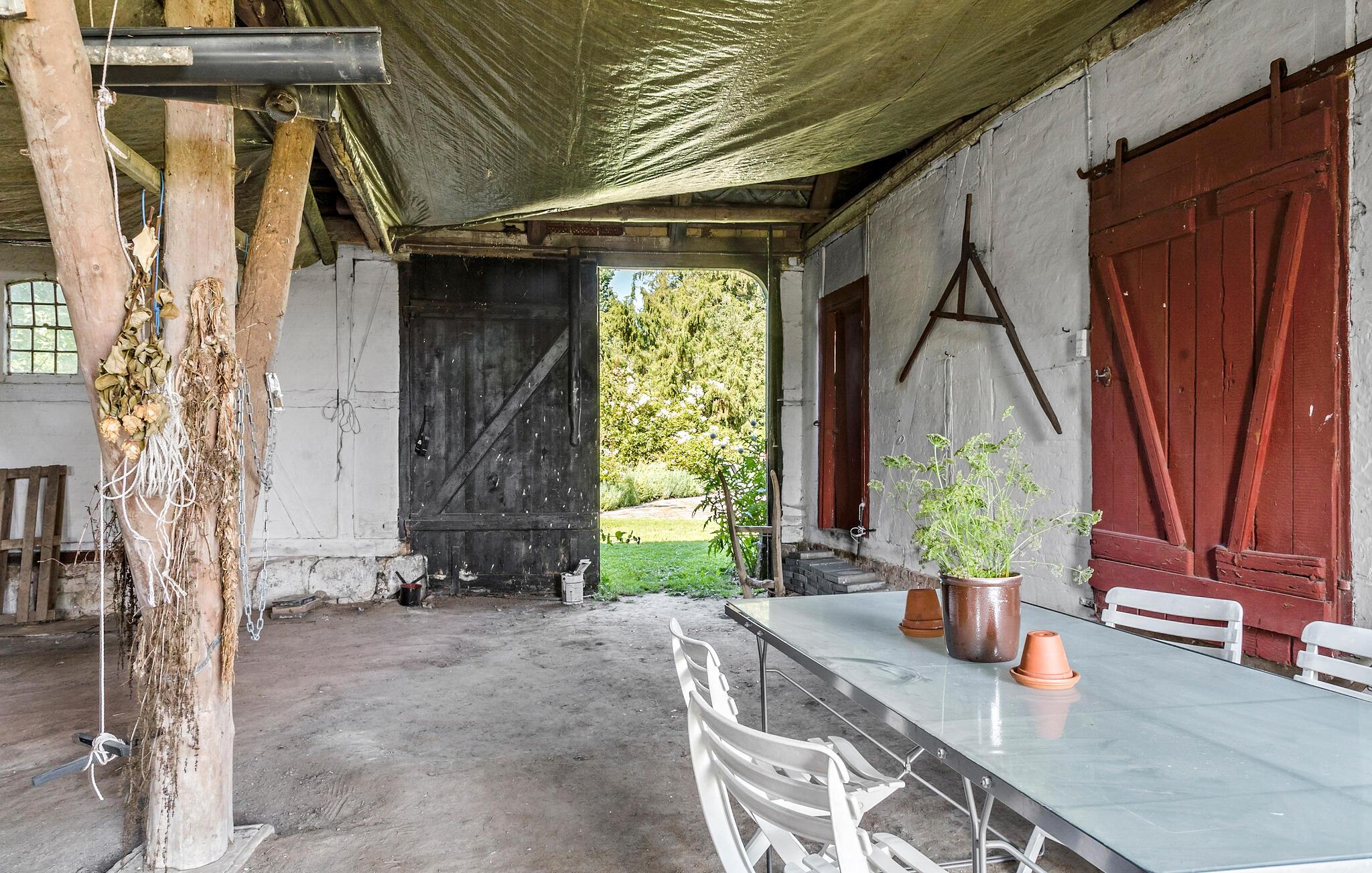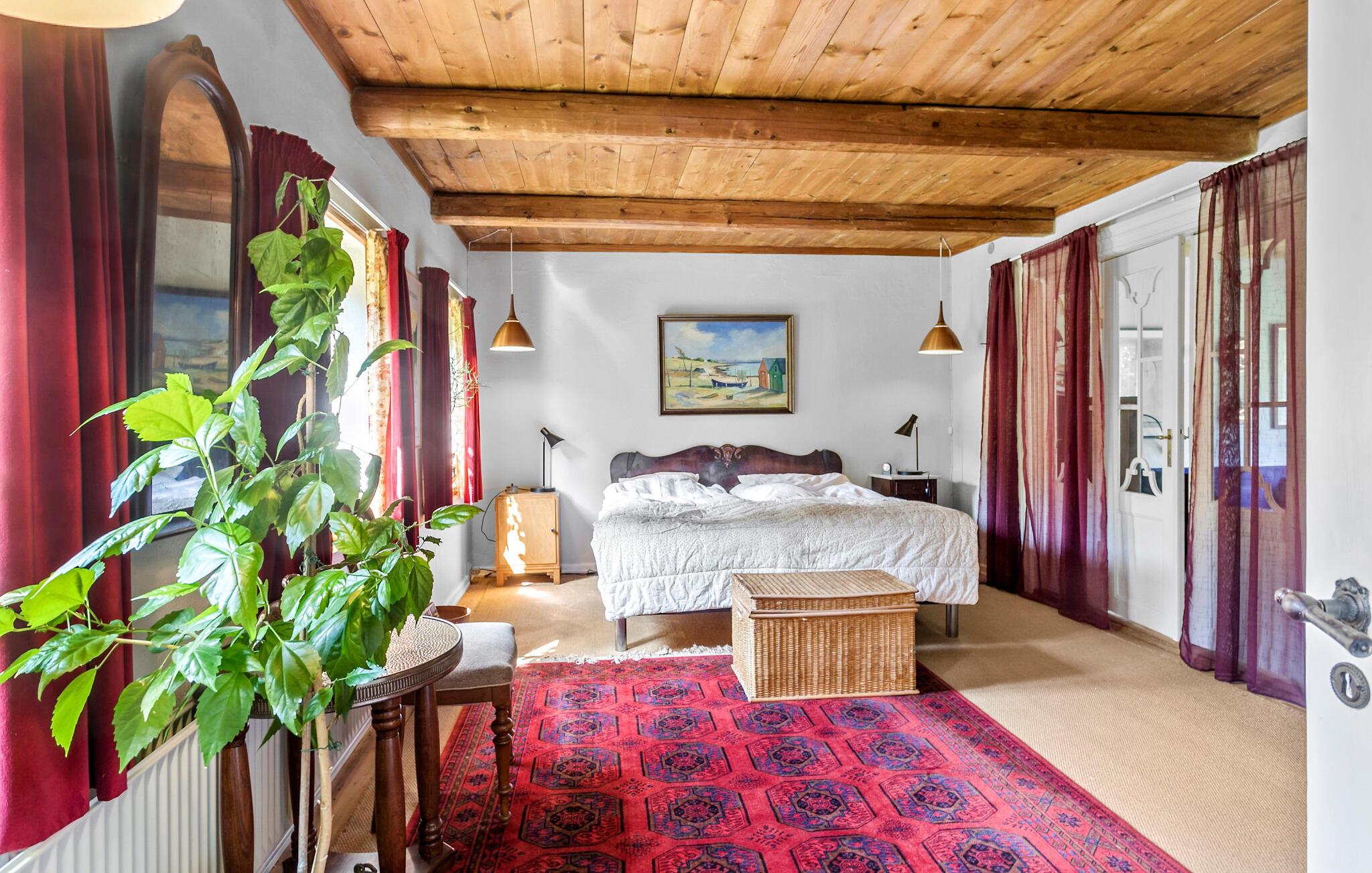Genießen Sie einen idyllischen Urlaub in diesem historischen Bauernhaus in der Nähe des Nybølle Strands auf der malerischen Insel Lolland. Umgeben von blühenden Gärten und weiten Feldern, bietet dieses charmante Anwesen eine einzigartige Atmosphäre, in der sich Ruhe und Naturerlebnis auf eine schöne Weise verbinden. Treten Sie ein in das liebevoll eingerichtete Haus und lassen Sie sich von der Einrichtung mit rustikalen Holzbalken und gemütlichen Möbeln verzaubern. Im großzügigen Wohnzimmer können Sie sich am knisternden Kaminofenfeuer entspannen oder auf dem gemütlichen Sofa ein gutes Buch lesen. Genießen Sie Ihre Mahlzeiten am großen Esstisch, umgeben von Kunstwerken und historischen Elementen, die den Charme dieses Hauses unterstreichen.