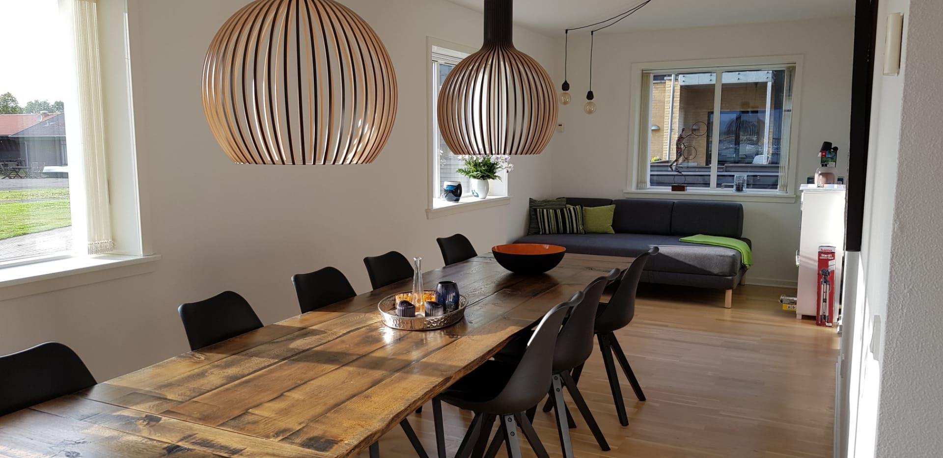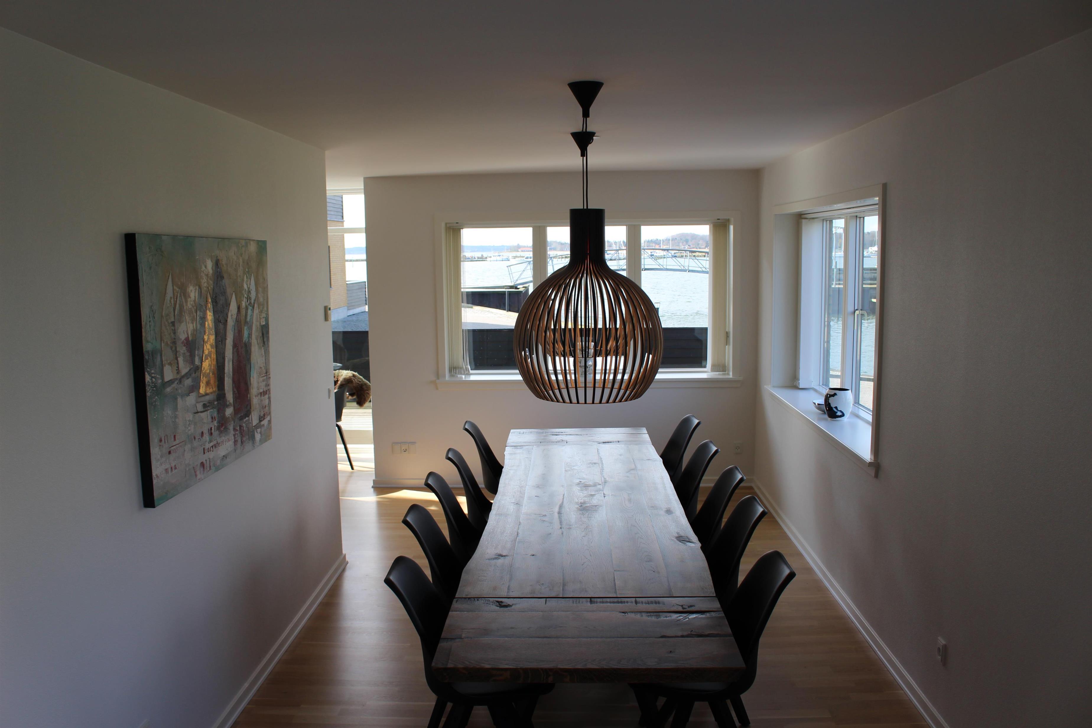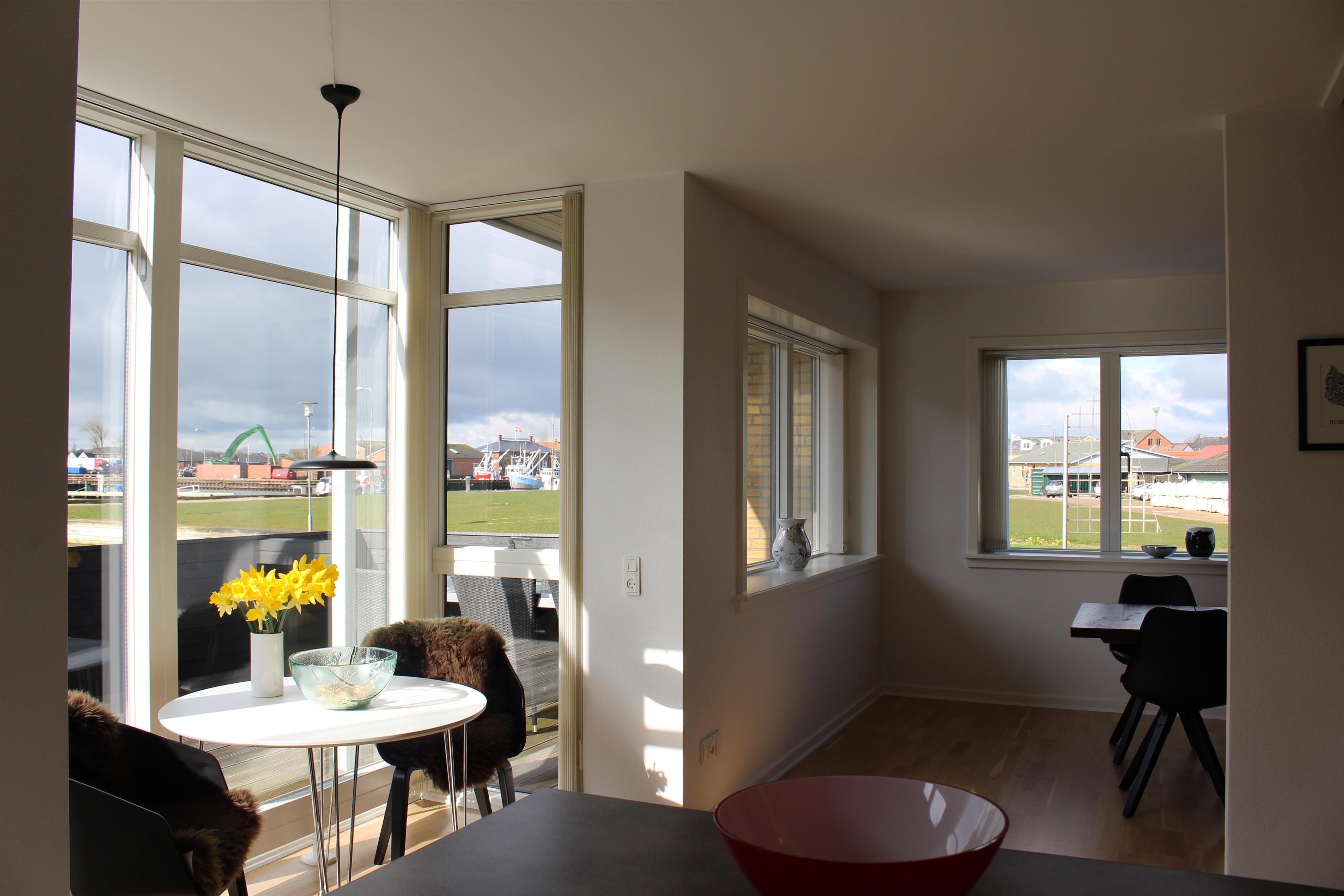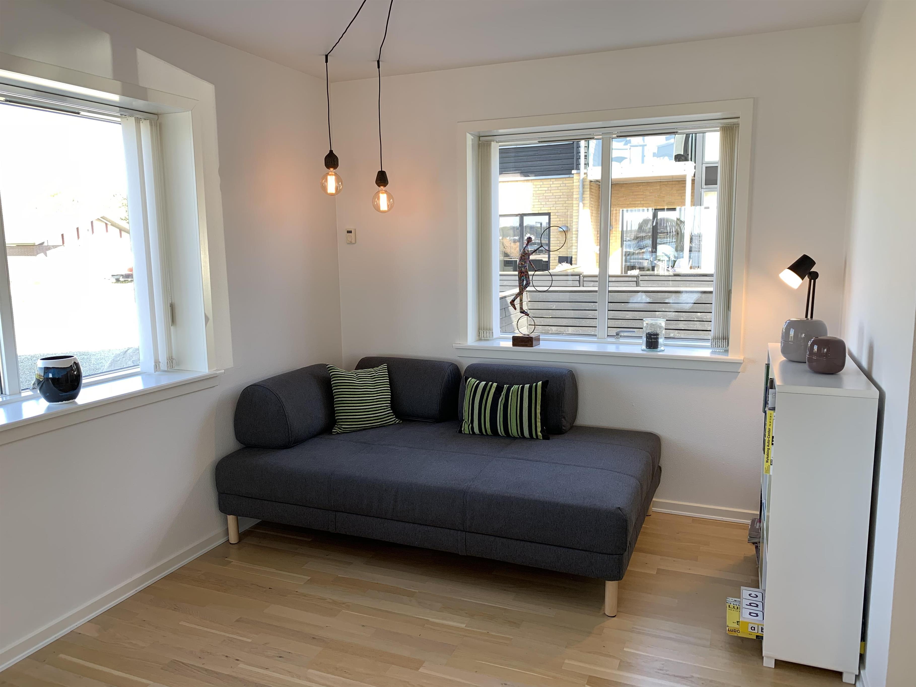 Große, schöne, helle 2-stöckige Wohnung mit schöner Einrichtung, gelegen am Jens-Juhl-Kai am Hafen in Nykøbing M. Es gibt eine unglaublich schöne Aussicht nach allen Seiten, sowohl über den Hafen, die Stadt als auch die Sallingsundbrücke. Es gibt 2 Badezimmer mit Fußbodenheizung und 3 Schlafzimmer, jeweils mit Doppelbetten. 1 Schlafzimmer befindet sich im Erdgeschoss und 2 Zimmer im 1. Stock.