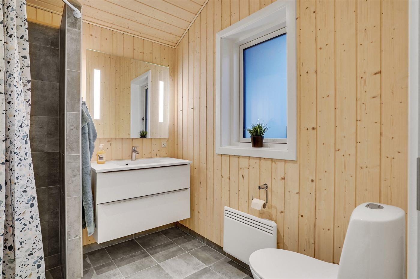 Die schöne Wohnküche ist offen mit dem Wohnzimmer verbunden und durch große Schiebetüren gelangt man auf die nach Süden und Westen ausgerichtete Terrasse, von der ein großer Teil überdacht ist, sodass man sowohl Schatten als auch Schutz vor dem Wind an kühleren Tagen und Abenden finden kann. Es gibt auch einen gemütlichen Gartenpavillon. Es gibt 3 gute Schlafzimmer, jedes mit 2 Schlafplätzen, sowie 2 Badezimmer, beide mit Duschniche und Fußbodenheizung. Eine Waschmaschine ist ebenfalls vorhanden.