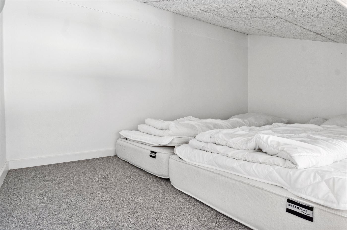 Die Schlafplätze verteilen sich auf 4 Schlafräume. 4 Schlafplätze in Doppelbetten. 2 Schlafplätze in Einzelbetten. 2 Schlafplätze in einem Etagenbett. 2 Schlafplätze auf Matratzen. 2 von diesen Schlafplätzen befinden sich im offenen Obergeschoss. Ferner steht ein Kinderbett zur Verfügung.