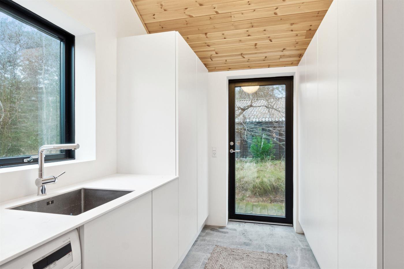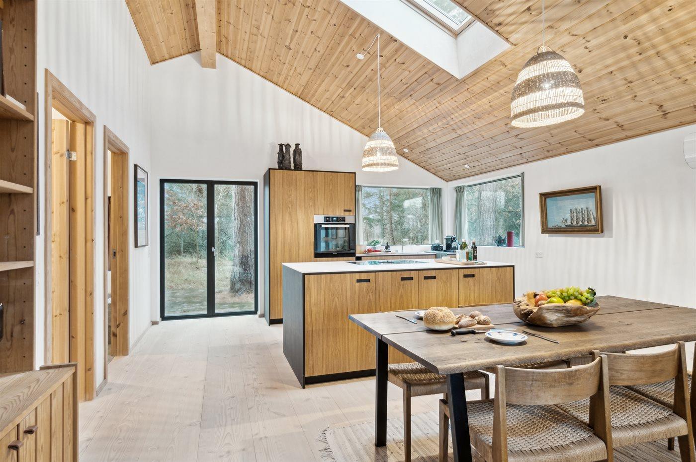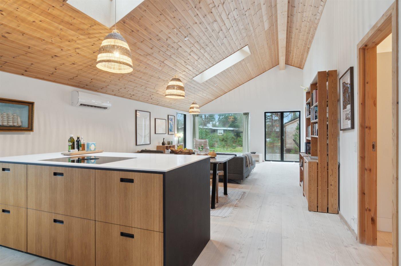 Genieße die luxuriöse Umgebung in diesem Ferienhaus, das 2023 erbaut wurde. Das Haus besteht aus hochwertigen Materialien, darunter massive Holzböden, eine Schreinerküche, Corian-Arbeitsplatten und Armaturen von Vola. Es ist hell und geräumig mit offenen Decken in allen Räumen und einer modernen, sommerlichen Einrichtung. Nur 200 Meter trennen dich vom Strand an der Sejerø-Bucht, wo es einen Badesteg gibt. Das Haus steht auf einem gemütlichen Naturgrundstück mit hohen Kiefern, die eine mediterrane Atmosphäre schaffen.