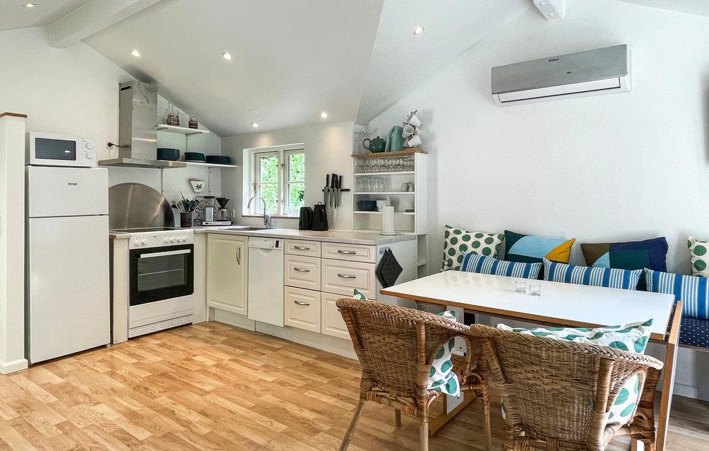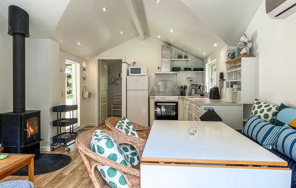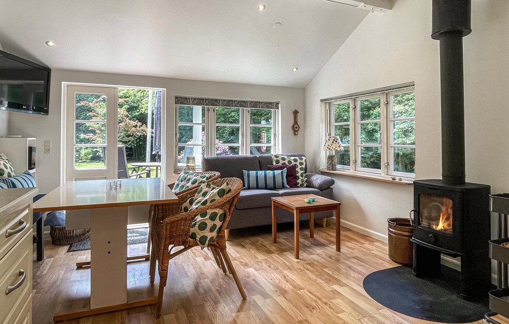 Willkommen in diesem malerischen Ferienhaus, um dessen Grundstück sich das Flüsschen Blykobbe Å windet. Es erwarten Sie Wildtiere, eine große Spielwiese und eine Lagerfeuerstelle. Hier finden Sie mehrere gemütliche Ecken, wo Gartenmöbel zum Entspannen und Sonne tanken einladen. Das Ferienhaus besteht aus einem Wohnzimmer mit u. A. TV und Lautsprecher, einer offene, reich ausgestatteten Küche mit Essbereich, einer Toilette, einem Schlafzimmer mit Doppelbett und einem weiteren mit Etagenbett. Vom Wohnzimmer aus gelangt man auf eine Terrasse mit Gasgrill, wo Sie die Seele baumeln lassen und leckere Grillgerichte zubereiten können. Das Haus hat einen modernen, neuen Anbau mit Schlafzimmer mit Doppelbett, Wärmepumpe und einem Badezimmer mit Fußbodenheizung, Waschmaschine und Trockner. Im Haus gibt es kostenloses WLAN. Gehen Sie an den Strand und genießen Sie Badespaß, Sonnenschein und -untergänge.