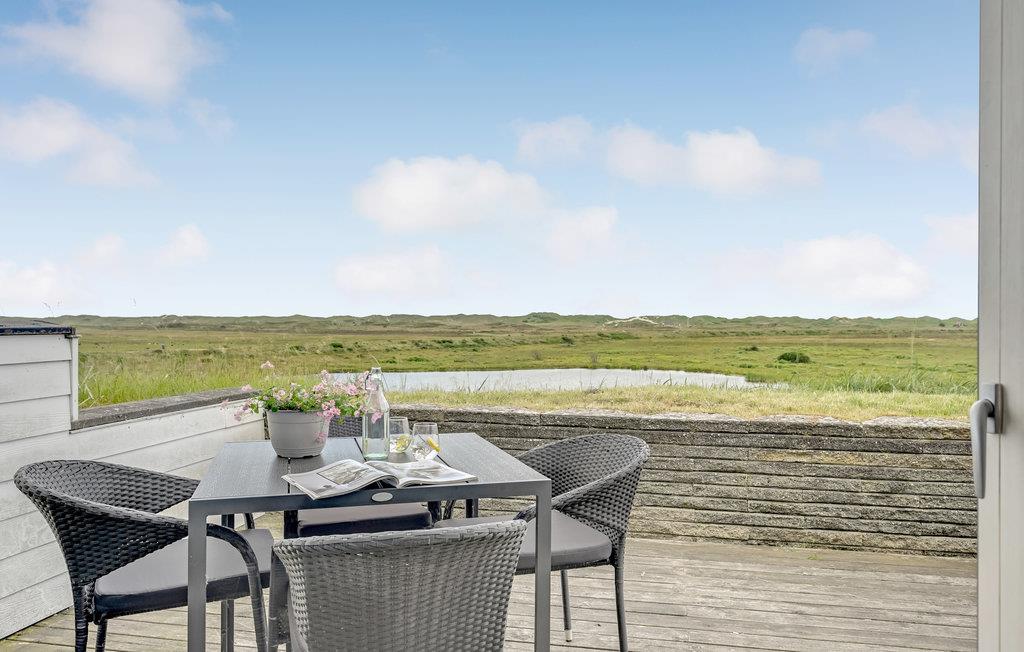 Diese gemütliche Ferienwohnung in Nymindegab bietet Panoramablick auf den Ringkøbing Fjord und nahegelegene Natur.