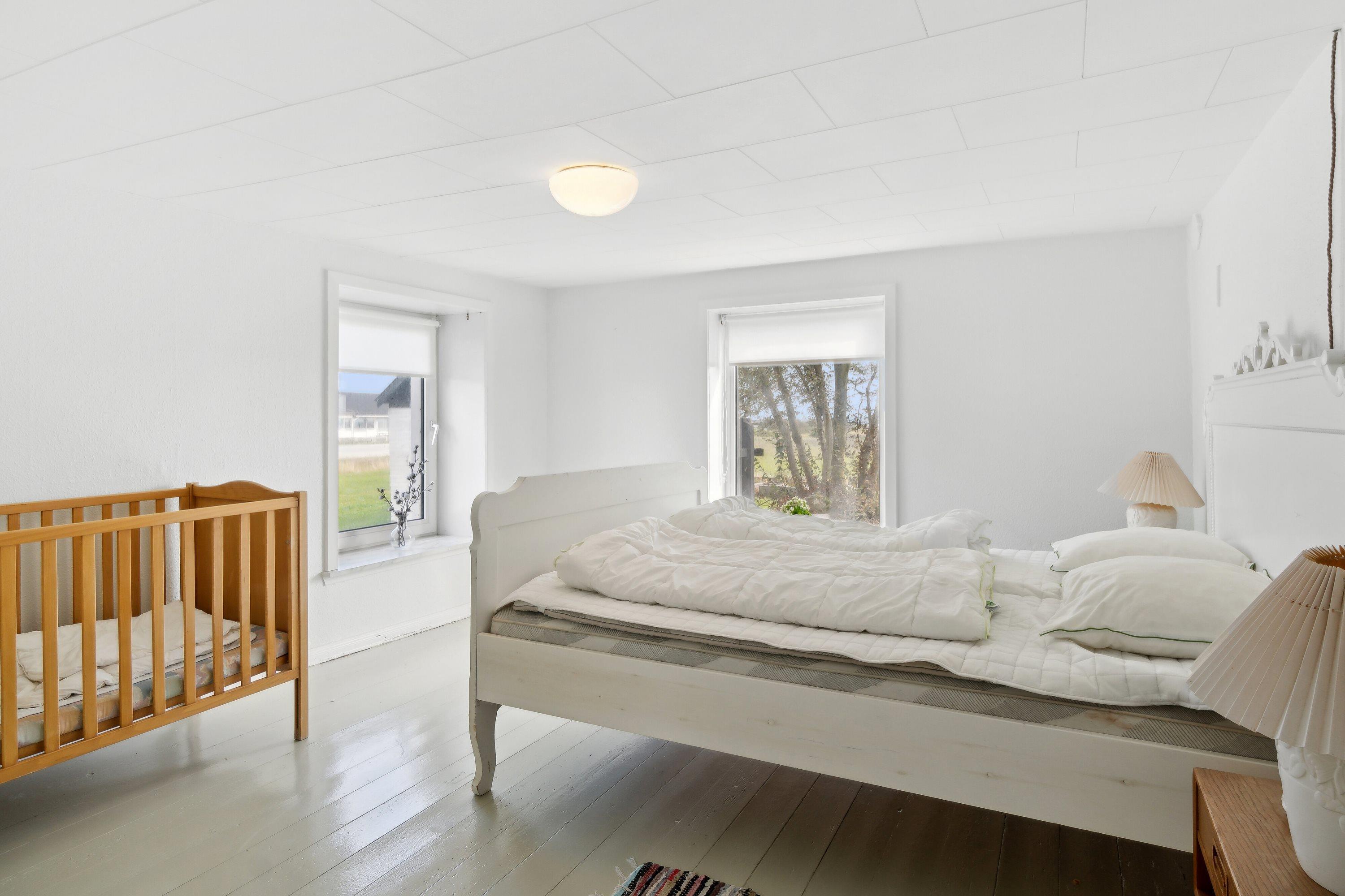 Im Haus finden Sie sechs komfortable Schlafzimmer, darunter drei mit Doppelbetten, eines mit Etagenbett, eines mit zwei Einzelbetten sowie ein Familienzimmer mit zwei Doppelbetten und vier Etagenbetten – so ist für jeden Platz gesorgt. Zwei Badezimmer, beide mit Toilette, Dusche und Fußbodenheizung ausgestattet, sorgen dafür, dass jeder den nötigen Platz und Komfort hat. Das Haus ist außerdem mit einer Wärmepumpe und einem Holzofen ausgestattet, damit Sie es zu jeder Jahreszeit warm haben.