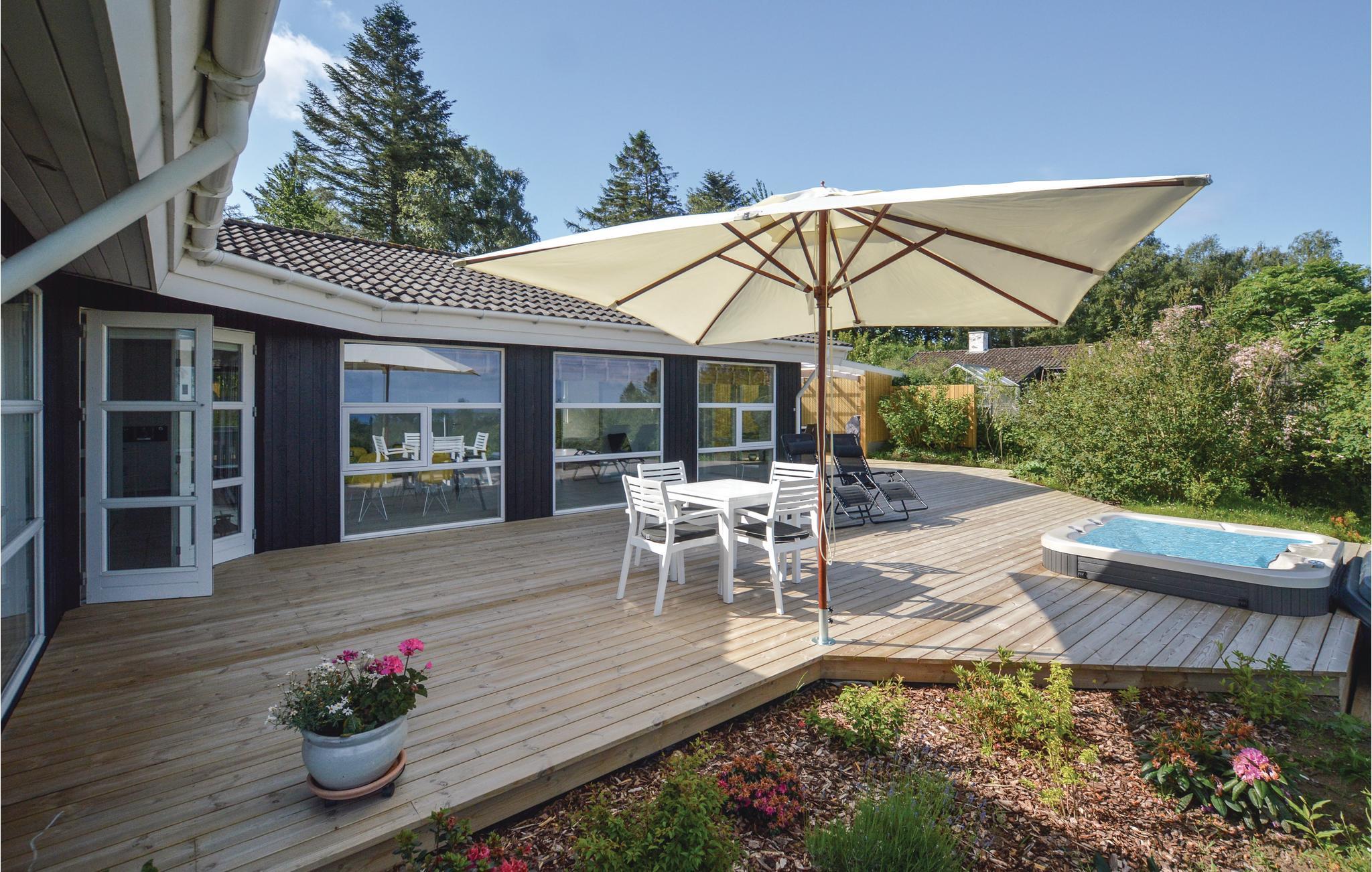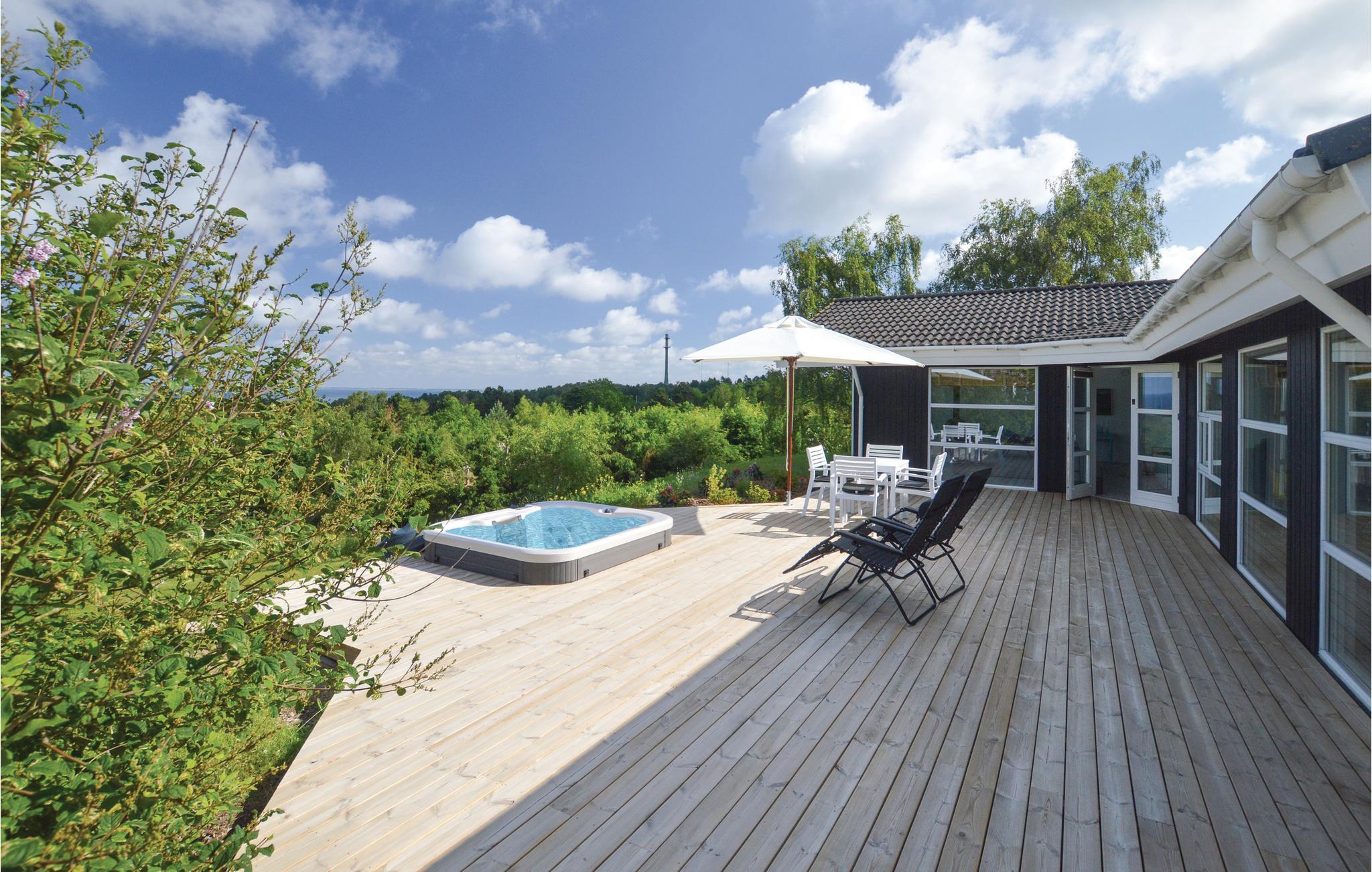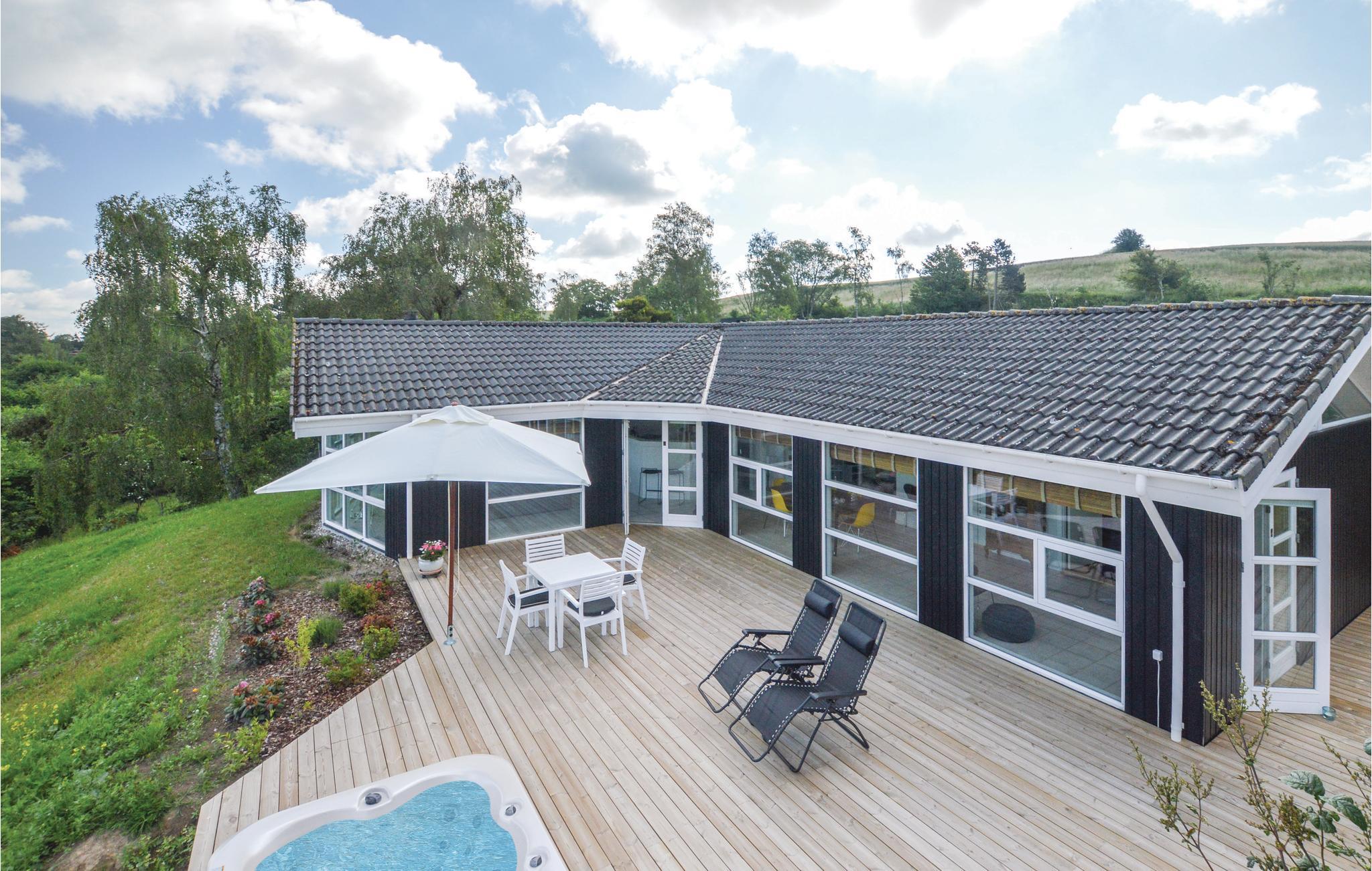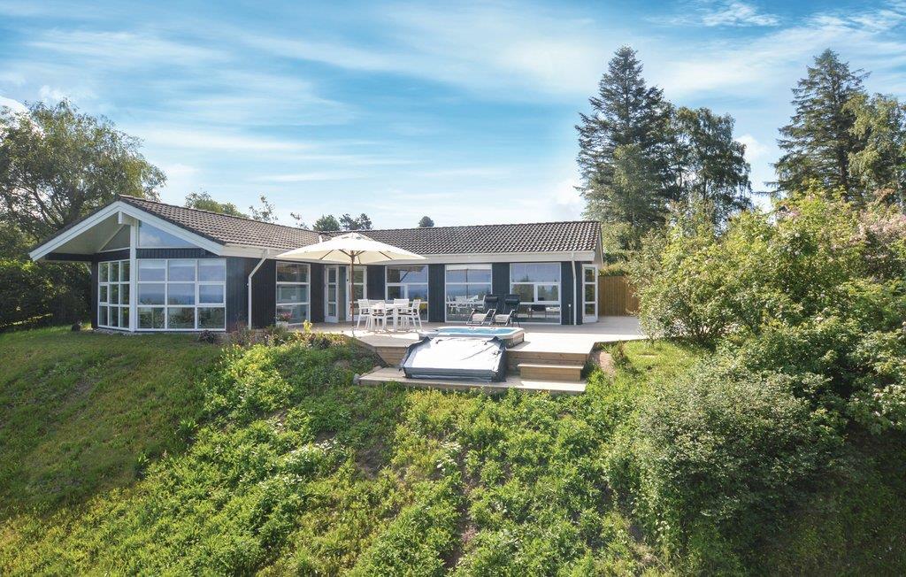 Modernes Ferienhaus in Dänemark mit Panoramablick, Whirlpool und hochwertiger Ausstattung für entspannte Urlaubstage.
