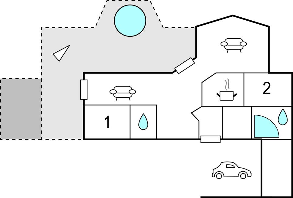 Das Haus hat eine schöne Küche, zwei Badezimmer mit Dusche und in einem mit einem 2-Personen Whirlpool. Es gbit zwei schöne Schlafzimmer und weitere Schlafgelegenheit im Wohnzimmer.
