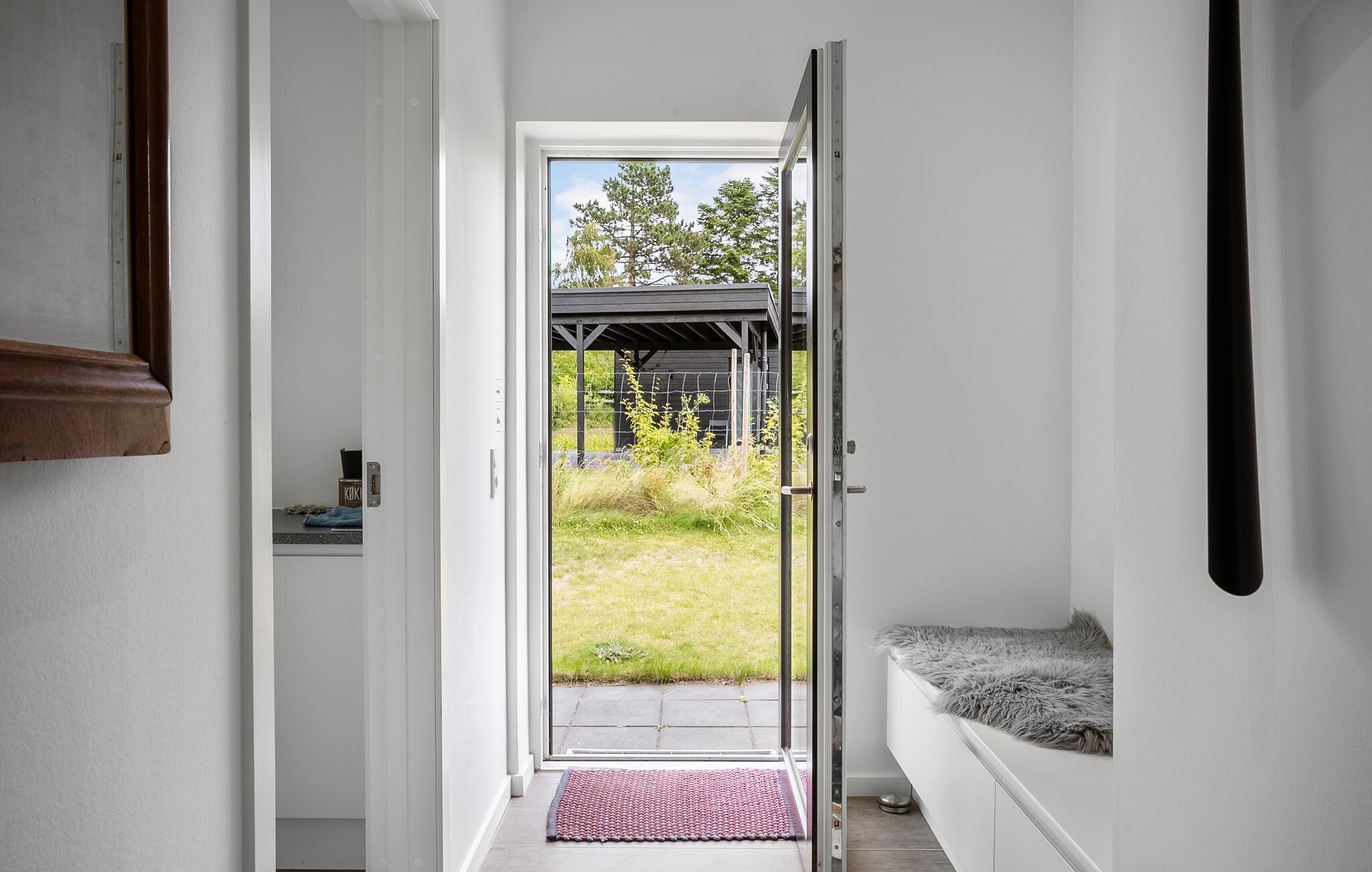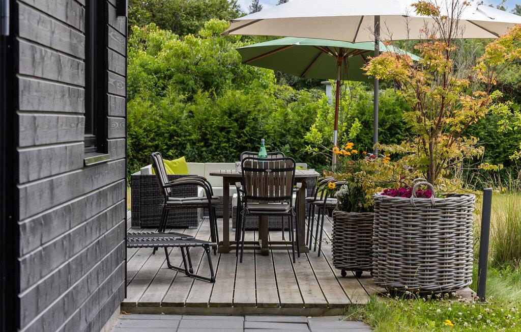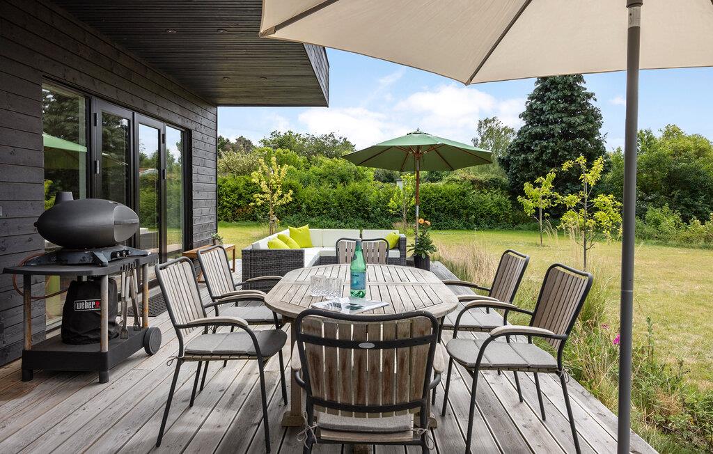 Genießen Sie ein modernes Ferienhaus mit Meerblick, Terrasse und komfortabler Ausstattung in Ordrup Strand, Dänemark.