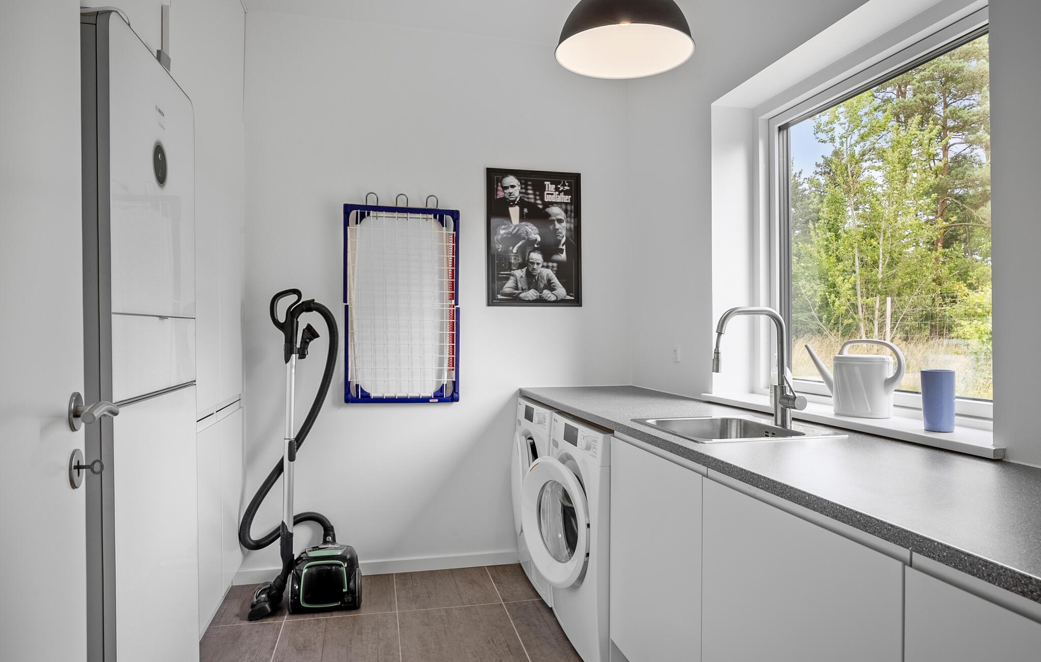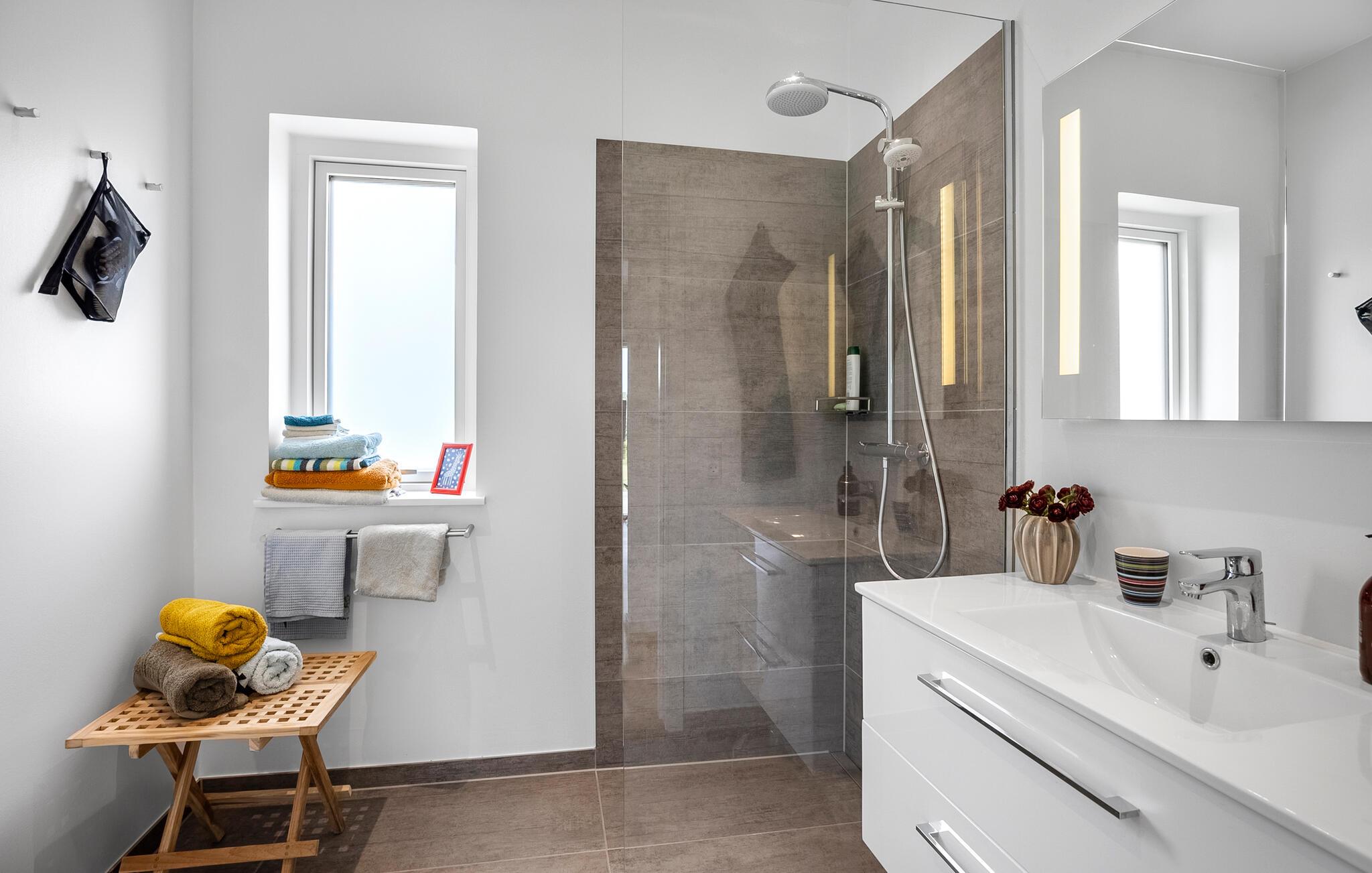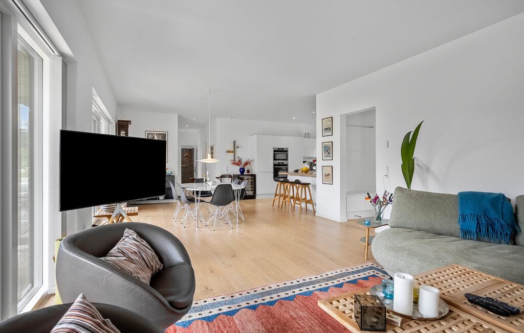 In diesem stilvollen Haus schaffen bodentiefe Fenster, elegante Möbel und freundliche Farbtupfer eine gemütliche Atmosphäre, in der Sie schnell vom Alltag abschalten und neue Energie tanken können. Entspannen Sie sich auf dem bequemen Sofa bei einem Filmabend, zaubern Sie gemeinsam in der modernen Küche eine leckere Mahlzeit und lassen Sie den Abend in fröhlicher Runde bei Brett- oder Kartenspielen ausklingen.