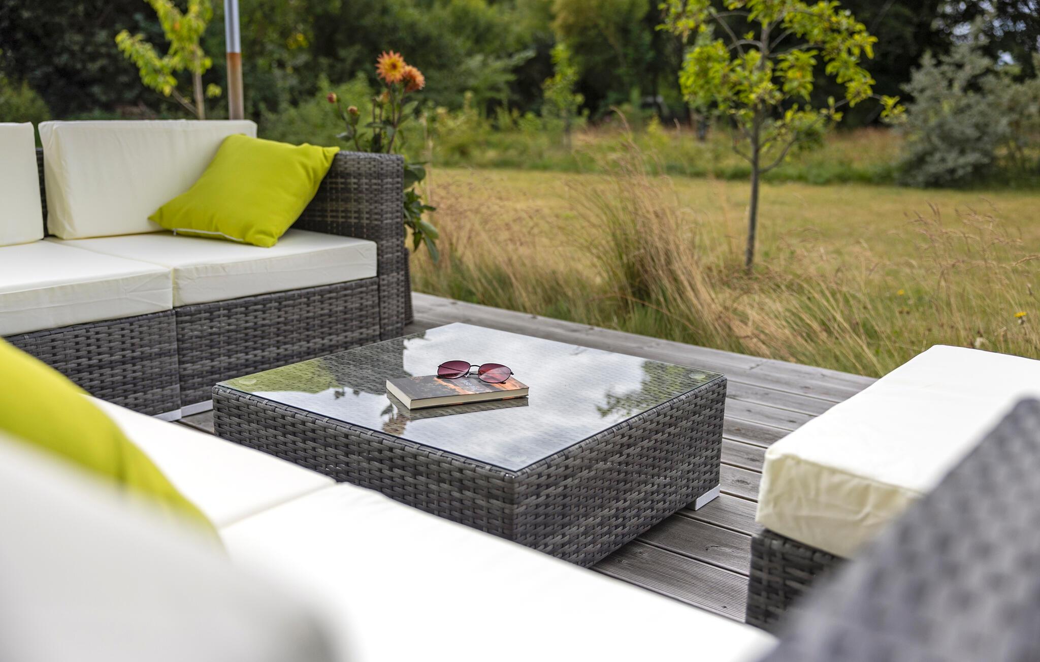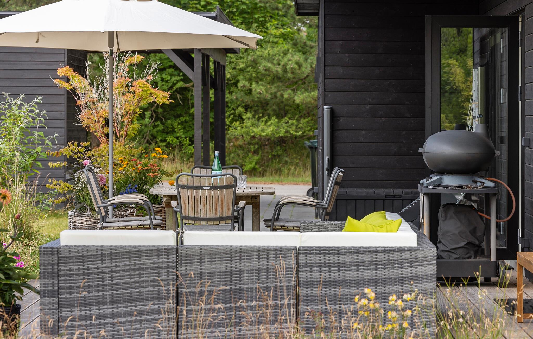 Morgens lädt die Terrasse zu einer ersten Tasse duftenden Kaffees und einem ausgiebigen Frühstück ein. Entspannen Sie sich hier bei guten Gesprächen oder vertiefen Sie sich in Ihre Urlaubslektüre. Entfachen Sie abends den Grill und bereiten Sie saftige Grillgerichte zu, während Sie die Stille der Umgebung genießen.