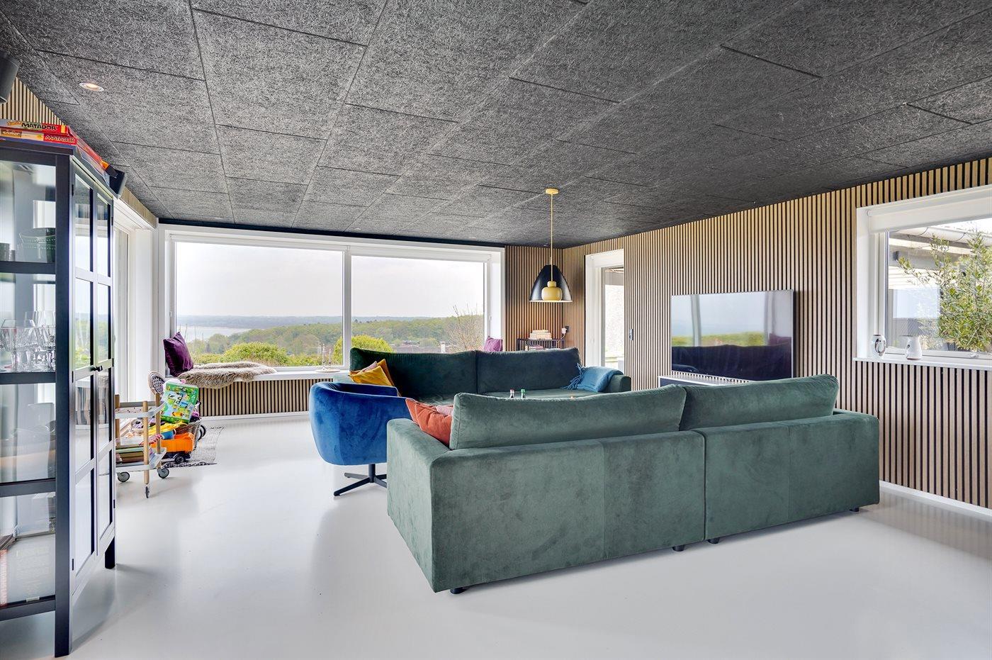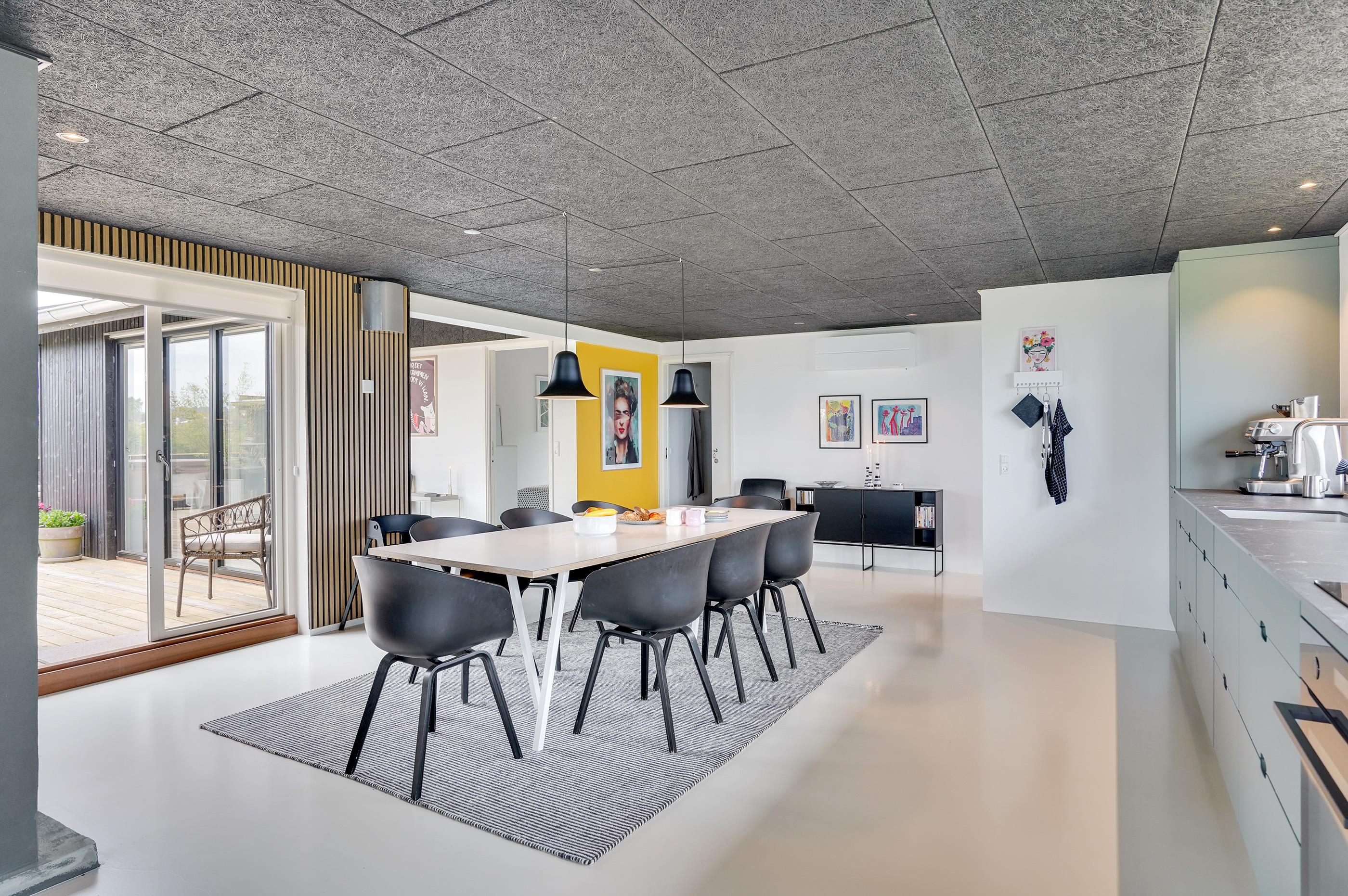 Komplett renoviertes, hochwertiges Ferienhaus mit bezaubernder Aussicht von großen Teilen des Hauses und von den Terrassen aus. Von der großen offenen Wohnküche, vom Wohnzimmer und von den schönen Terrassen können Sie den Panoramablick auf die Sejerø-Bucht bis nach Sjællands Odde, auf den Strand und die Ferienhäuser in Hønsinge Lyng genießen.
