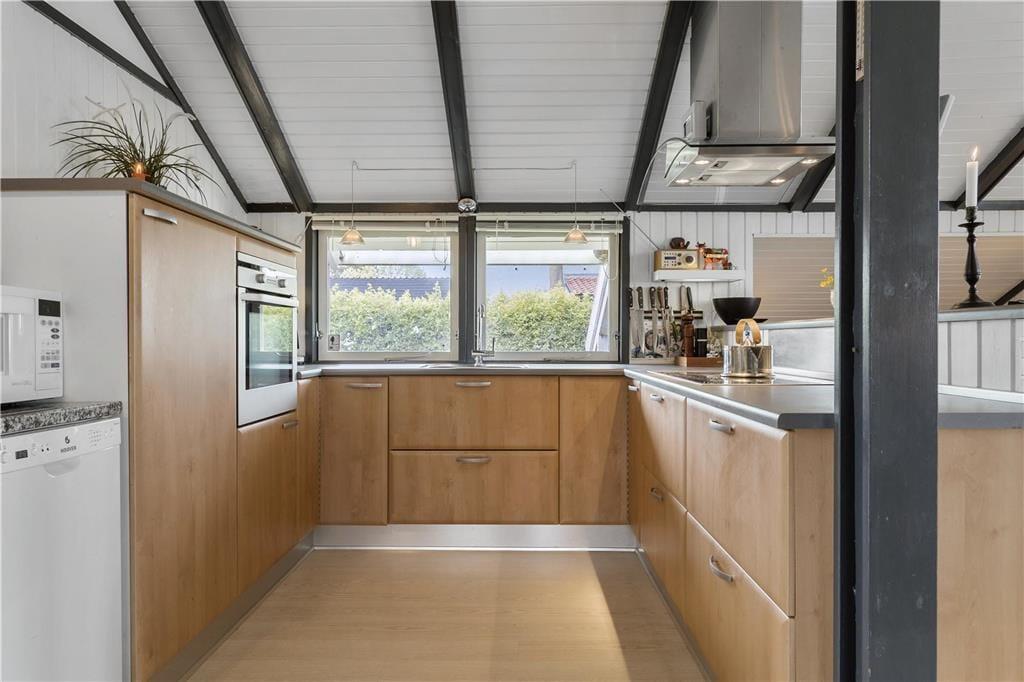 Tritt ein in ein helles und einladendes Ferienhaus, in dem sich sofort die Urlaubsstimmung einstellt. Der Wohnbereich ist das Herz des Hauses – ein schöner Treffpunkt, an dem Küche und Wohnzimmer miteinander verschmelzen, sodass du die Gesellschaft der anderen genießen kannst, während das Essen köchelt oder das Brettspiel in vollem Gange ist. Doch es ist der Wintergarten, der wirklich die perfekte Atmosphäre für Entspannung schafft. Hier kannst du dich von der Sonne hinter den großen Fenstern wärmen lassen, während du den ruhigen Morgen mit einer Tasse Kaffee genießt und das Meer als Kulisse hast.
