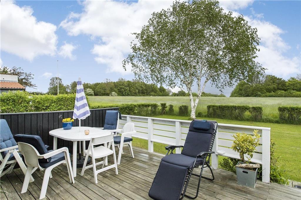 Das Ferienhaus verfügt über eine wunderschöne überdachte Terrasse, auf der du an heißen Tagen Schatten suchen oder die Abende mit einem guten Essen unter freiem Himmel verlängern kannst. Von hier kannst du die frische Meeresbrise spüren und den Klängen der Natur lauschen, während der Tag zu Ende geht. Der Garten lädt zum Entspannen und Spielen ein, und mit dem Strand direkt vor der Tür ist es einfach, ein erfrischendes Bad zu nehmen oder einfach den Blick auf das Meer zu genießen, das sich im Laufe des Tages immer wieder verändert.