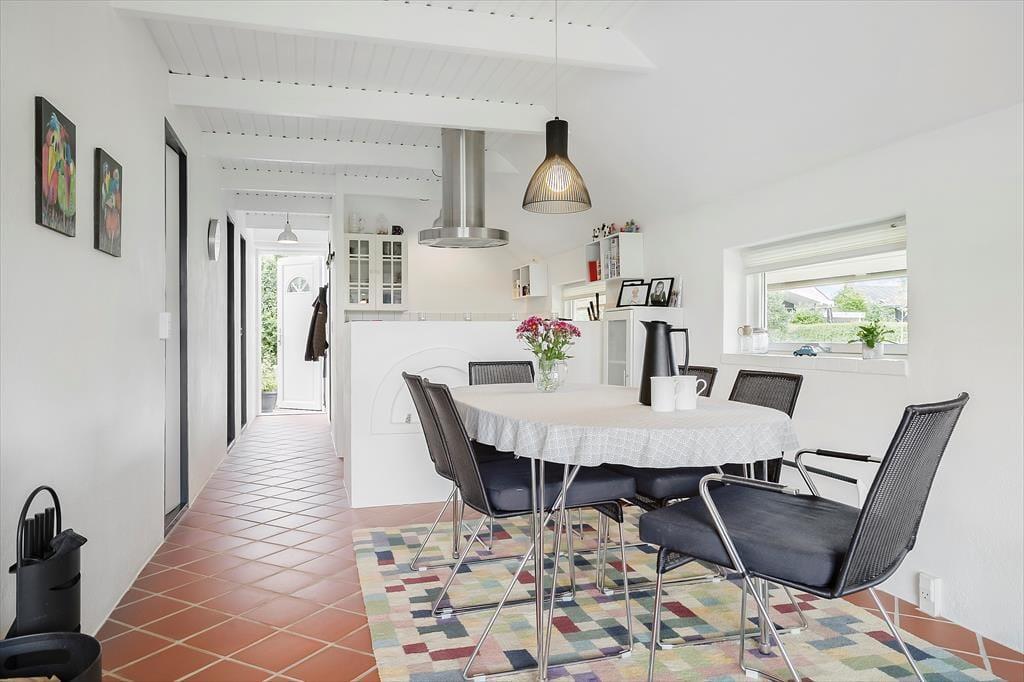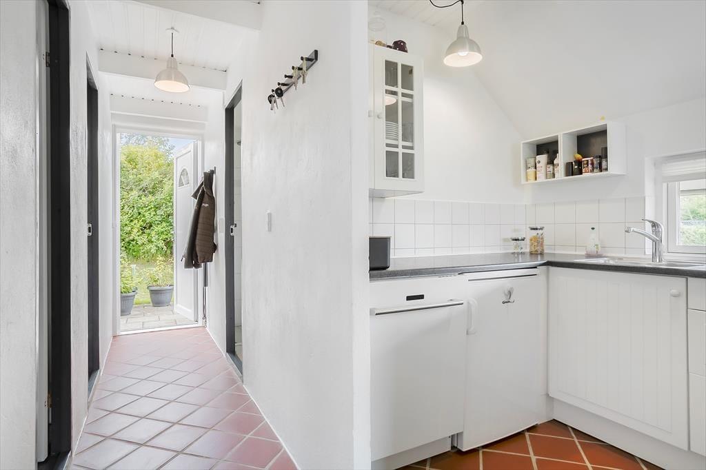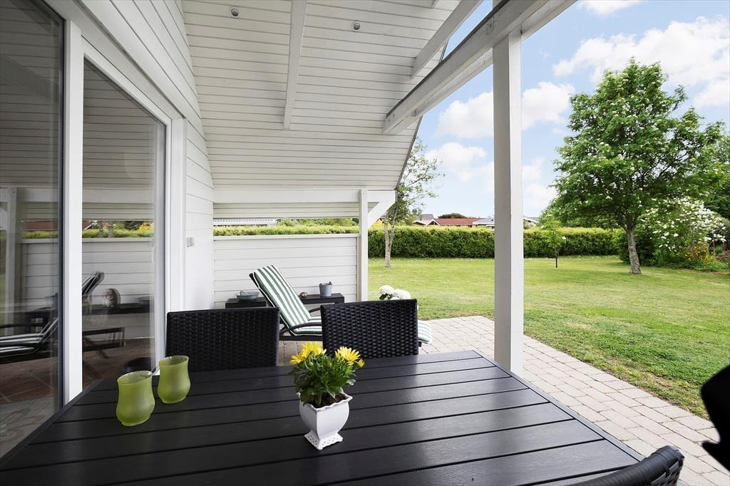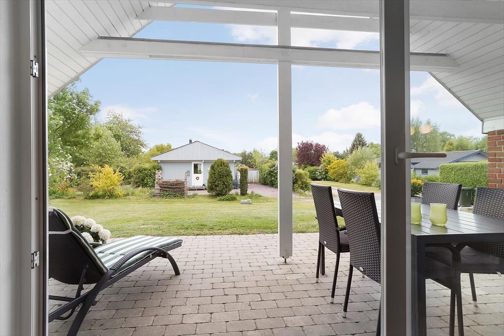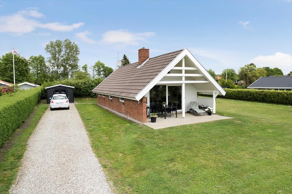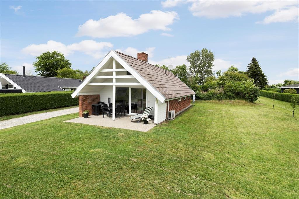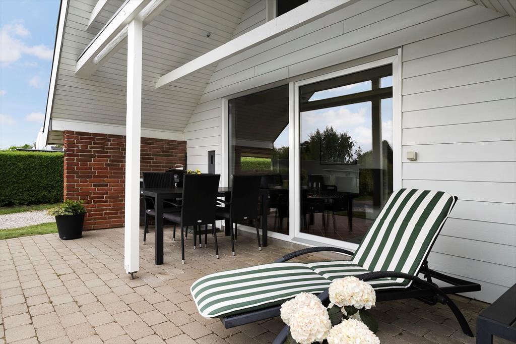 Der Außenbereich besticht durch eine teilweise überdachte Terrasse mit Gartenmöbeln, Liegestühlen und einem Grill, ideal für entspannte Stunden im Freien. Der eingewachsene Garten bietet Privatsphäre und Platz zum Spielen für Kinder. Die Lage ermöglicht zahlreiche Spaziergänge entlang der Küste und Ausflüge in nahegelegene Orte wie Juelsminde und Horsens.