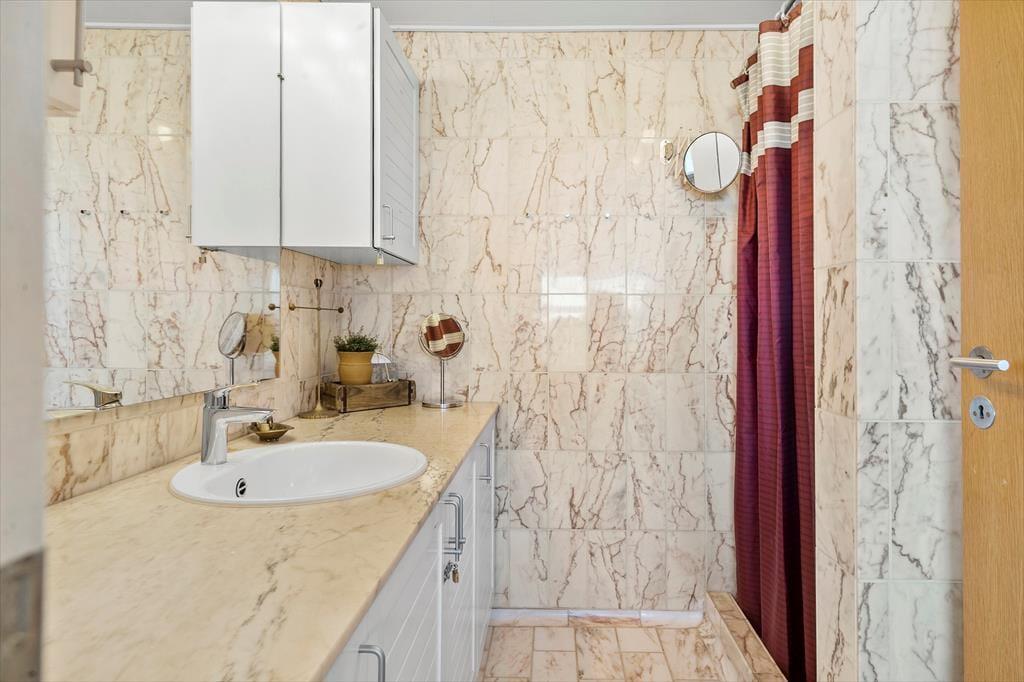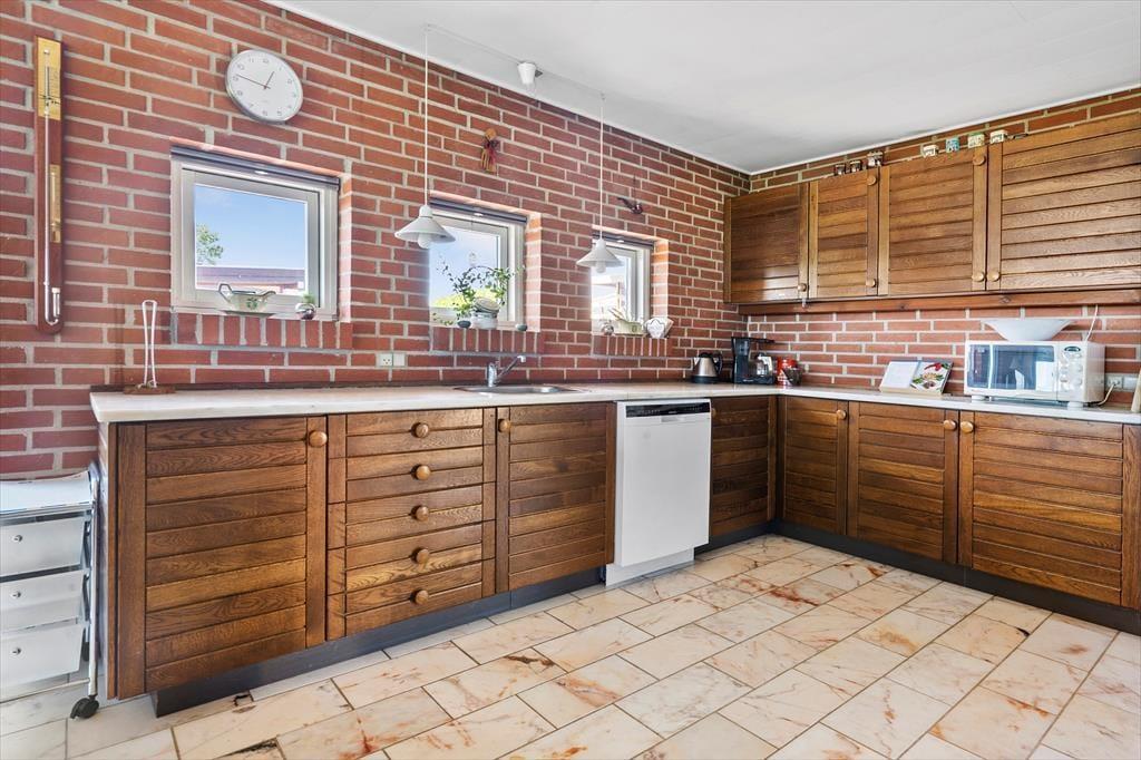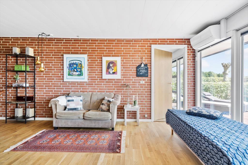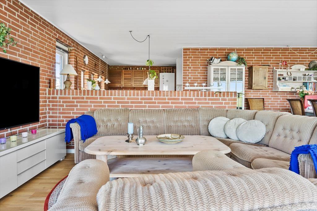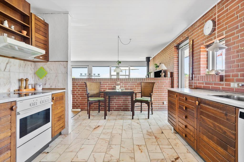 Das sehr gepflegte Ferienhaus aus dem Jahr 1987 wurde im Jahr 2017 einer Renovierung unterzogen. Die roten Steinwände im Inneren wurden bewahrt und sorgen daher auch heute für eine authentische, gemütliche Stimmung. Das Herzstück dieses Mietobjektes bildet der große Wohnraum, der mit seiner Polstersitzgruppe zu gemütlichen Stunden im Familienkreis einlädt. Der Wohnraum ist offen mit dem Essplatz und der Küche verbunden. Die geräumige Küche bietet gute Möglichkeiten für das gemeinsame Zubereiten der Mahlzeiten. Für Unterhaltung sorgt ein Fernseher, der über ein TV-Paket mit dänischen, deutschen, norwegischen und schwedischen Sendern sowie über Apple-TV verfügt. Sie haben die Möglichkeit, Ihre privaten Streamingdienste über Ihr eigenes Mobilgerät auf den Fernseher zu streamen. Kostenloses WiFi ist vorhanden.