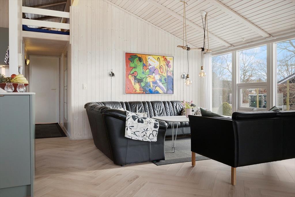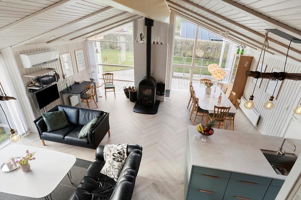Sobald ihr das Ferienhaus betretet, spürt ihr sofort die gemütliche Atmosphäre und das Gefühl, dass hier genug Platz ist, um gemeinsam den Urlaub zu genießen. Die großen Fenster lassen viel Licht herein und schaffen eine Verbindung zwischen den Innenräumen und dem Garten. Die hellen Holzwände verleihen dem Haus eine wunderbare Sommerhaus-Stimmung und bilden den Rahmen für ein fremragendes Urlaubserlebnis.