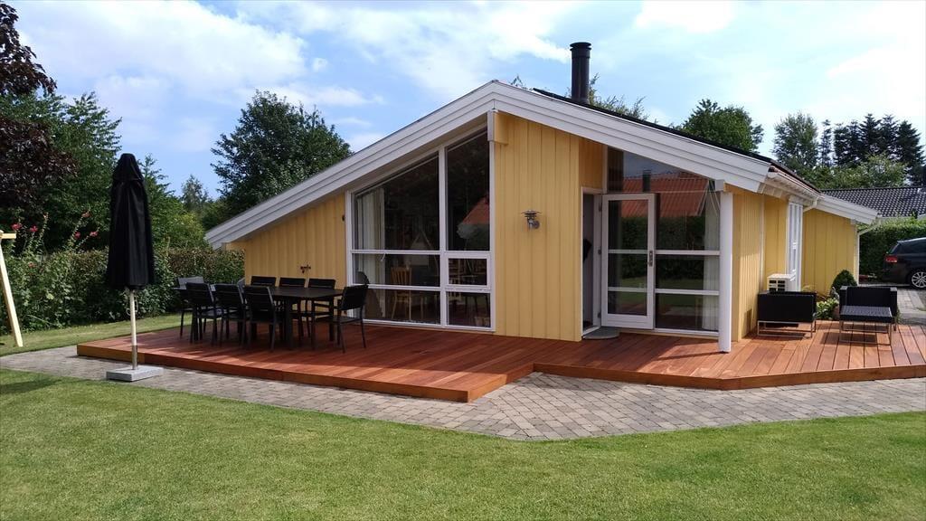 Das Ferienhaus liegt in der malerischen Ferienhaussiedlung Pøt Strandby nahe Juelsminde. Die Lage in der Nähe von Wald und Strand ermöglicht euch einen erholsamen Urlaub in ruhiger Umgebung. Der Garten hat eine große Rasenfläche mit viel Platz für Ballspiele oder zum Entspannen. Rund um das Haus verläuft eine Holzterrasse, die euer Lieblingsplatz für den Morgen- und Nachmittagskaffee sein wird. Die nach Süden ausgerichtete Terrasse ist ideal für Abendessen und gesellige Sommerabende unter freiem Himmel. Der Weg zum Strand ist nur 25 Meter vom Garten entfernt.