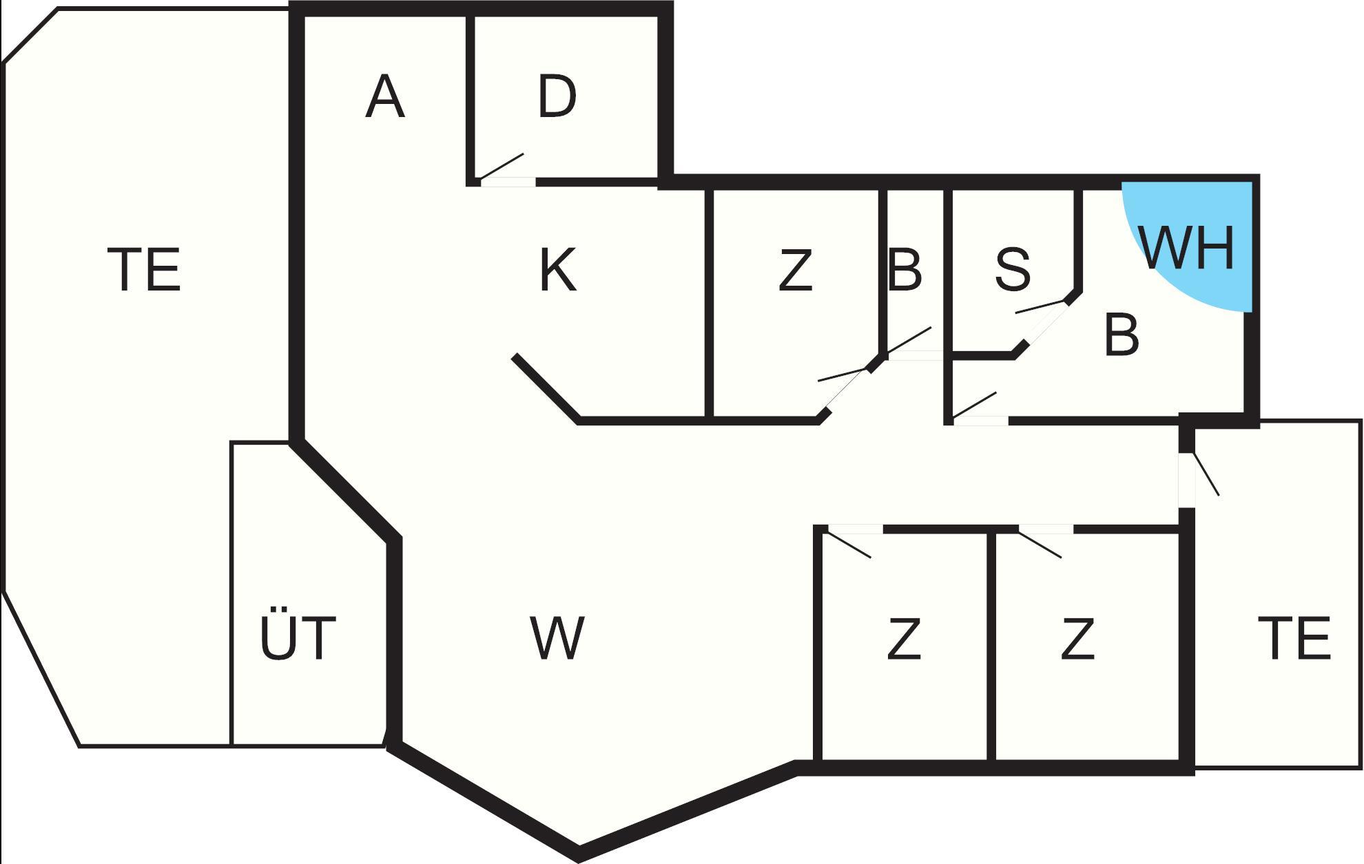 Bad: Waschm, Trockner, WC, Waschb., Dusche, Fußbodenheiz.