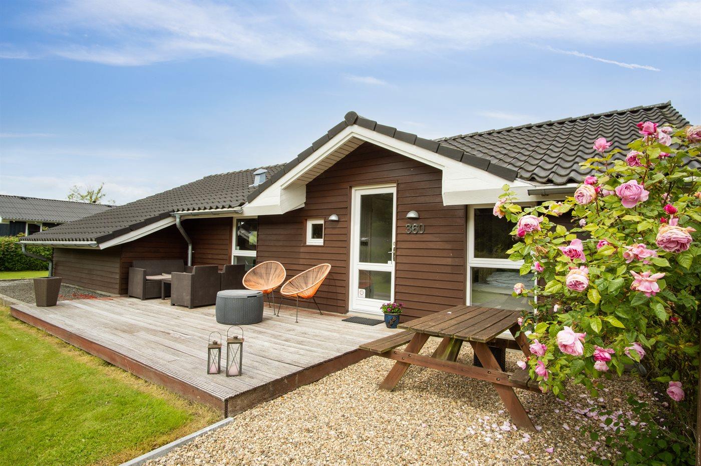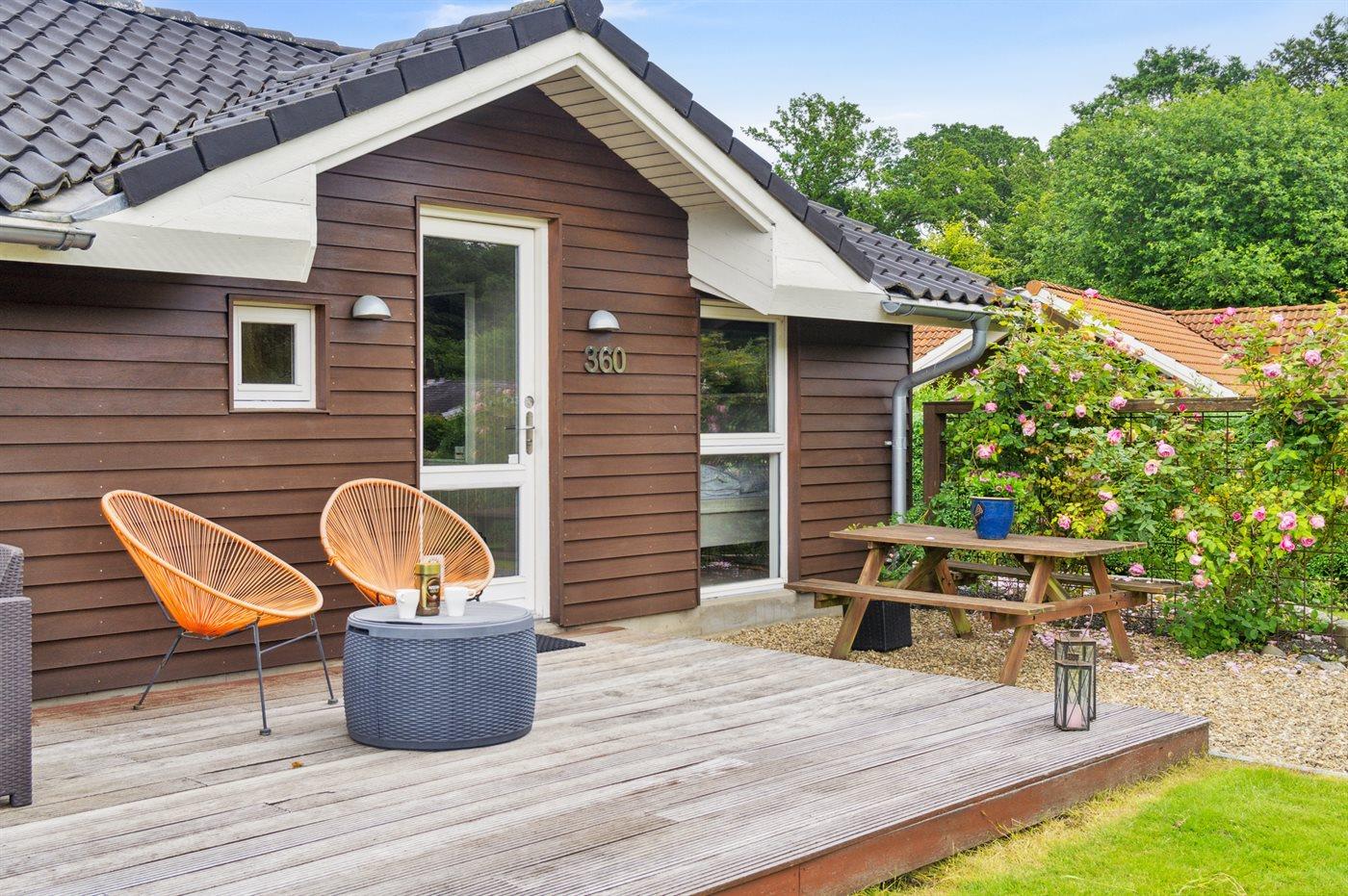 Das Ferienhaus liegt auf einem wirklich schönen Grundstück mit einem herrlichen Garten, der sich hervorragend zum Spielen und Ballspielen eignet. Darüber hinaus gibt es verschiedene Spielmöglichkeiten wie z.B. ein Trampolin und einen Sandkasten u.a. Das Ferienhaus bietet schöne Terrassenbereiche, die sich an allen Seiten des Hauses befinden, sodass es immer möglich ist, ein windgeschütztes Plätzchen zu finden, wo man die Sonne genießen und mit einem Glas Wein oder einer Tasse Kaffee die friedliche und naturschöne Umgebung genießen kann.