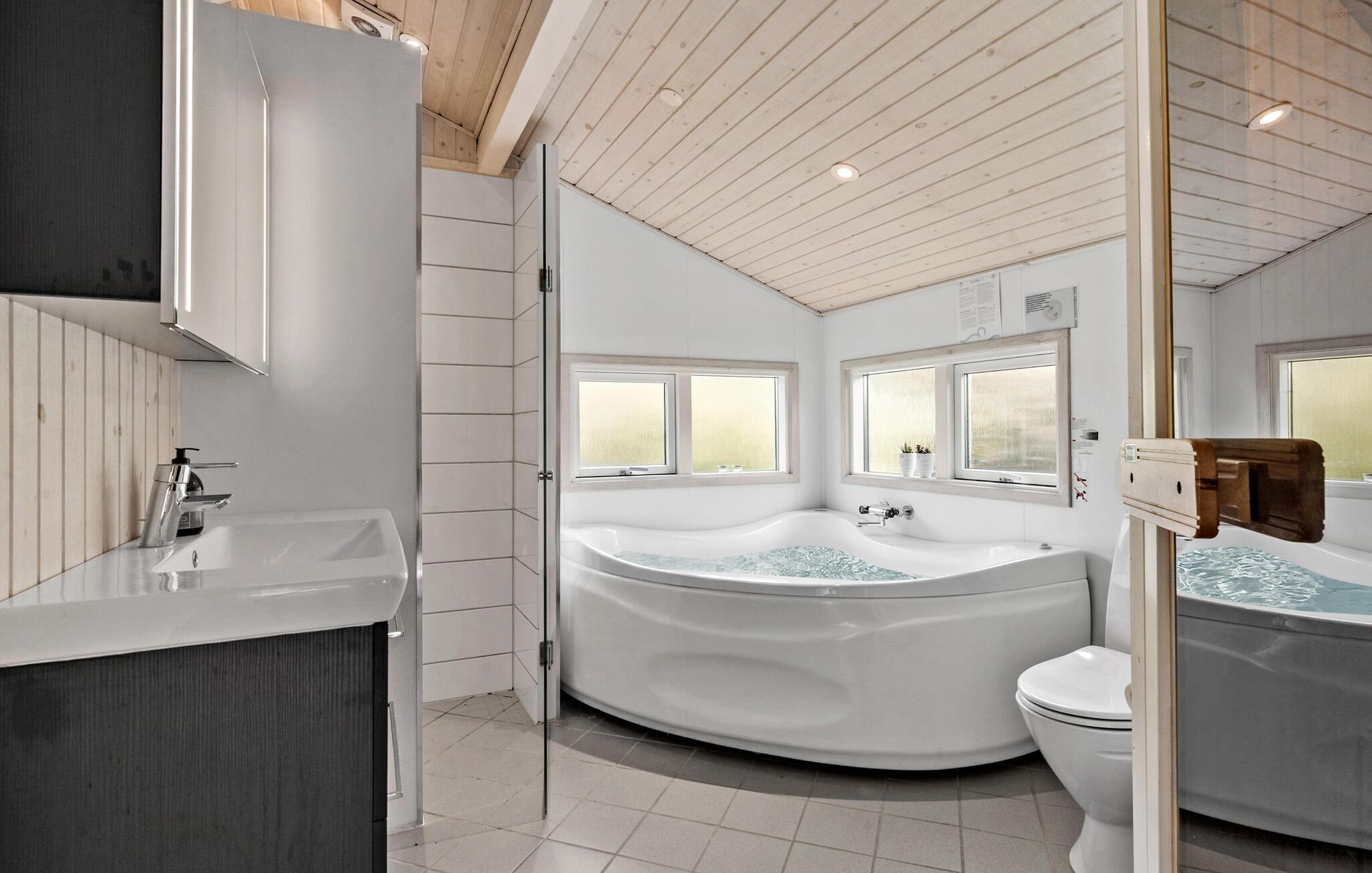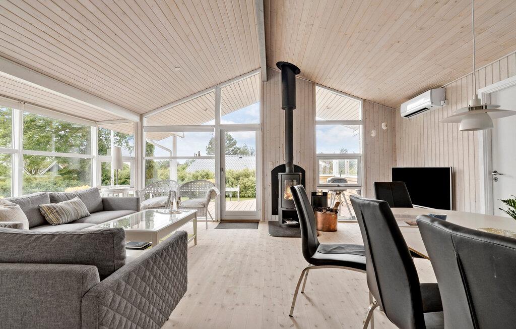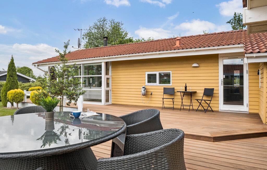 Ein einladendes Ferienhaus in Juelsminde mit Whirlpool, Sauna, Garten und Nähe zum Strand für entspannte Tage.