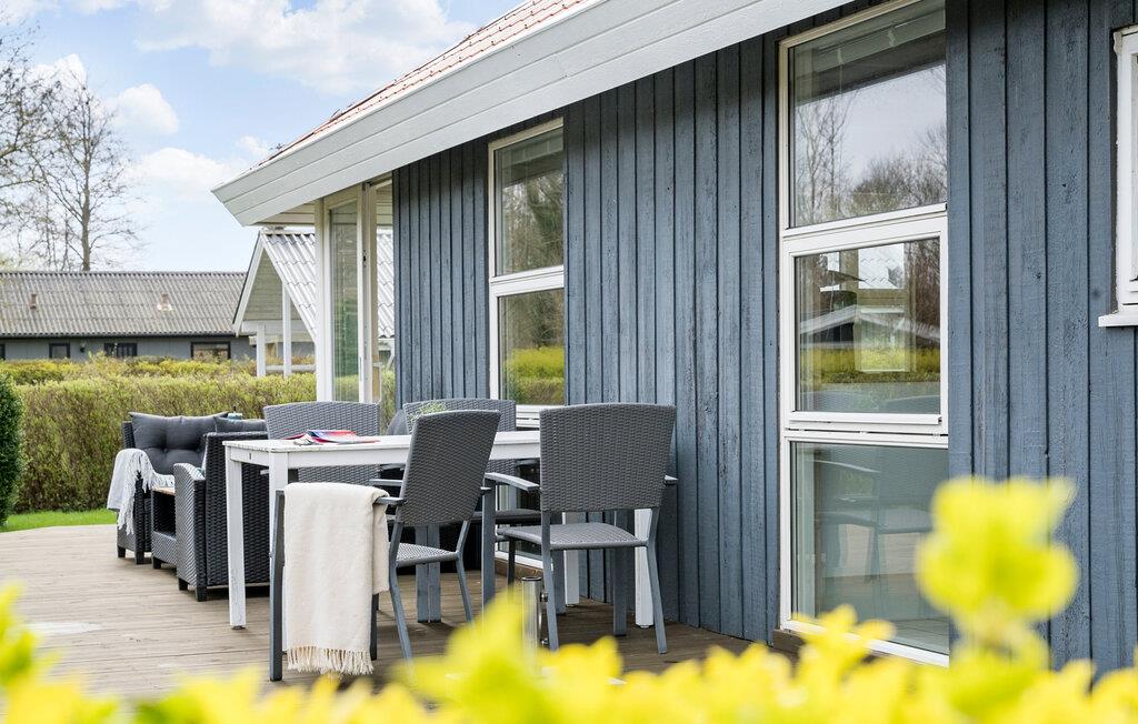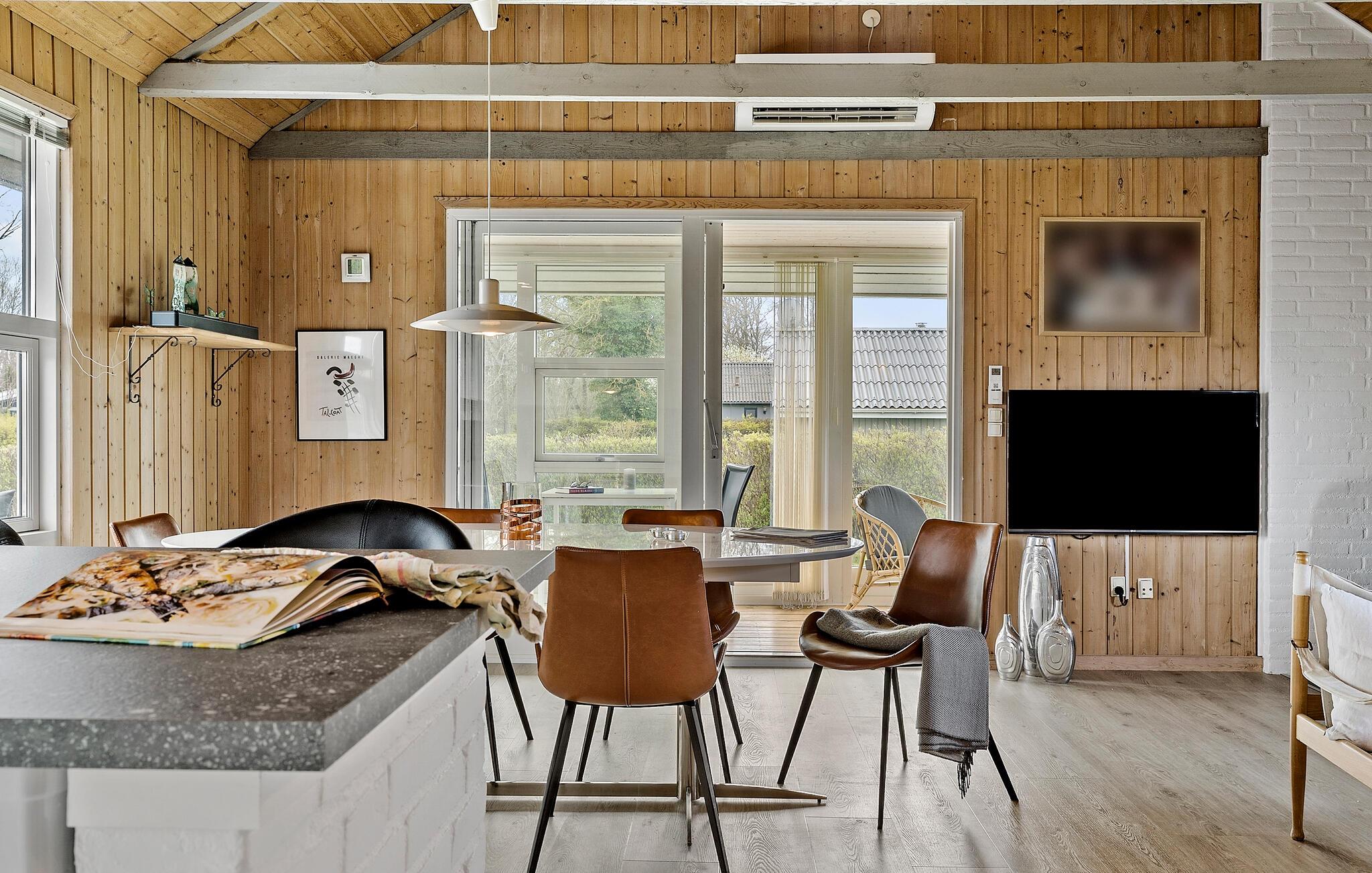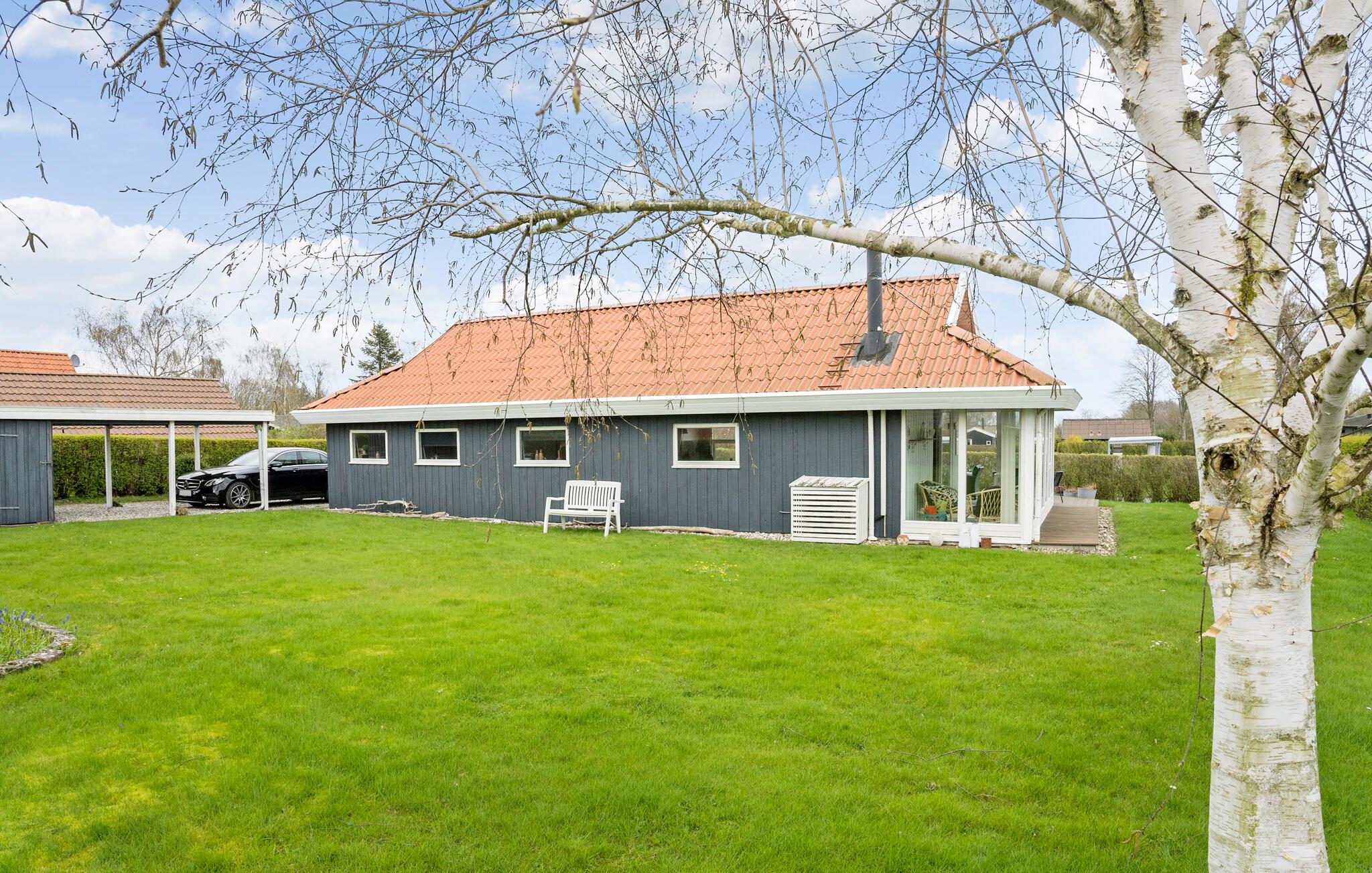 Modernes Ferienhaus in Juelsminde mit Wintergarten, Kamin und großem Garten für entspannte Familienferien.