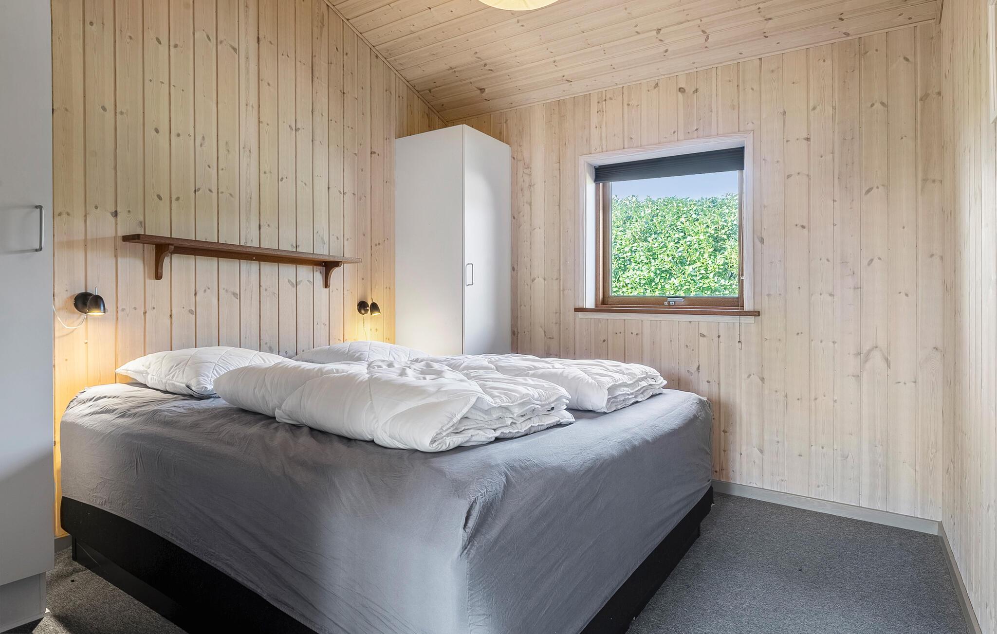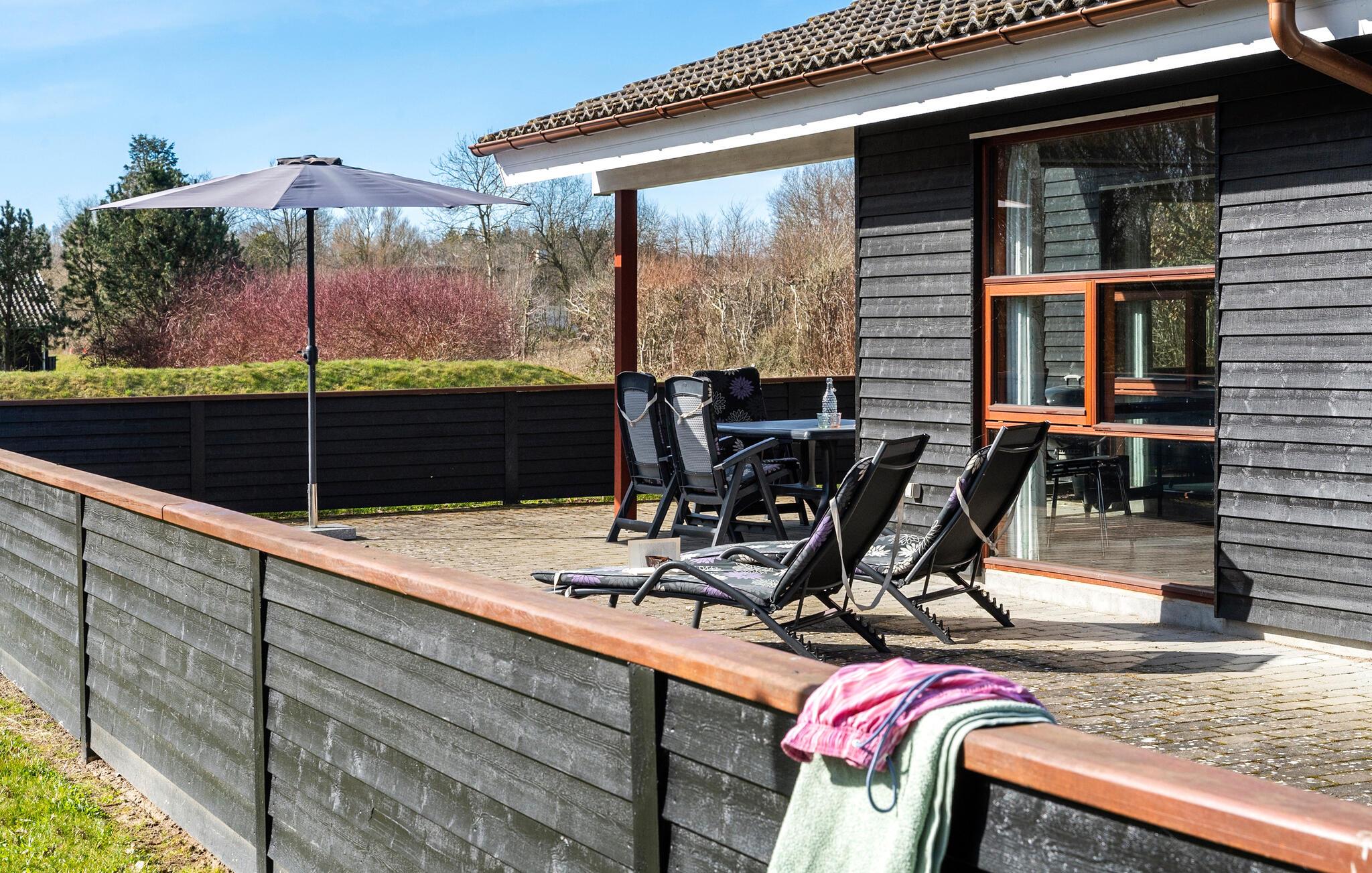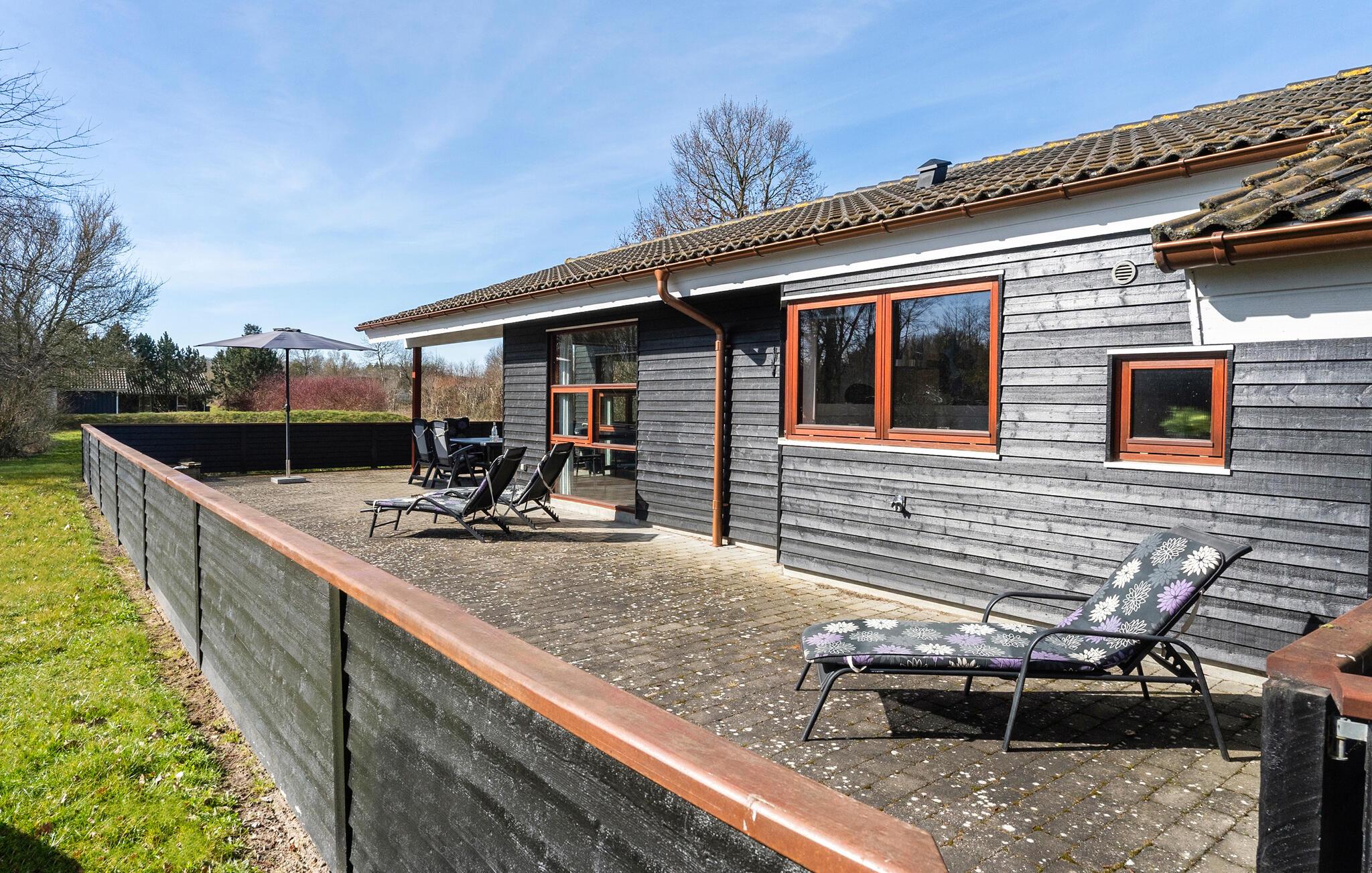 Dieses charmante Holzferienhaus in Juelsminde bietet Komfort, Whirlpool, Sauna und direkten Zugang zum Kiesstrand.