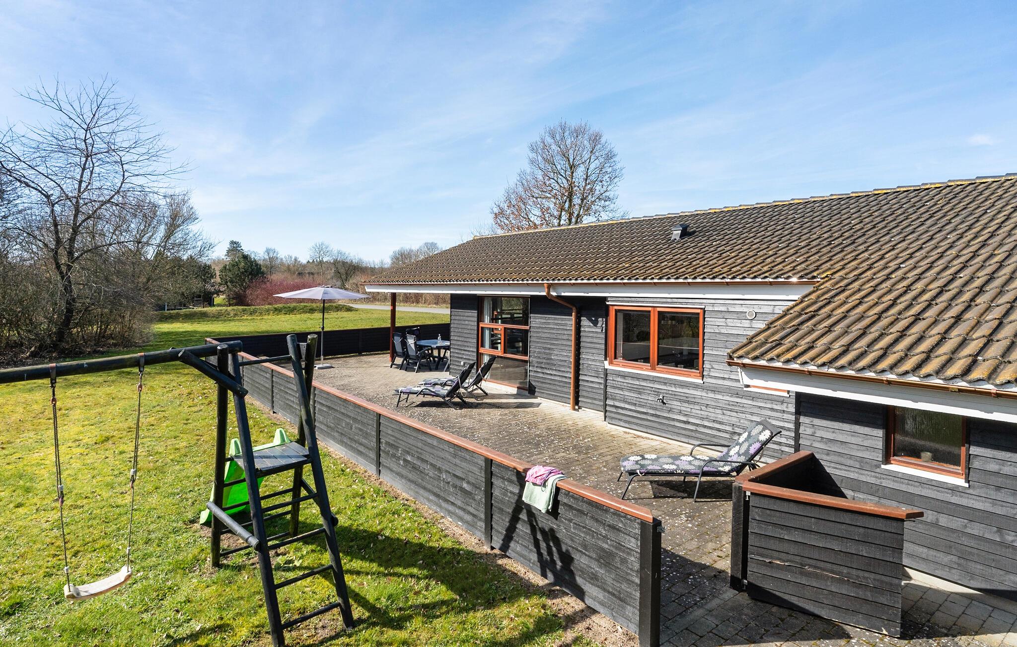Nutzen Sie den charmanten Terrassenbereich für ein ausgedehntes Frühstück oder einen Grillabend. Lehnen Sie sich in den bequemen Gartenstühlen zurück oder entspannen Sie auf den Liegen. Ihre Kinder freuen sich über die Schaukel und viel Platz zum Spielen im geschützten Garten. Der direkte Zugang vom Wohnbereich nach draußen sorgt für ein angenehmes Feriengefühl.